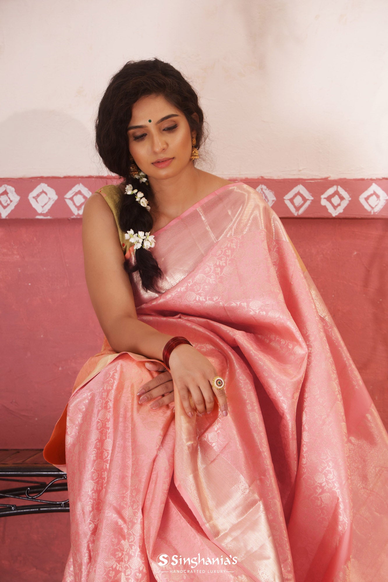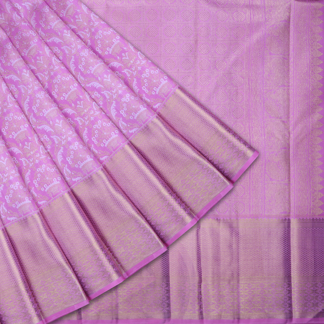 ResetA self-bordered Kanjivaram saree is handwoven with feelings and detailing. Its running border and pallu create a lustrous effect without breaking the palette.The history of the saree dates back to the era of Indus Valley Civilisation when cotton was cultivated. But now, after thousands of years, many artists have emerged in the country who acquainted women with different types of sarees. Over the years, those artists have gotten an acquired taste for self-design borders because of the simplicity and luminosity that they bring to the saree.