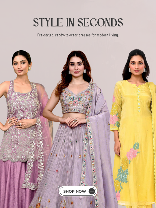 Our saree collection includes rare handwoven pieces from master weavers, contemporary printed georgettes for everyday wear and statement designer sarees with intricate embroidery work. We also offer pre-stitched sarees for beginners and busy professionals who want the elegance of a saree without the hassle of draping.