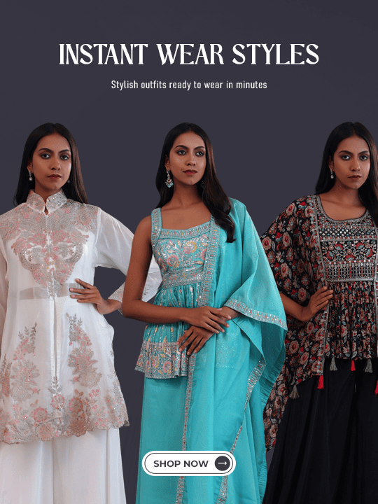 Our Indo-Western collection comprises of straight pants with crop tops, jacket style kurtas, cape dresses with Indian embroideries and fusion indo-western dresses that are apt for modern celebrations. They let you pay homage to your ancestry while daring to be contemporary.