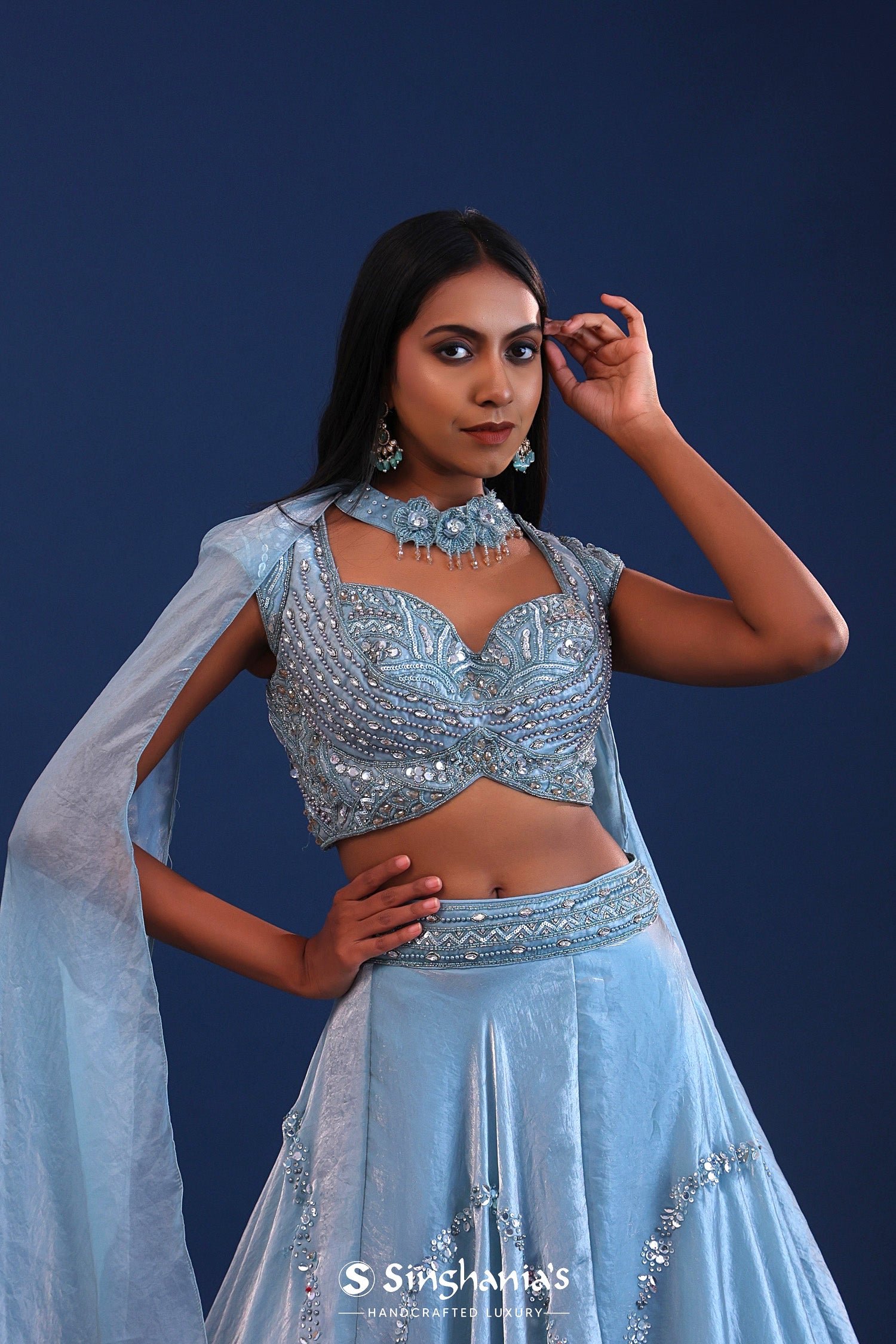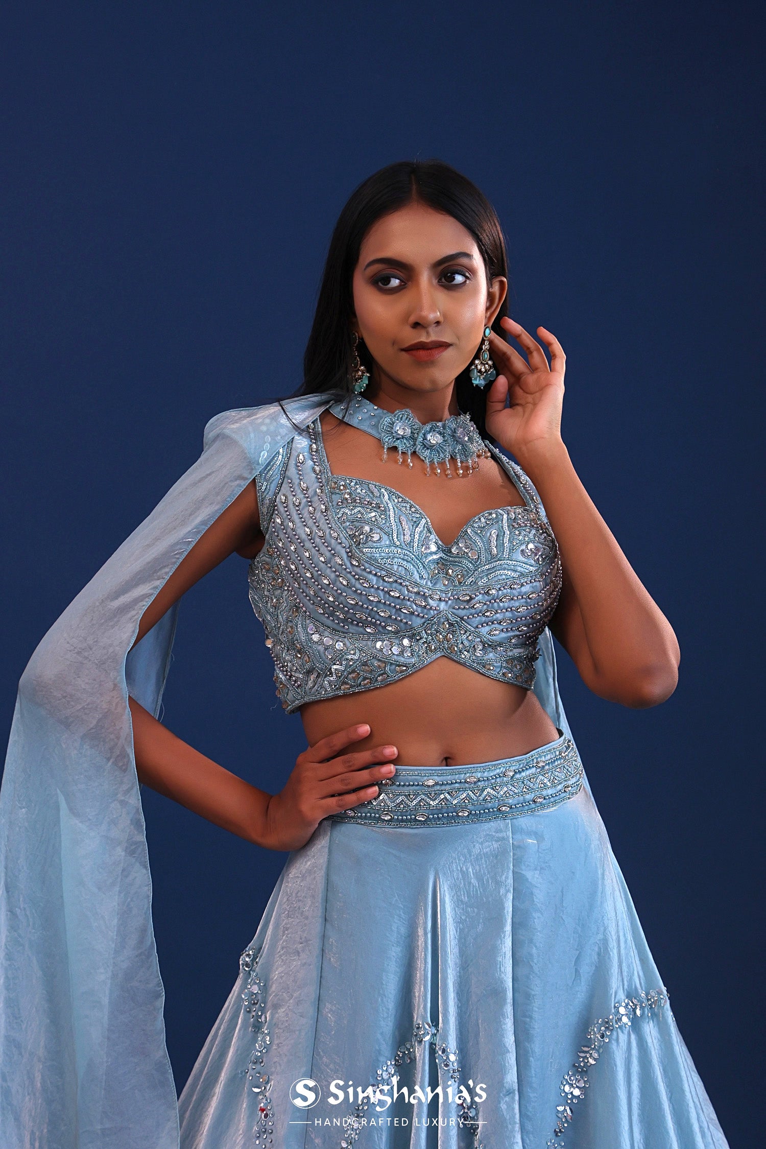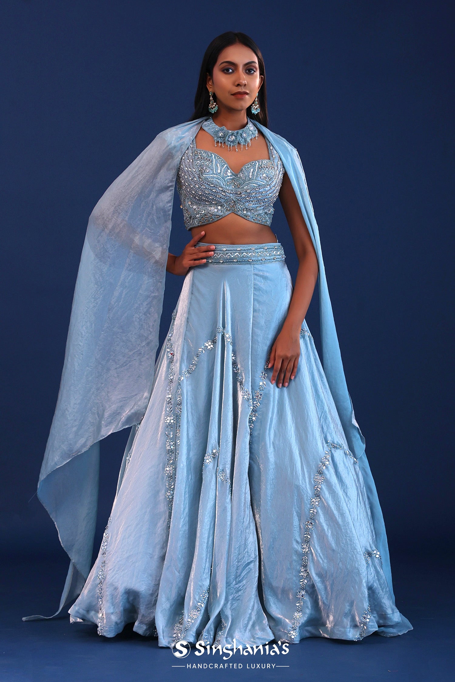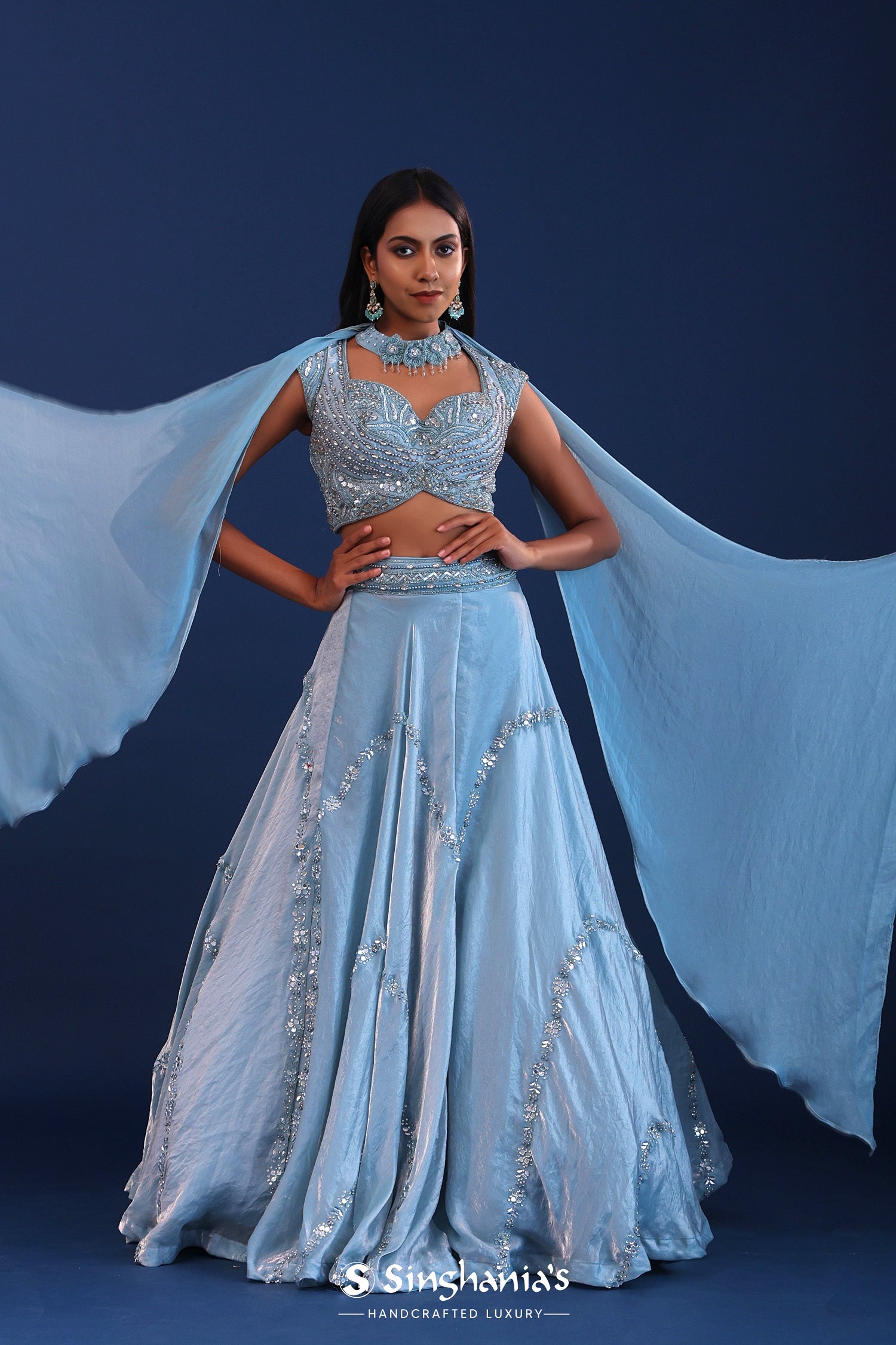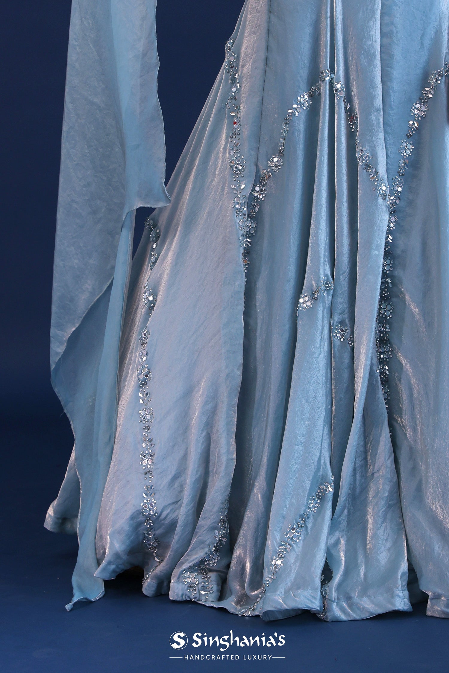 Pastel Blue Crepe Sequence Work Lehenga Set