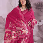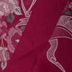 This lovely bordeaux tussar red saree presenting a wave pattern in contrast colors all over the border along with avian and floral embroidery embellished which is adding the charm to overall look.