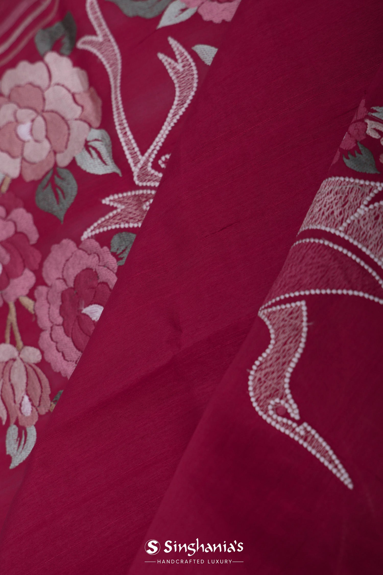 Bordeaux Red Tussar Saree With Embroidery Work