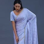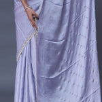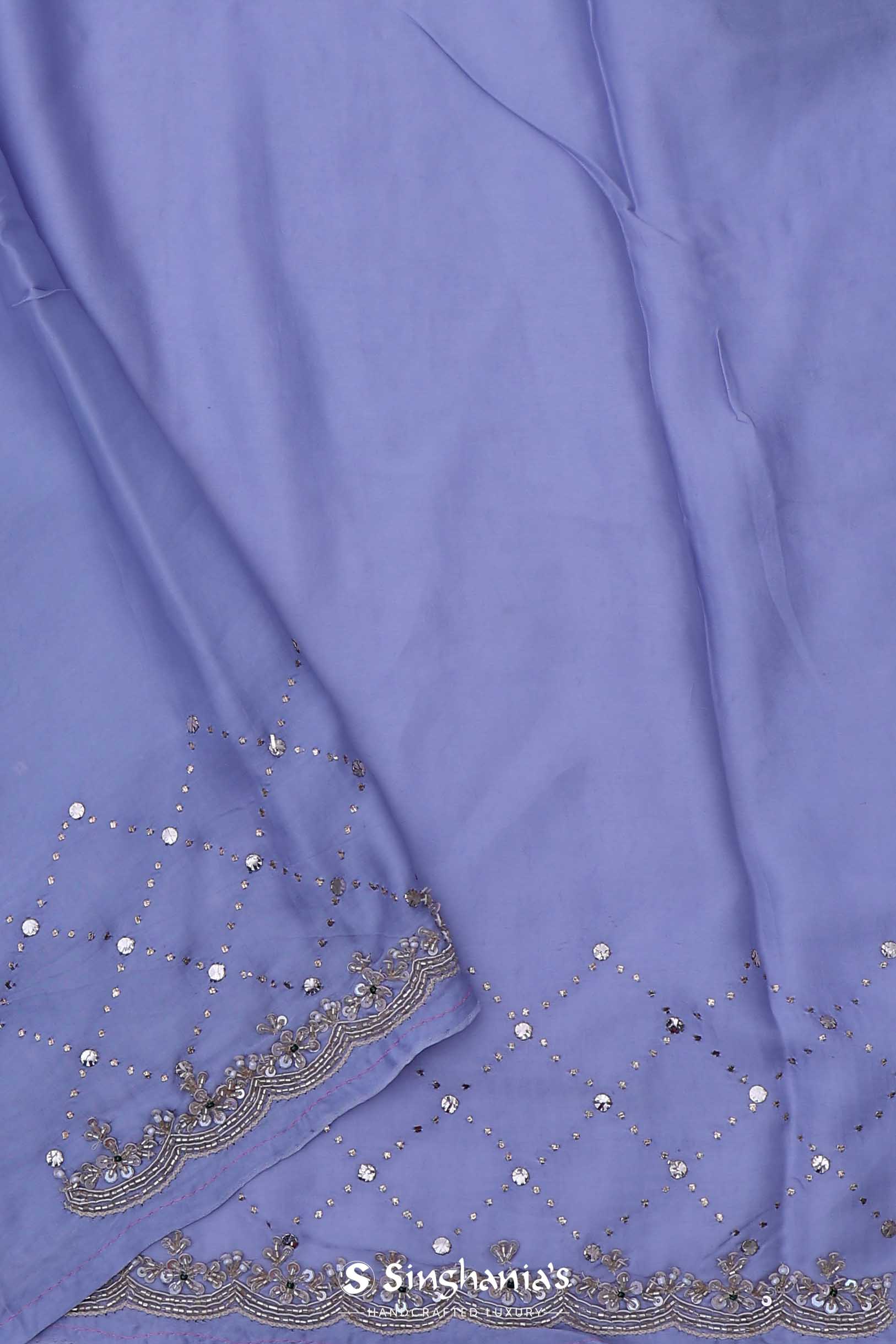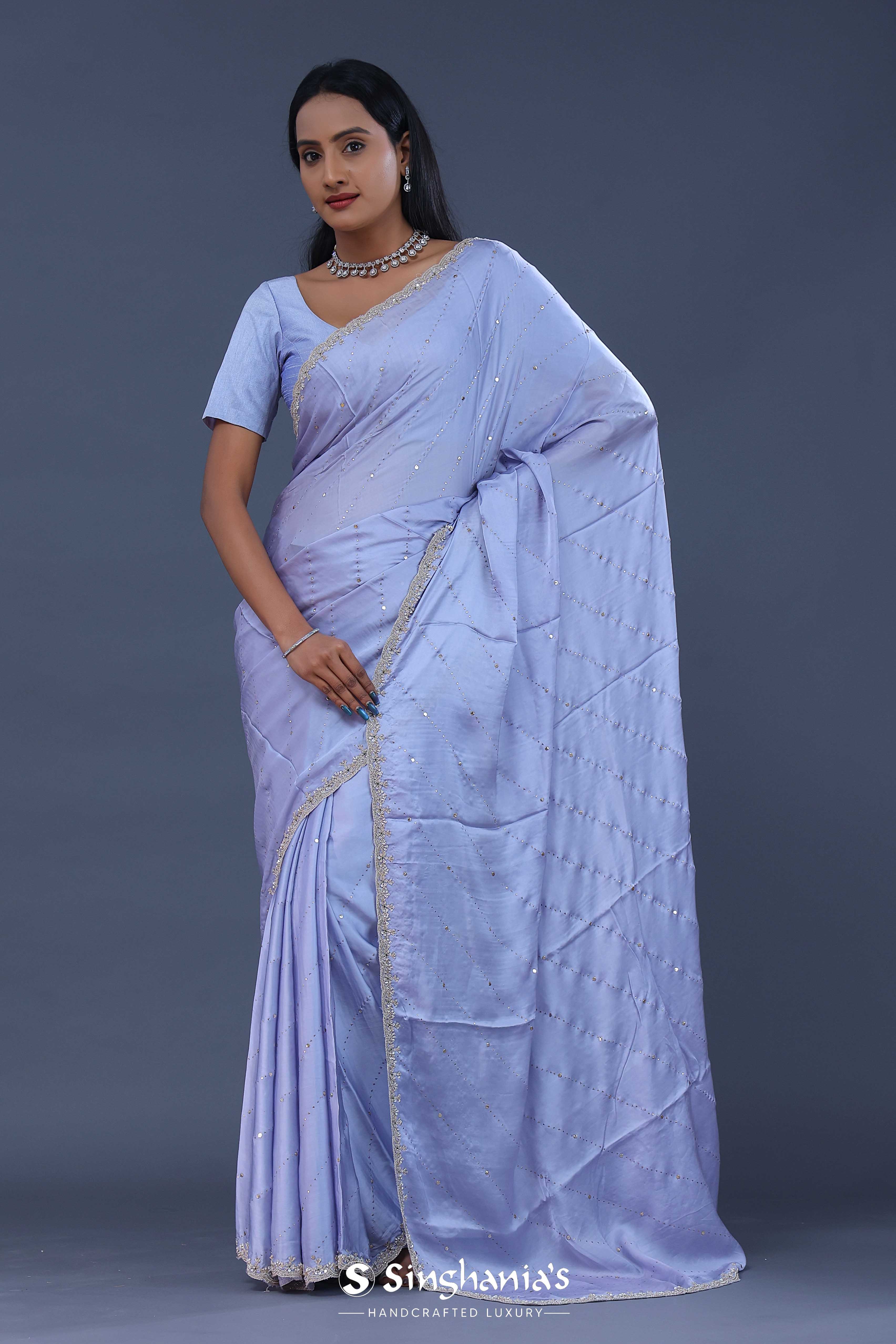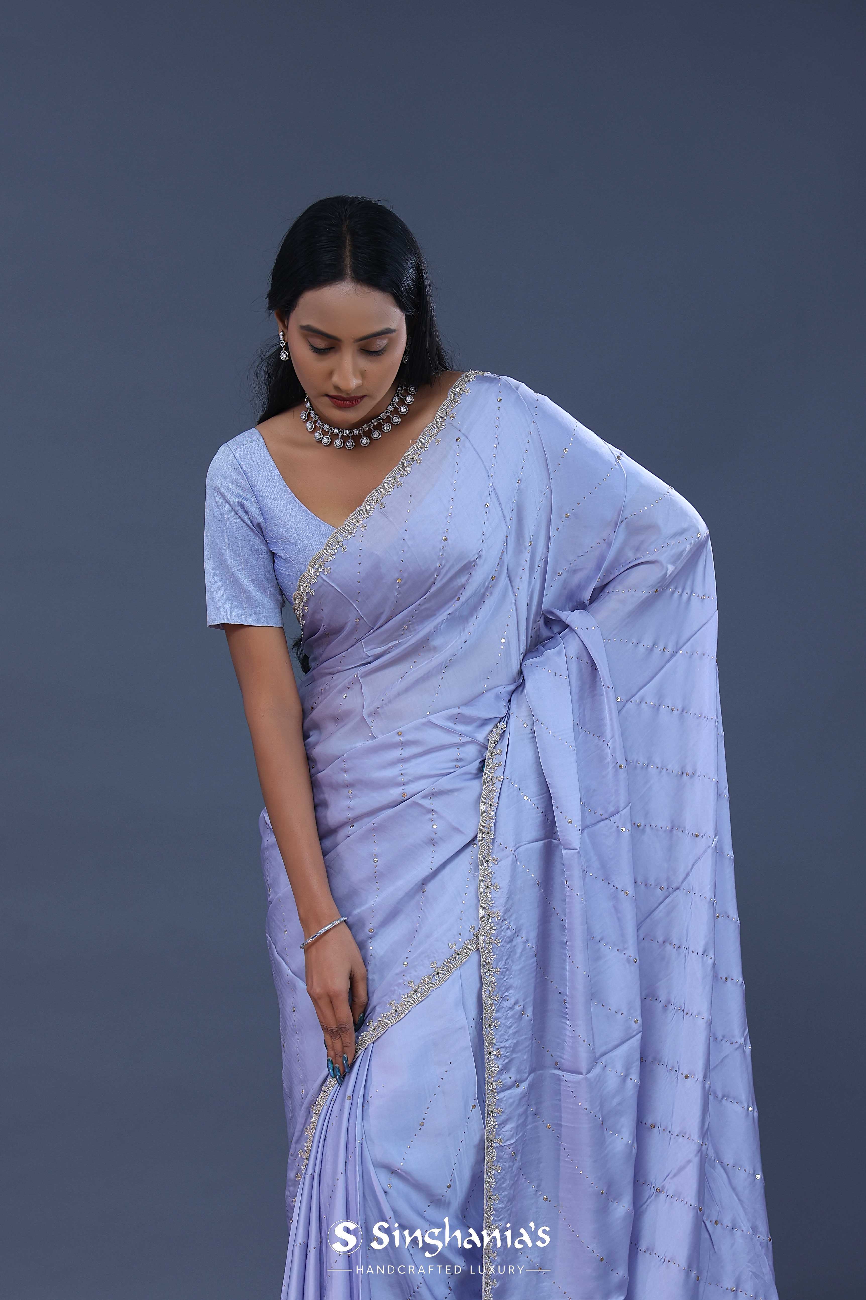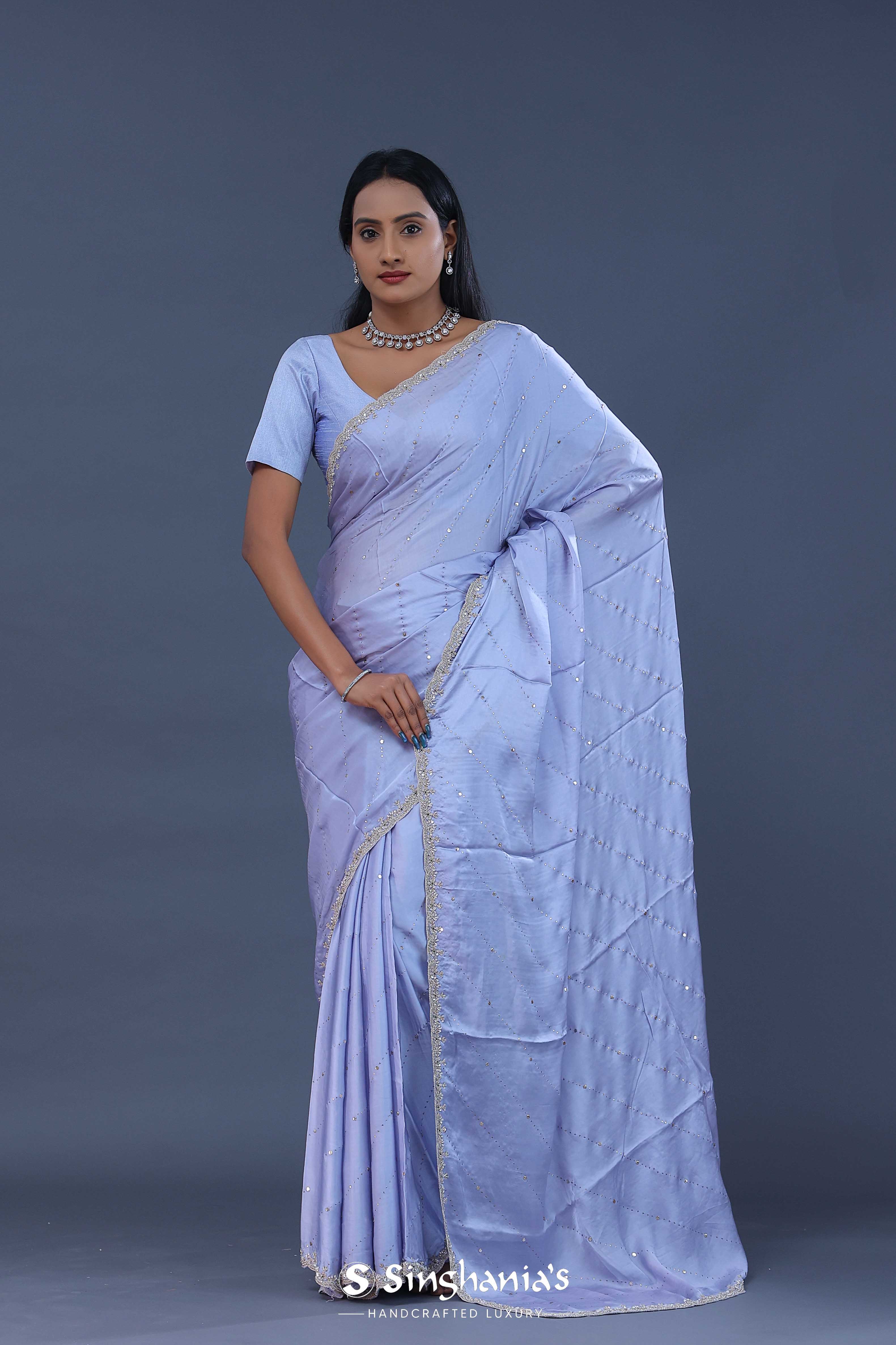 Cornflower Blue Satin Saree With Scallop Border