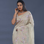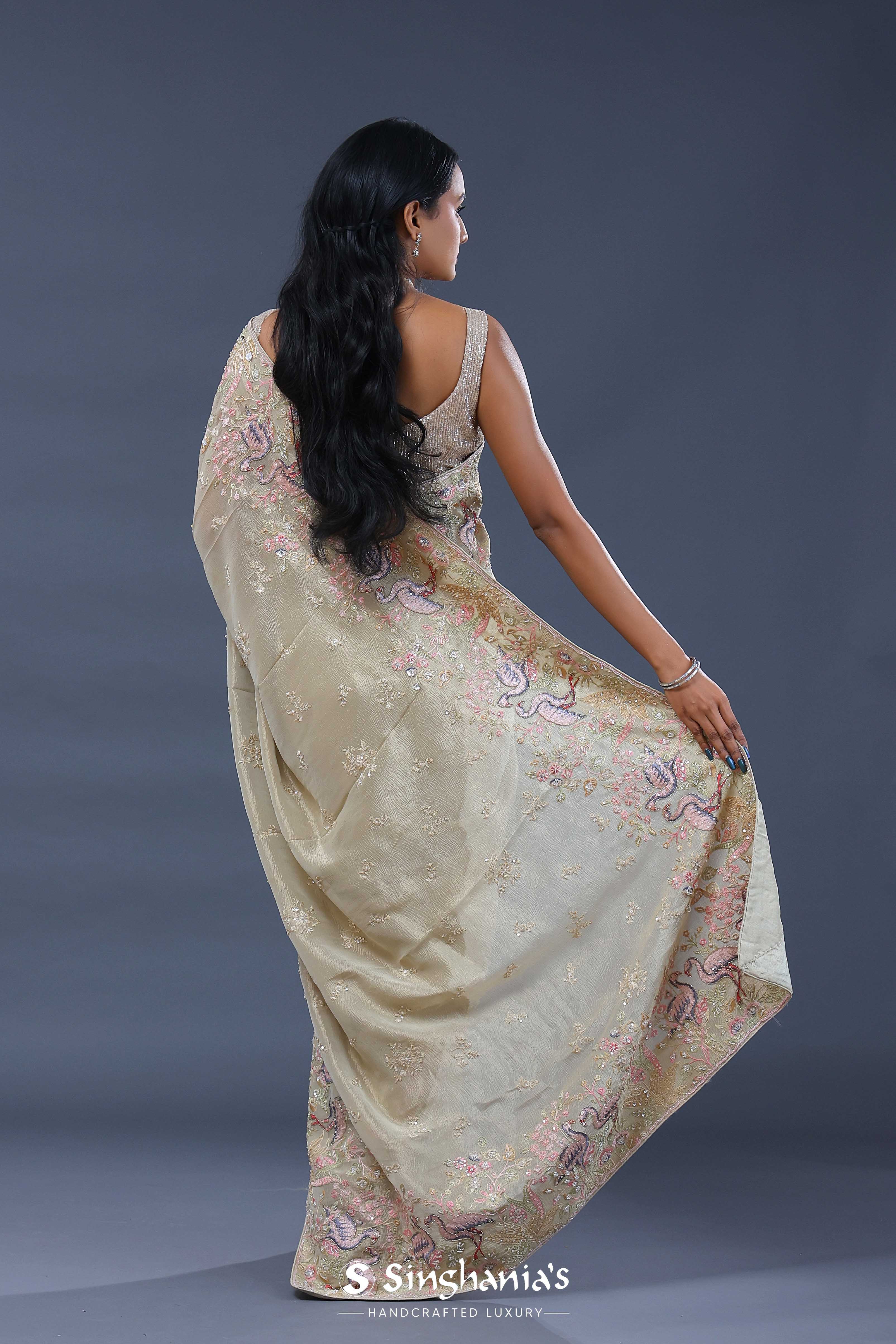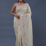 Gin Green Crushed Tissue Saree With Embroidery Work