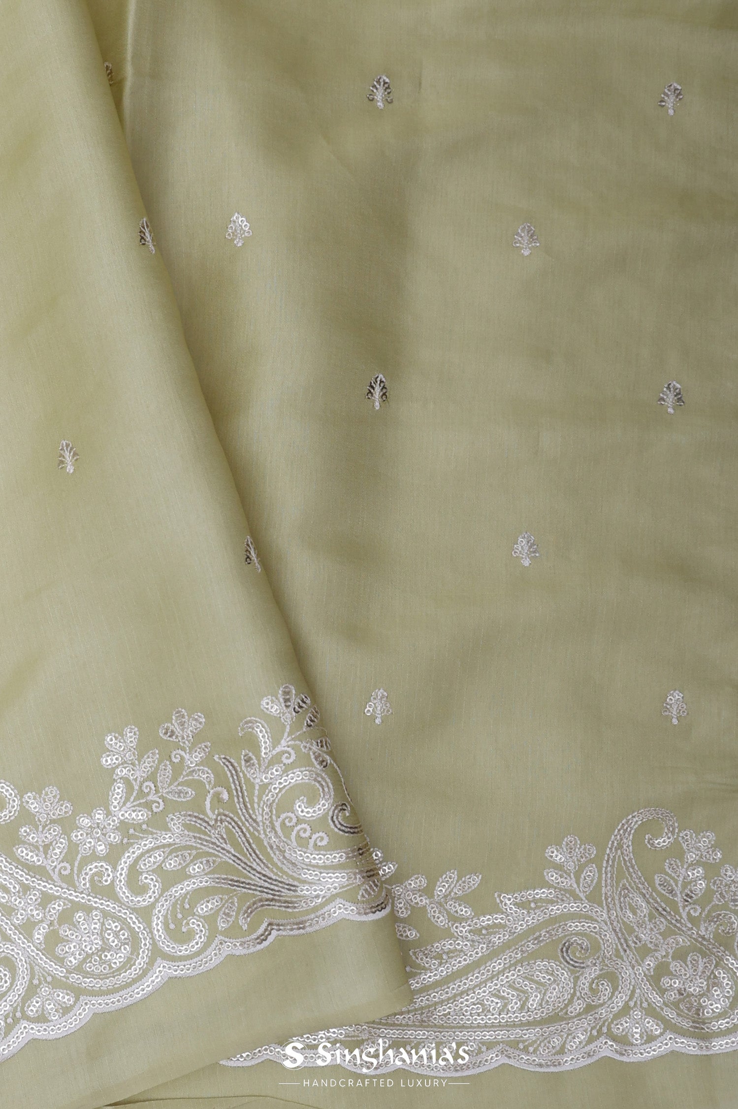 Gin Green Saree With Petit Point Embroidery