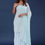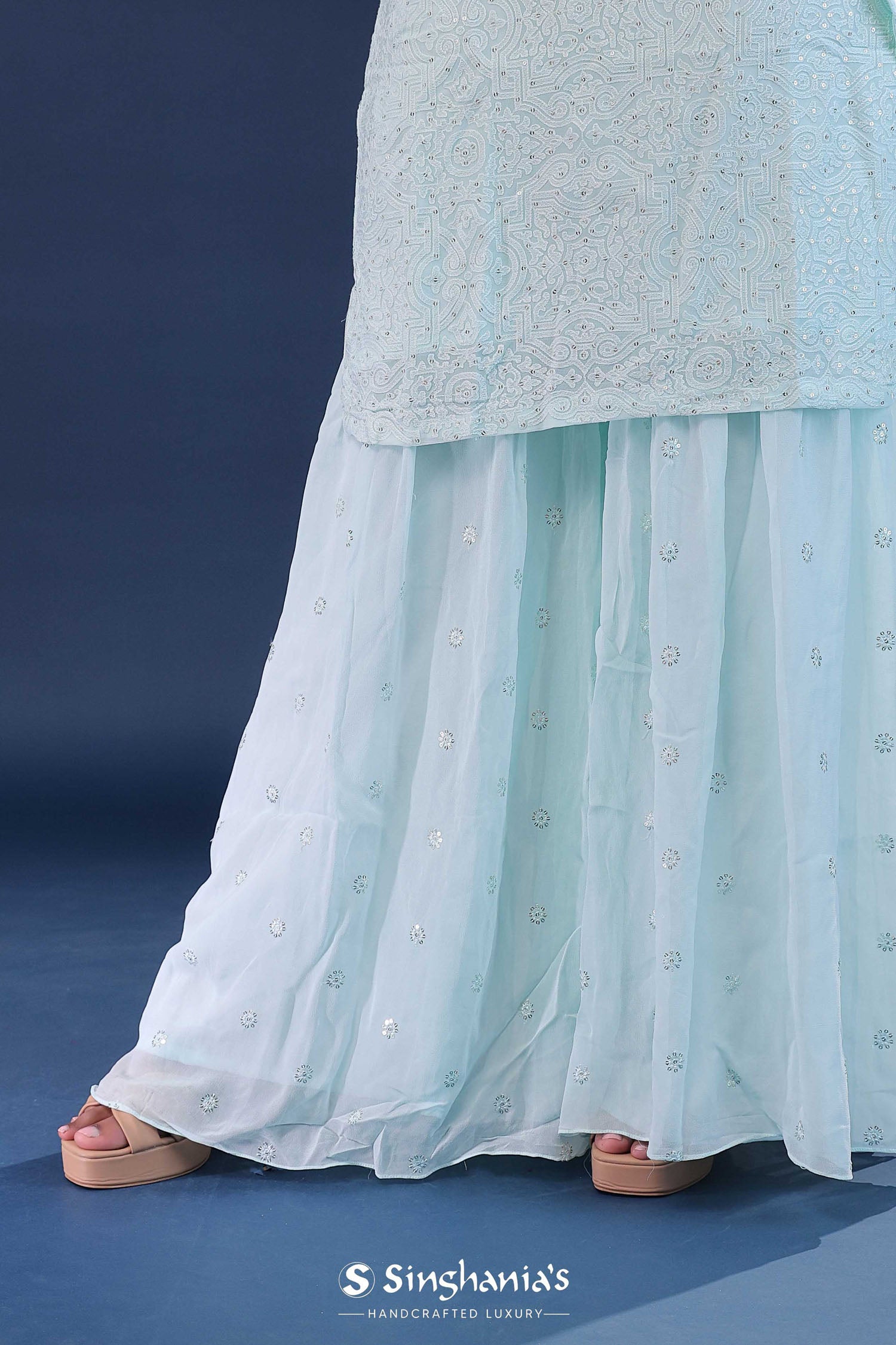 Light Celeste Blue Georgette Straight Cut Palazzo Set