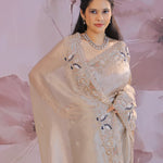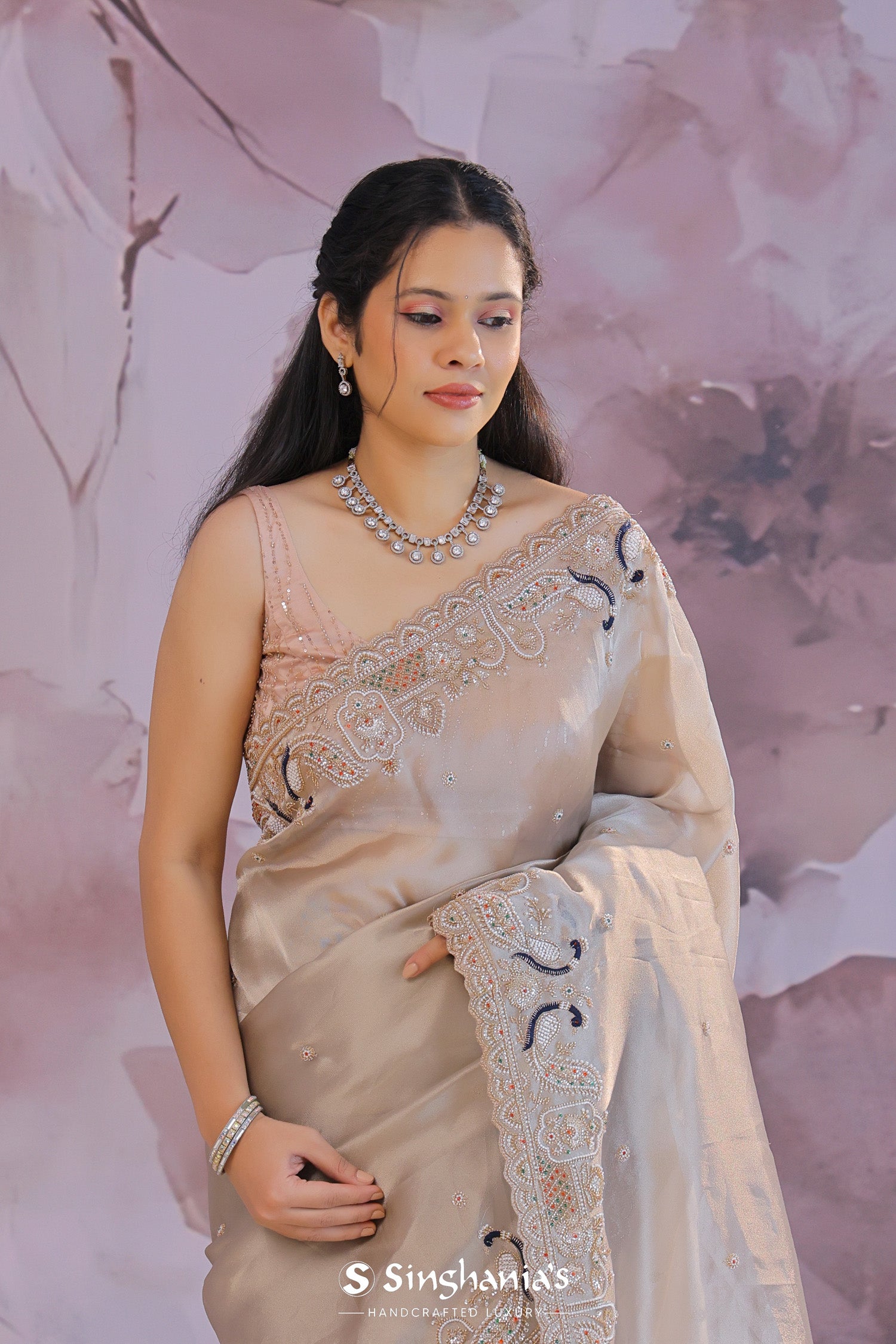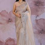 Light Cream Gray Organza Tissue Saree With Scallop Border