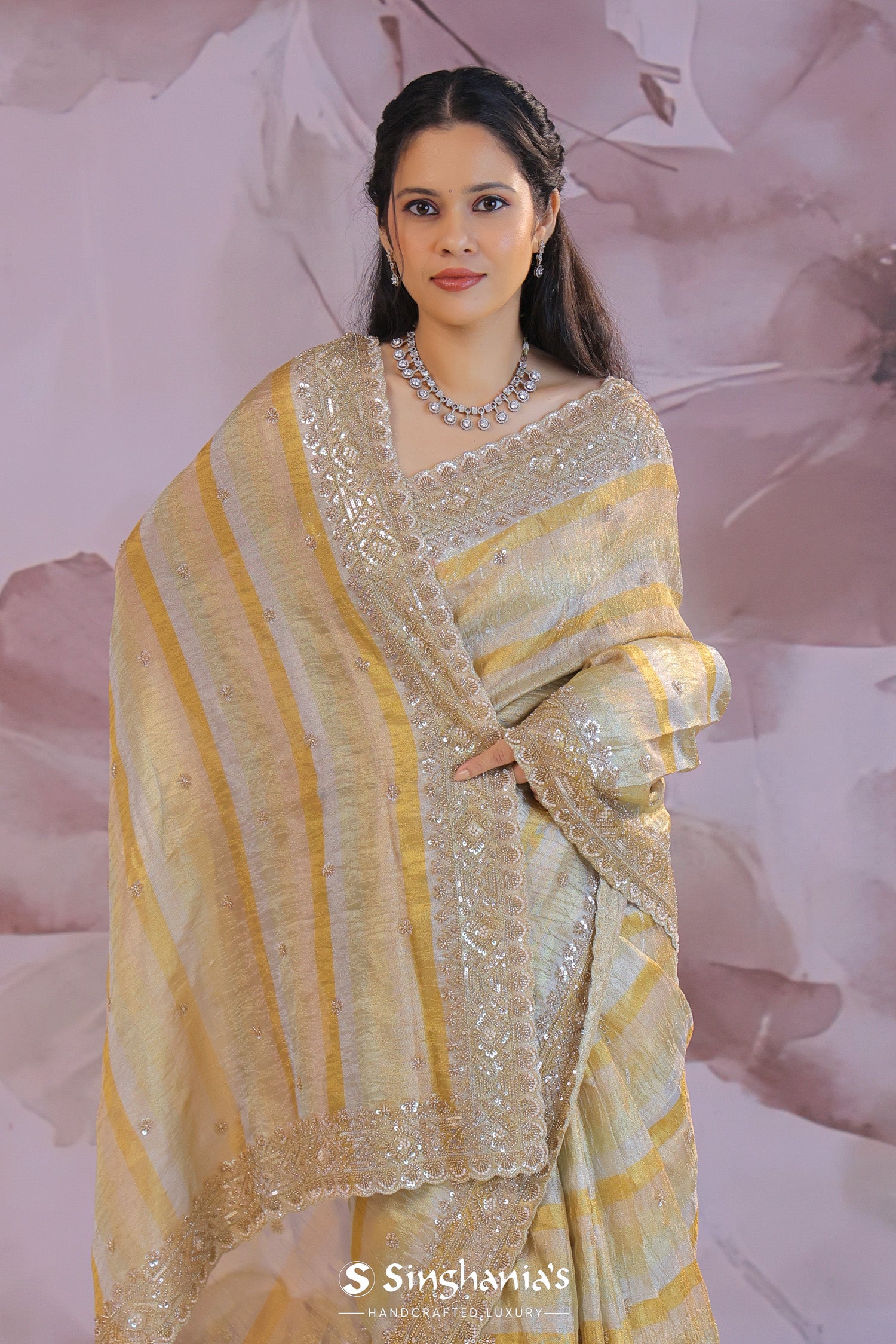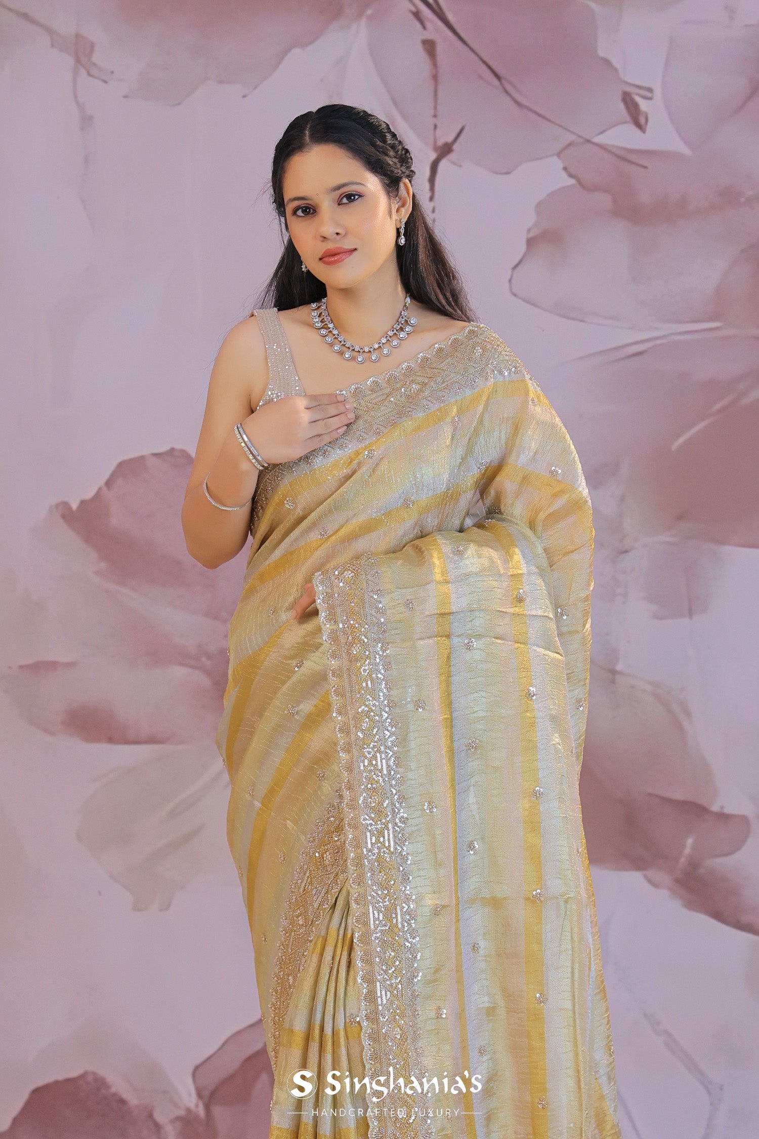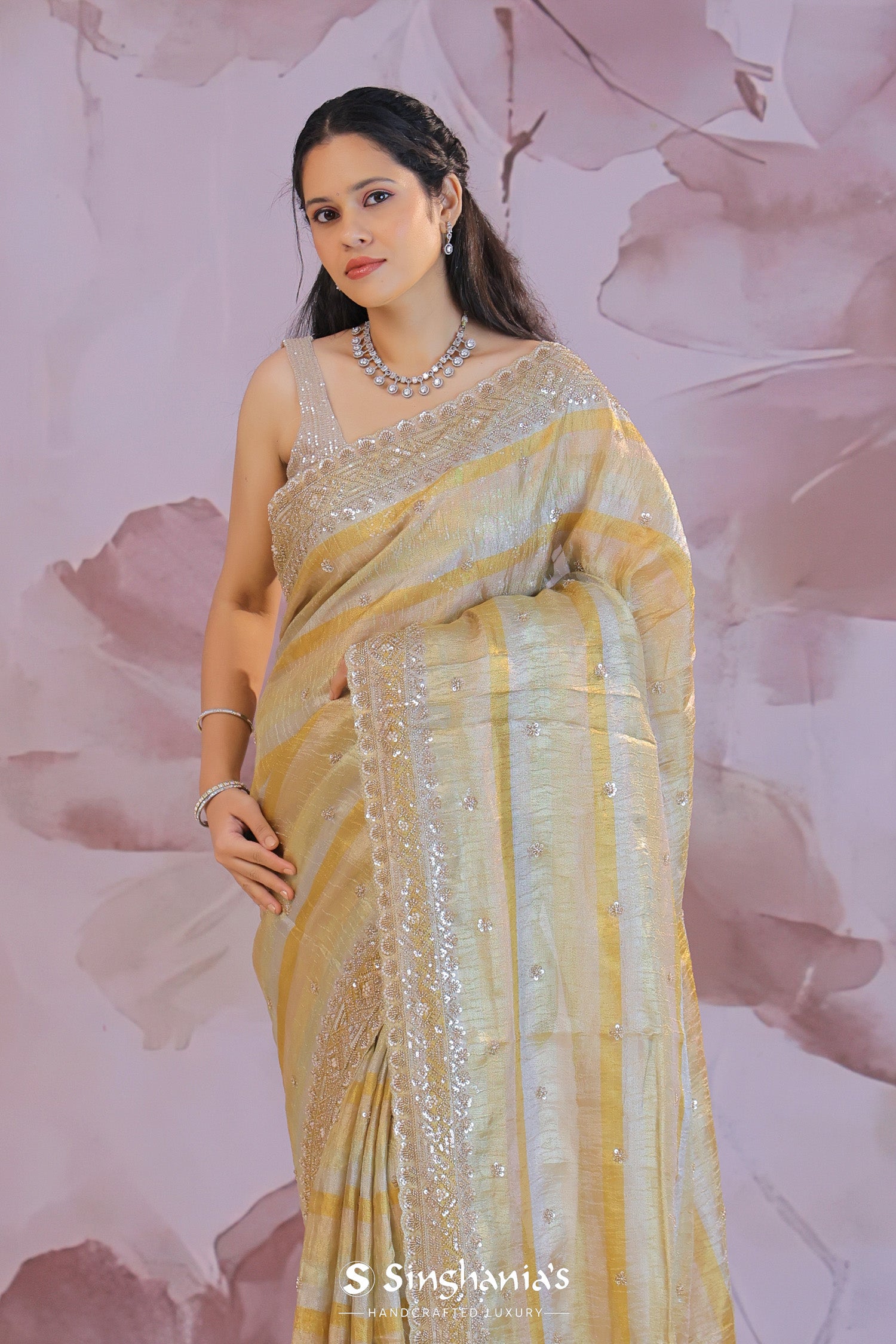 Multi-Color Fancy Tissue Saree With Sequins And Beads