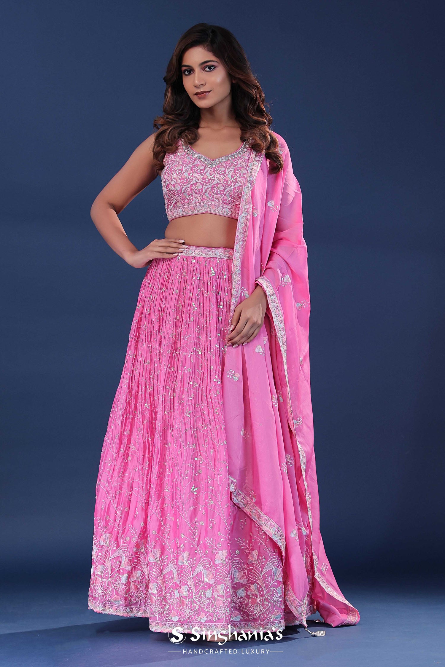 Pink Georgette Lehenga Set
