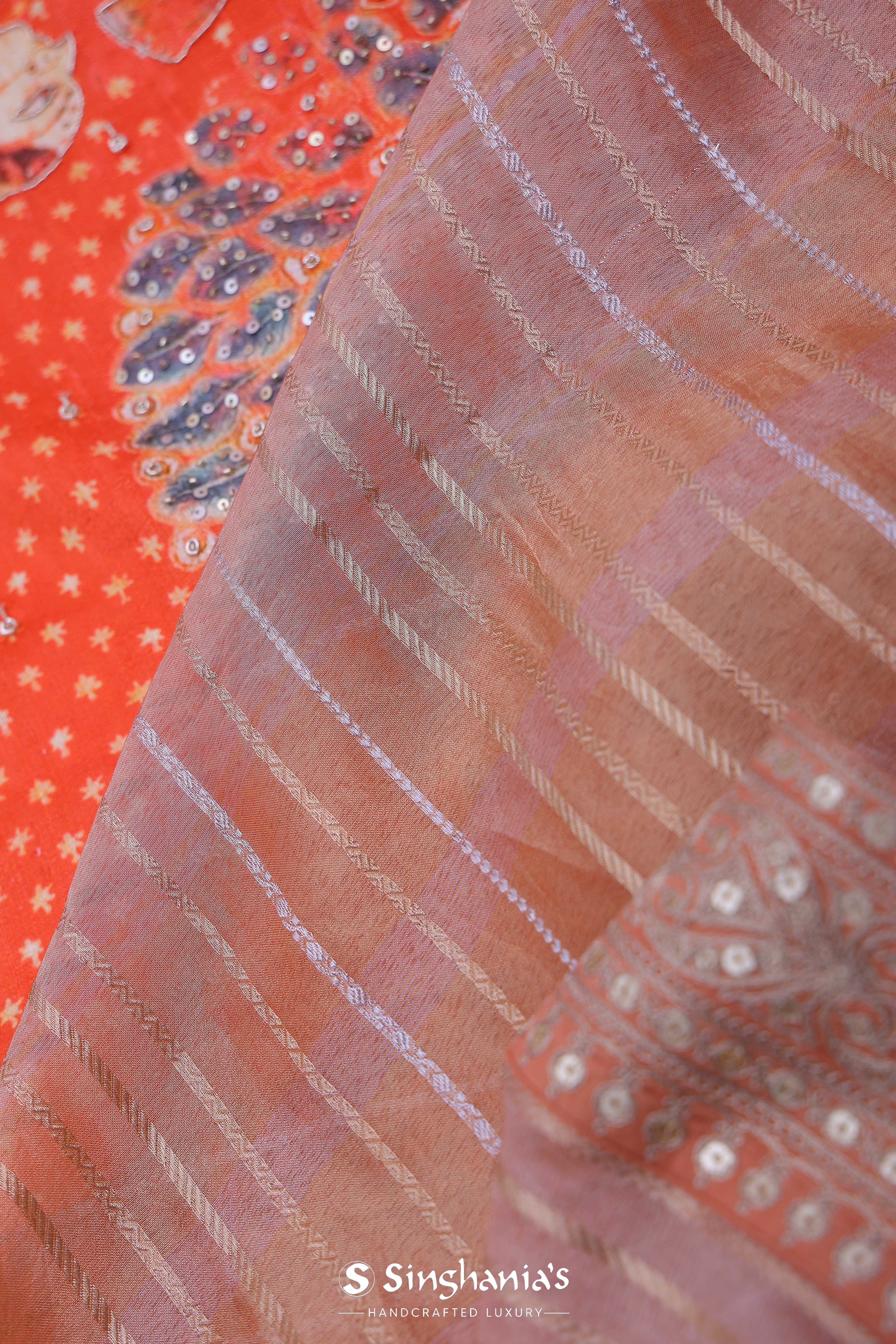 Pinkish Brown Fancy Tissue Saree With Embroidery Border