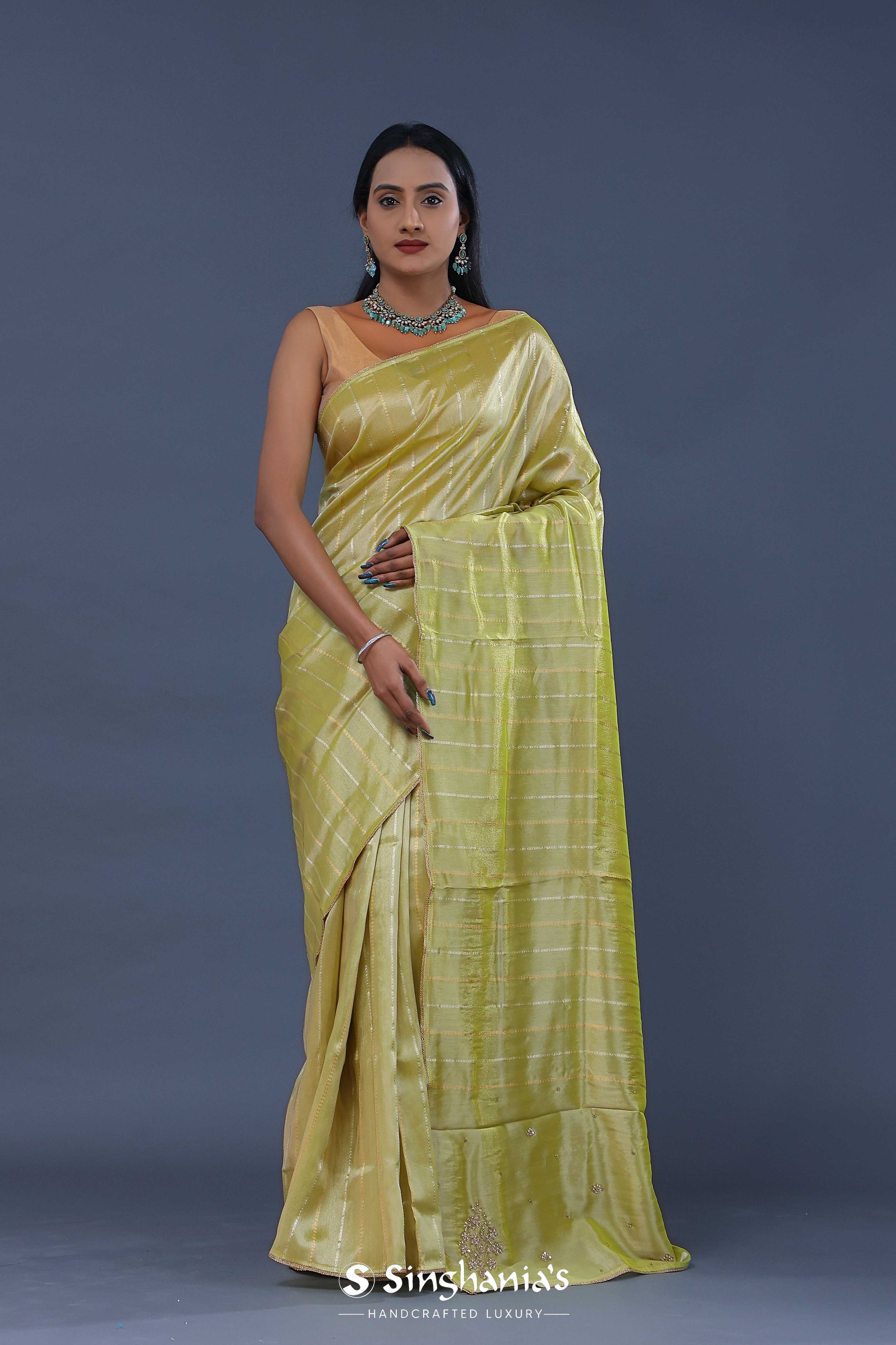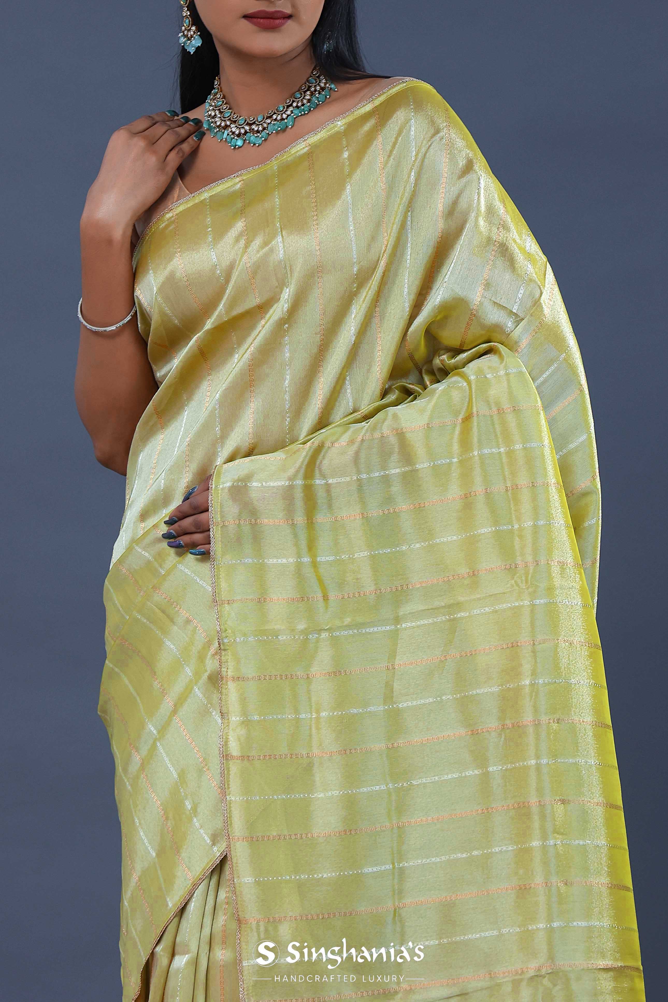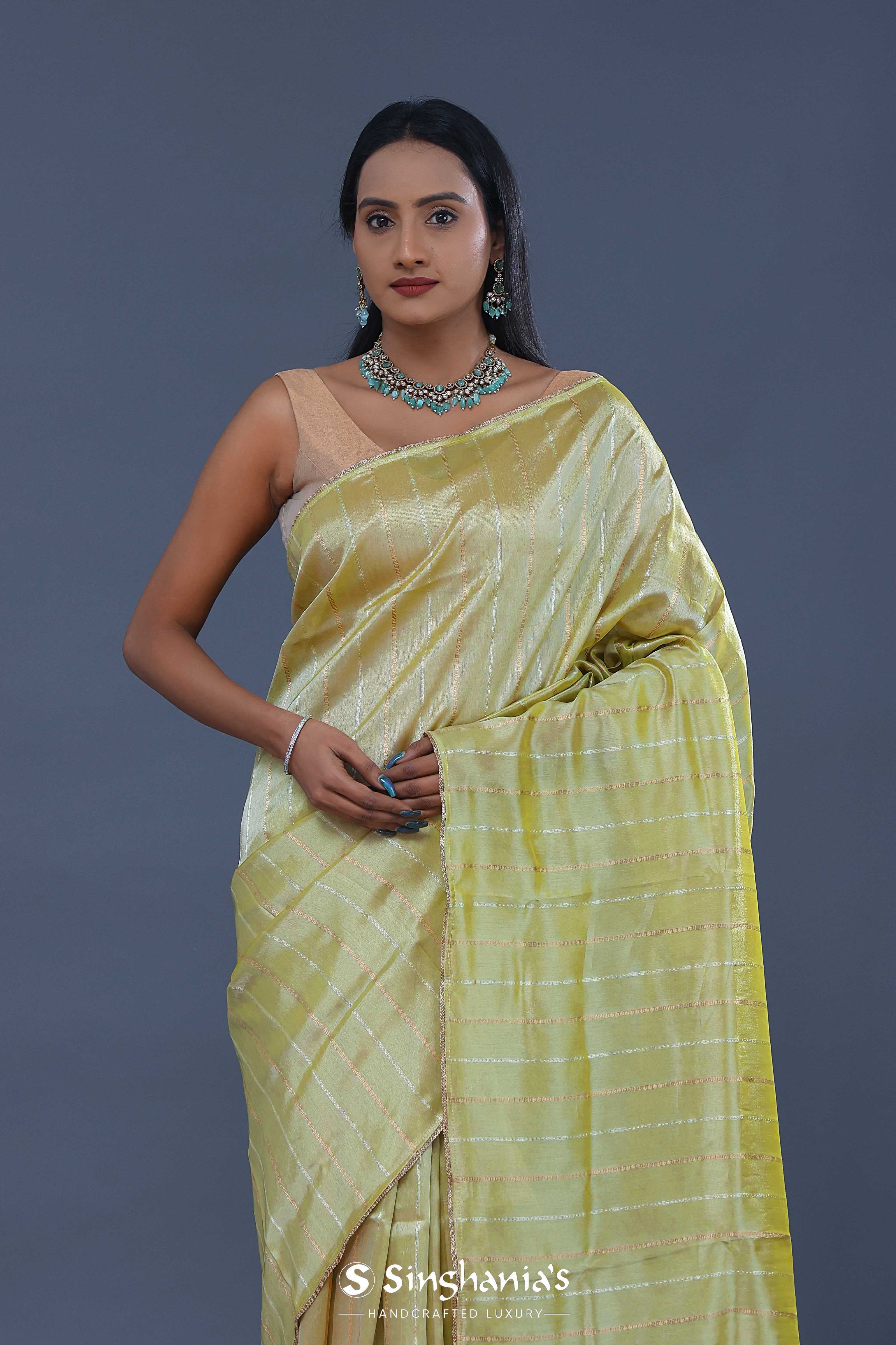 Soft Light Lime Green Organza Tissue Saree With Stripes