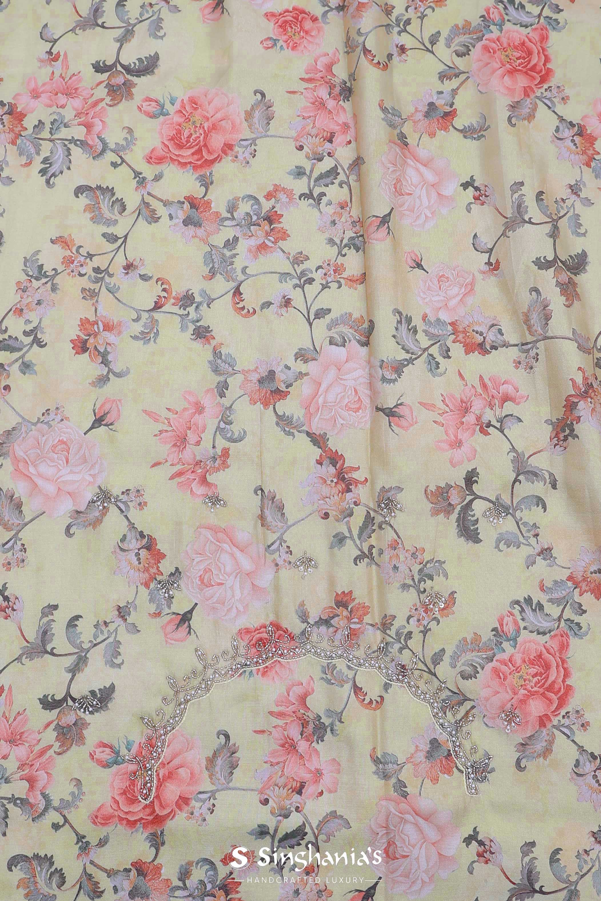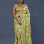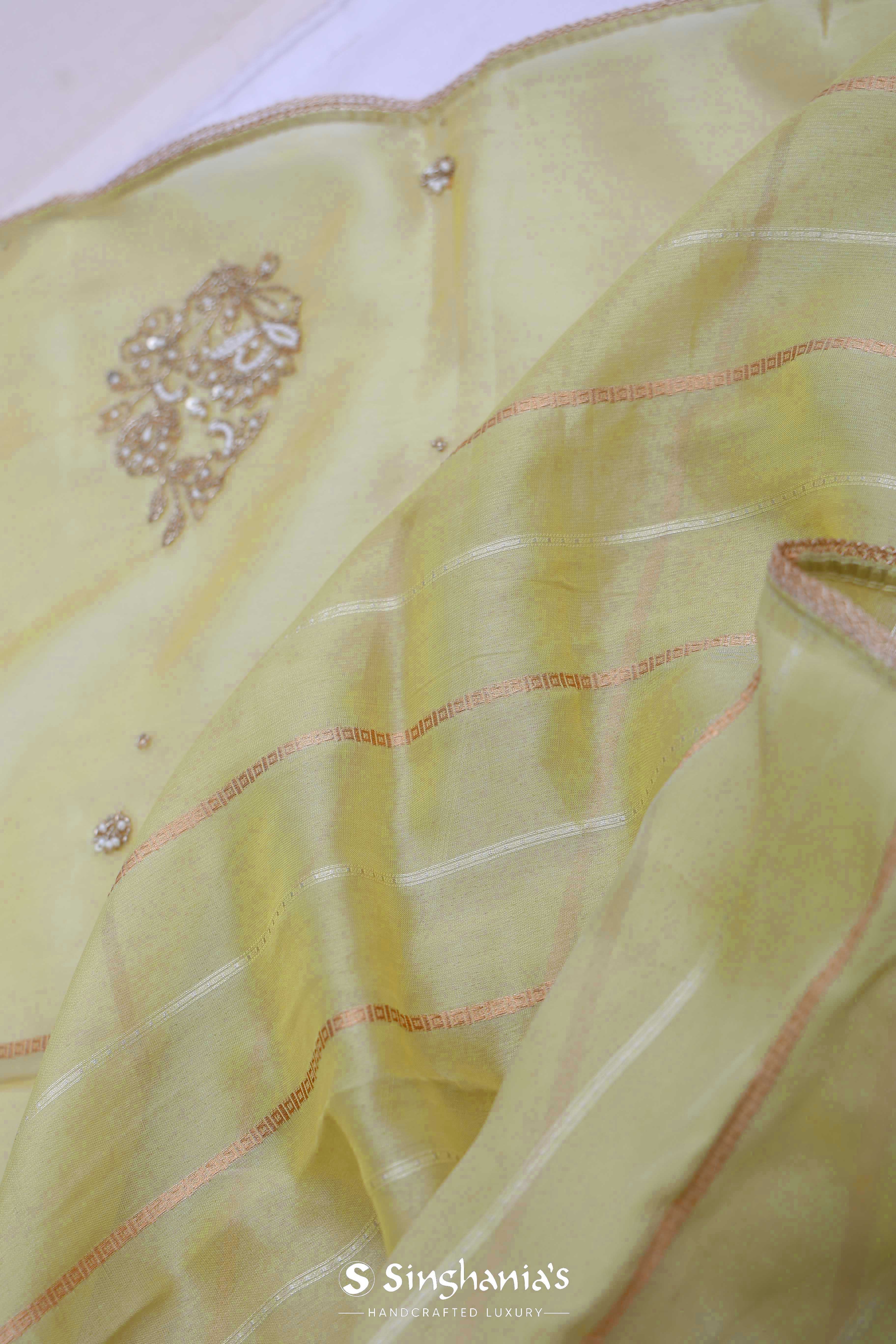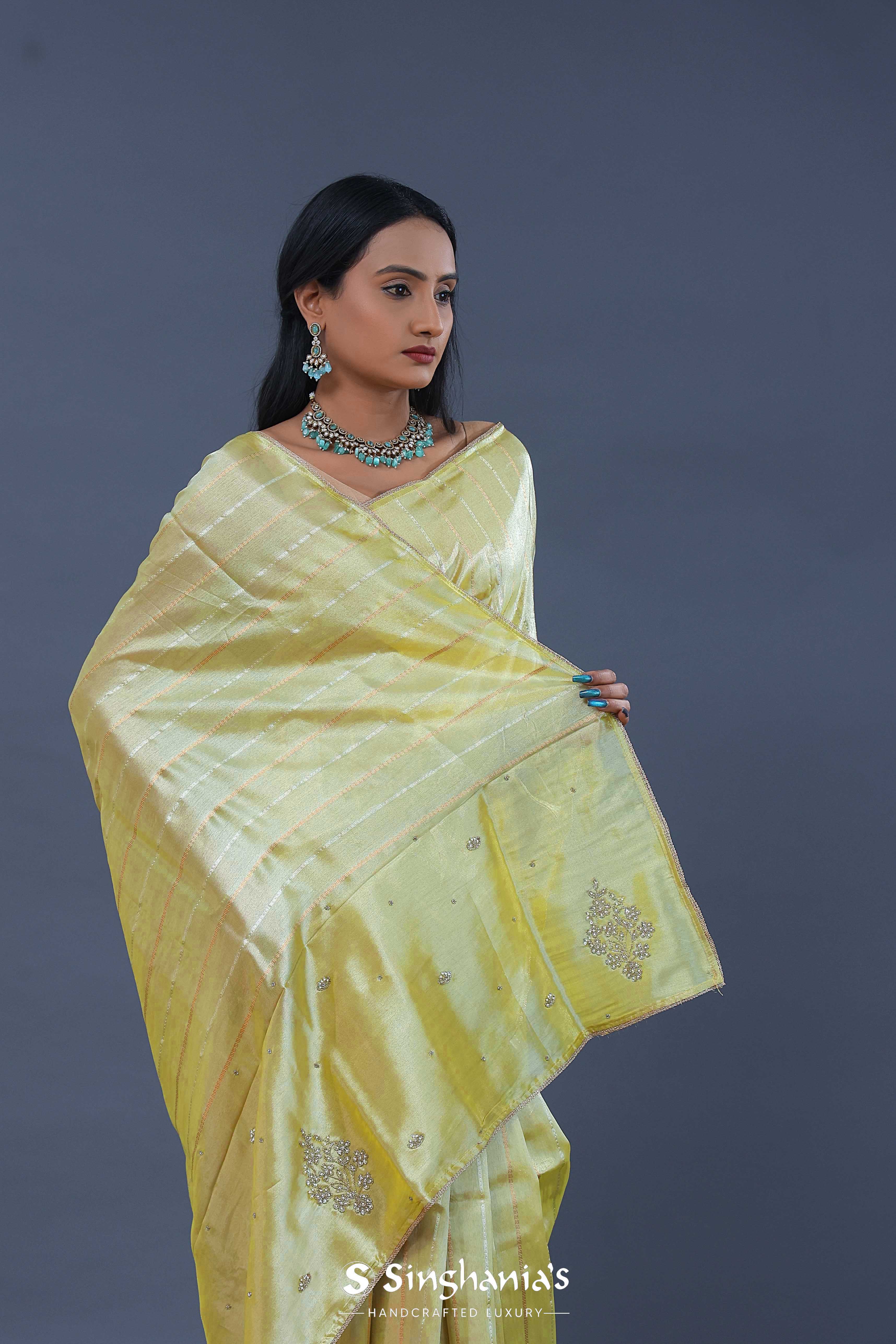 Soft Light Lime Green Organza Tissue Saree With Stripes