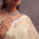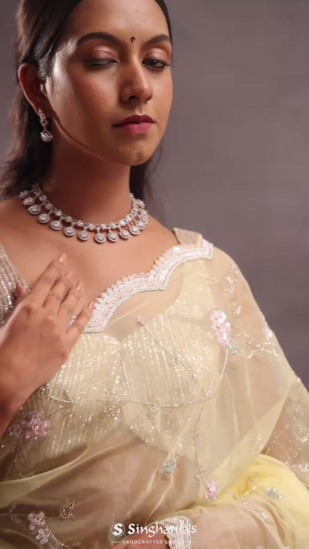 Soft Yellow Organza Embroidery Saree With Pearls And Sequins Detailing