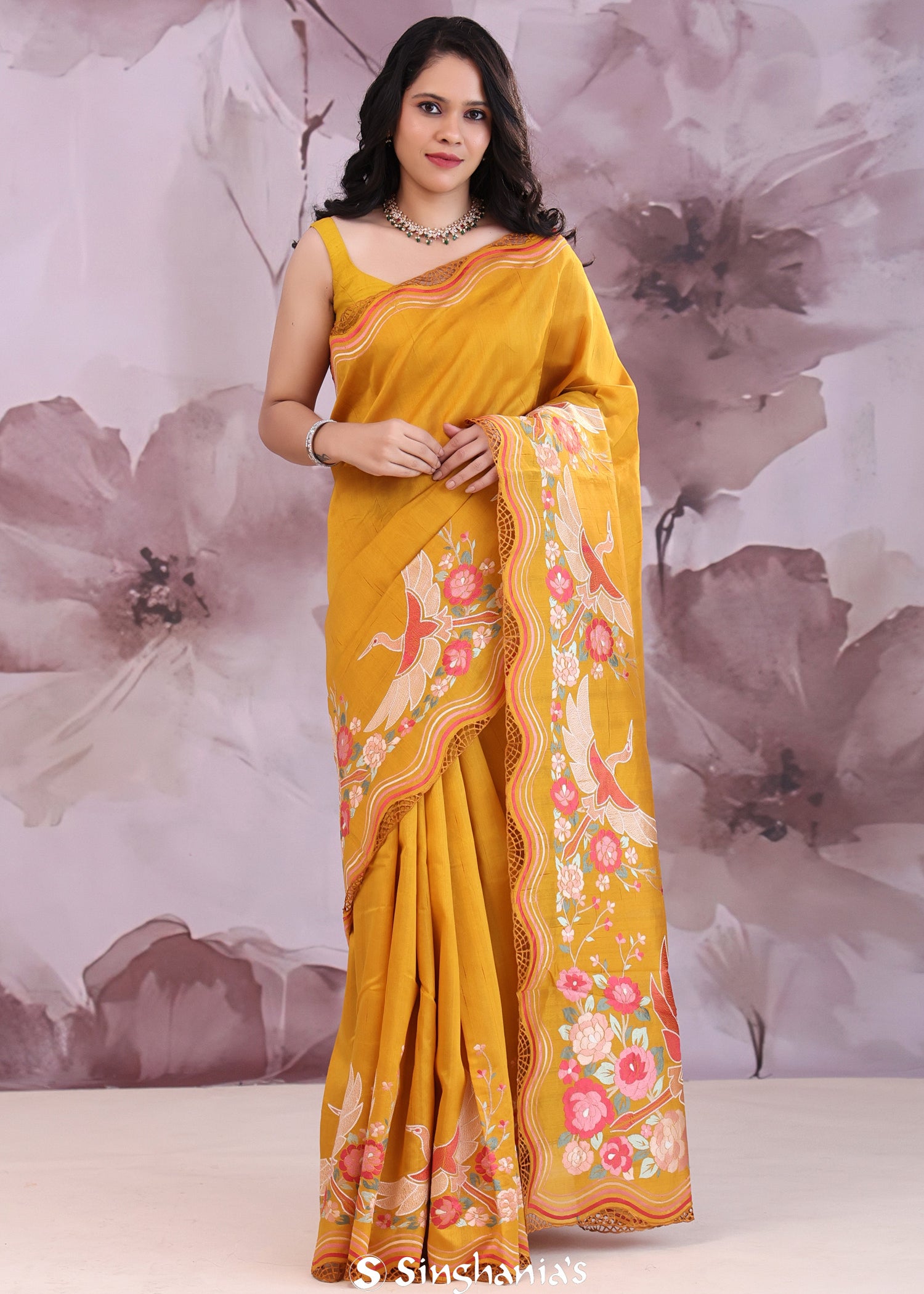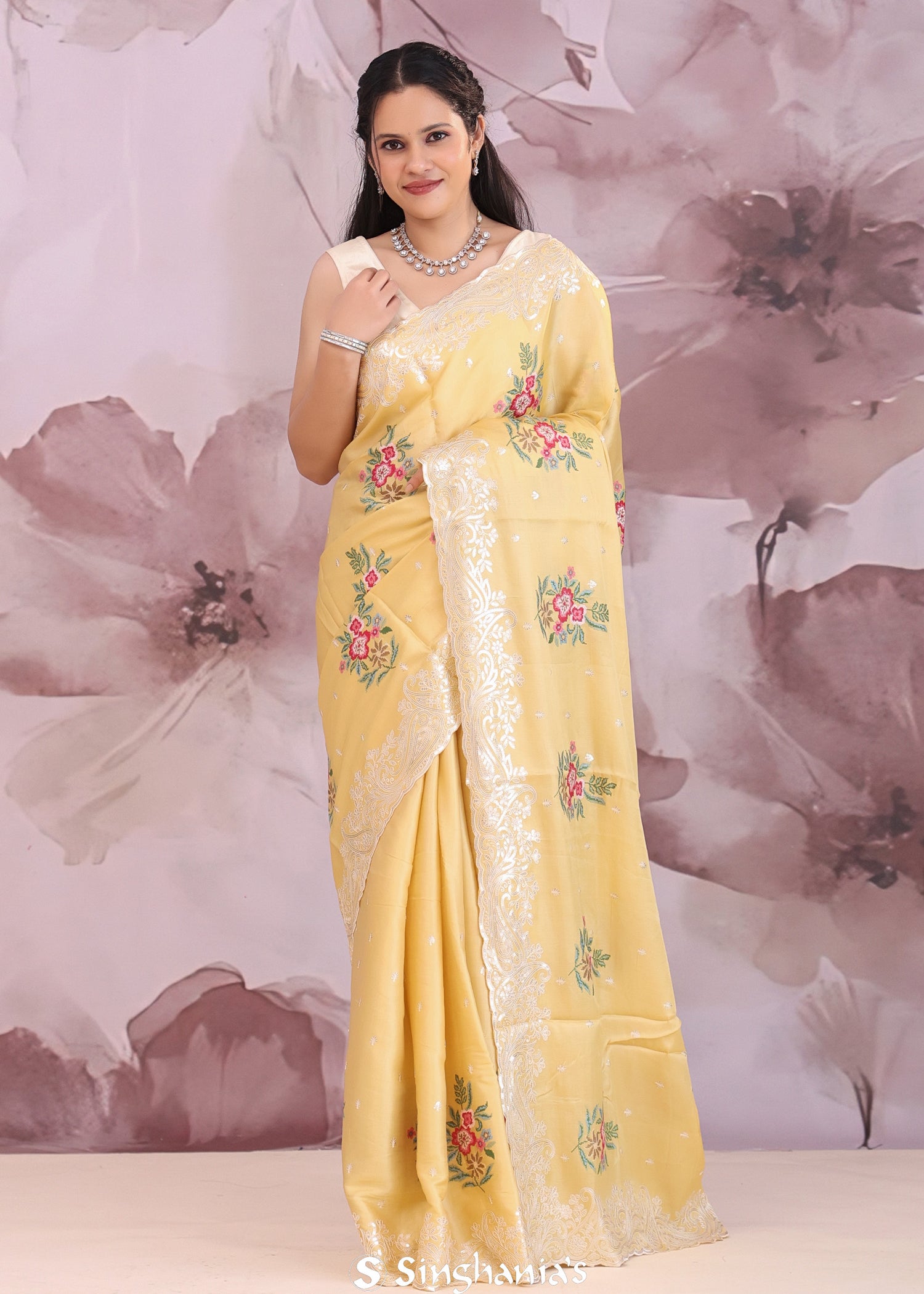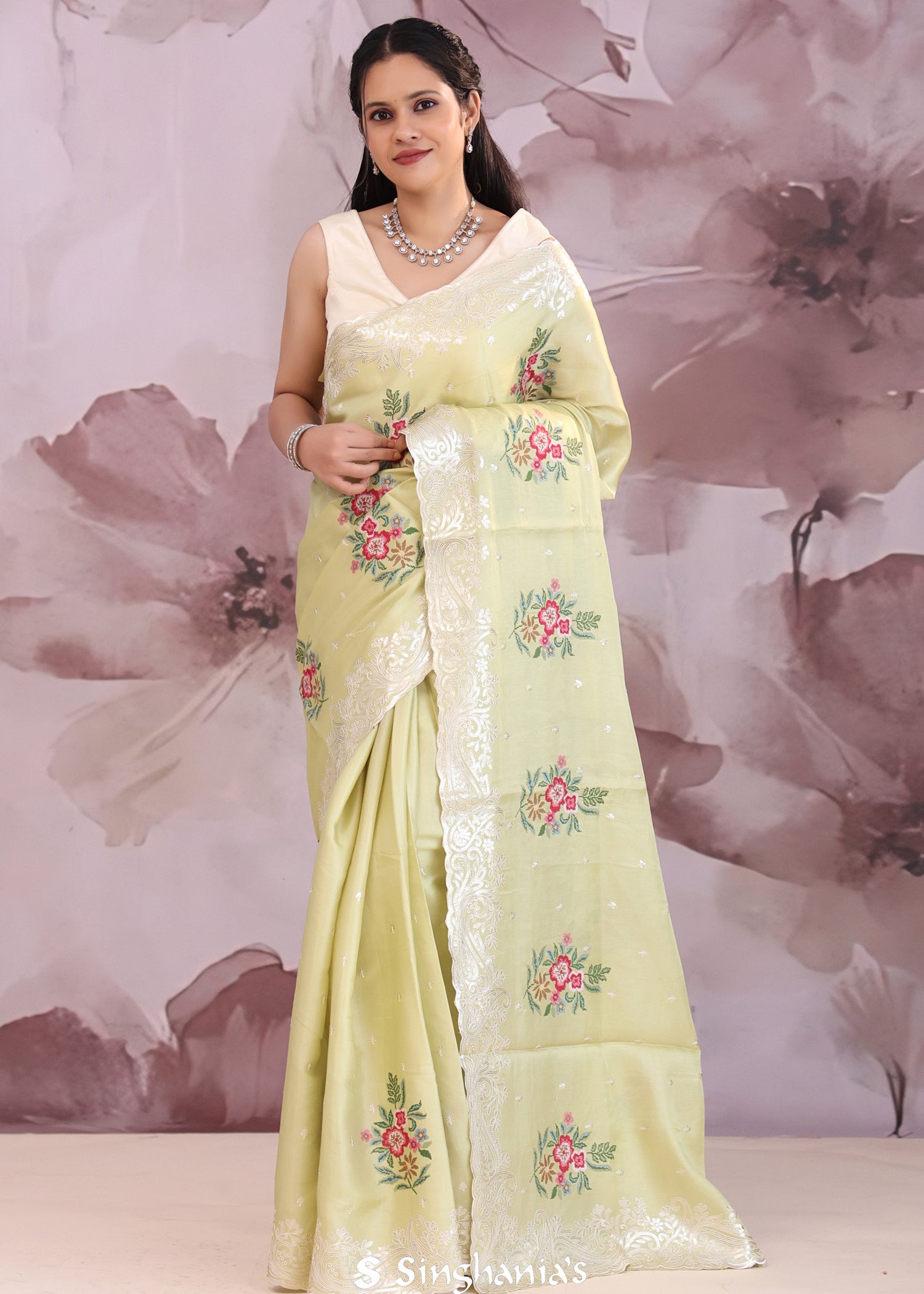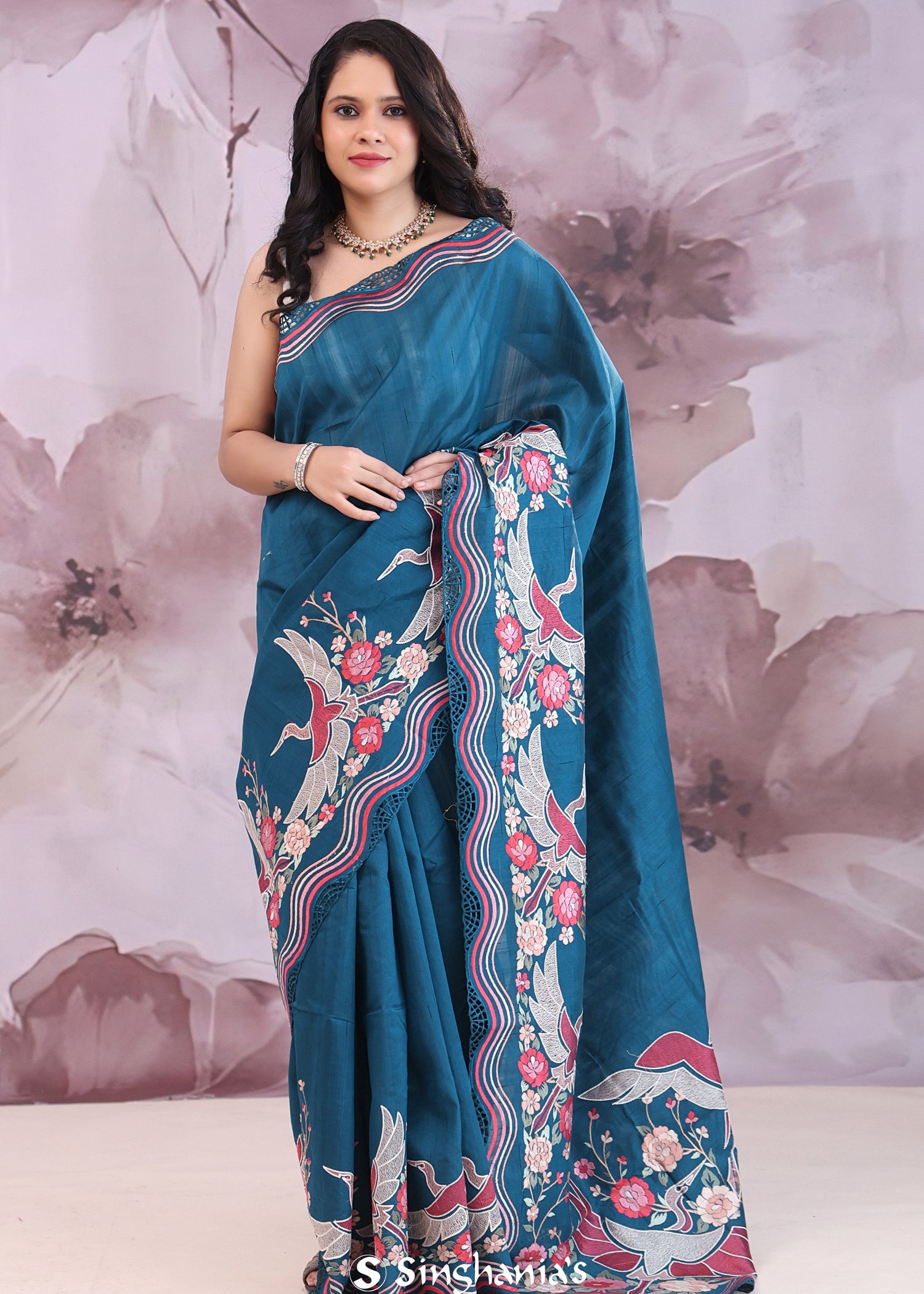 Blue Organza Soft Organza Tissue Saree With Floral Embroidery
