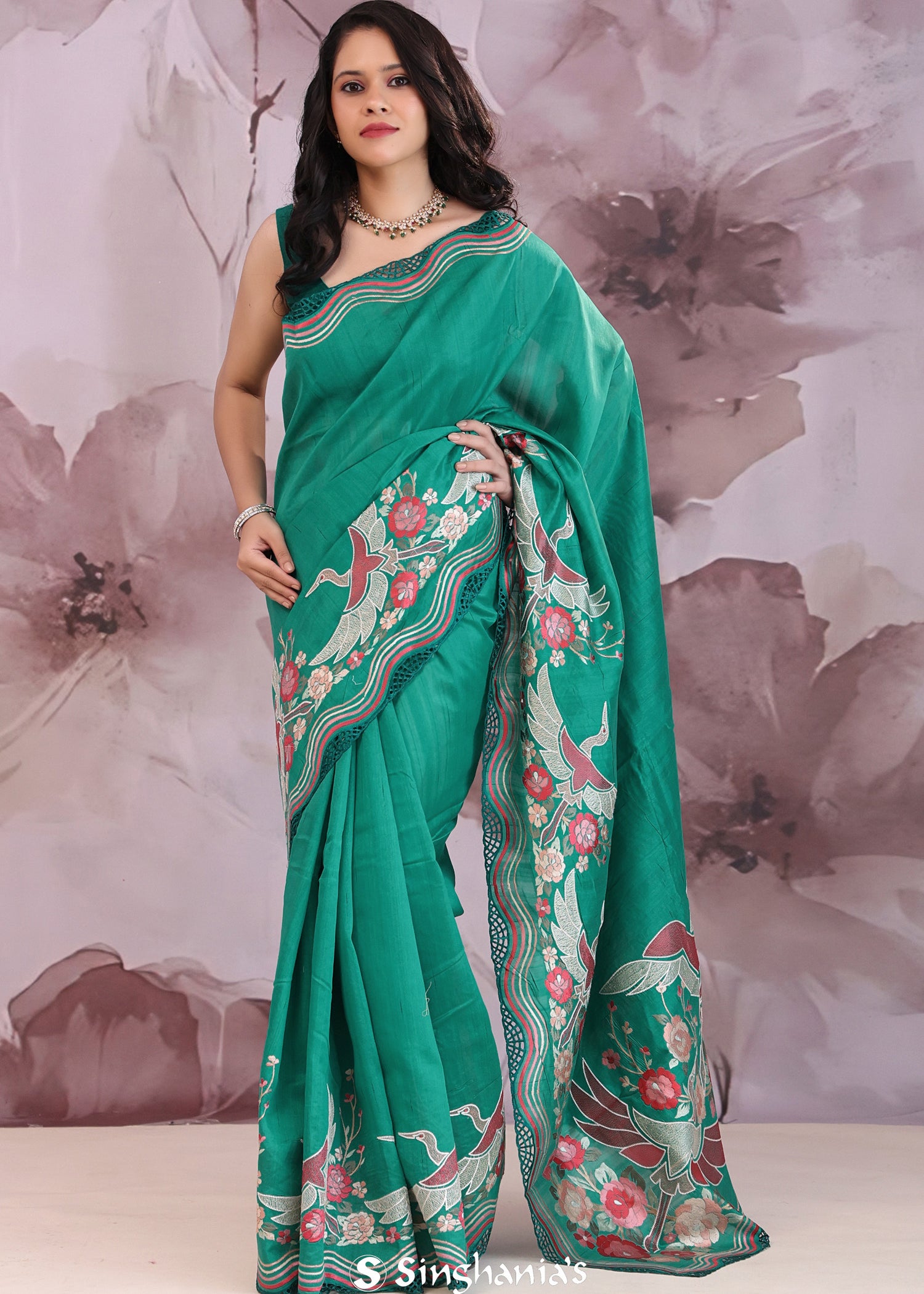 Glacier Blue Organza Tissue Saree With Scallop Border