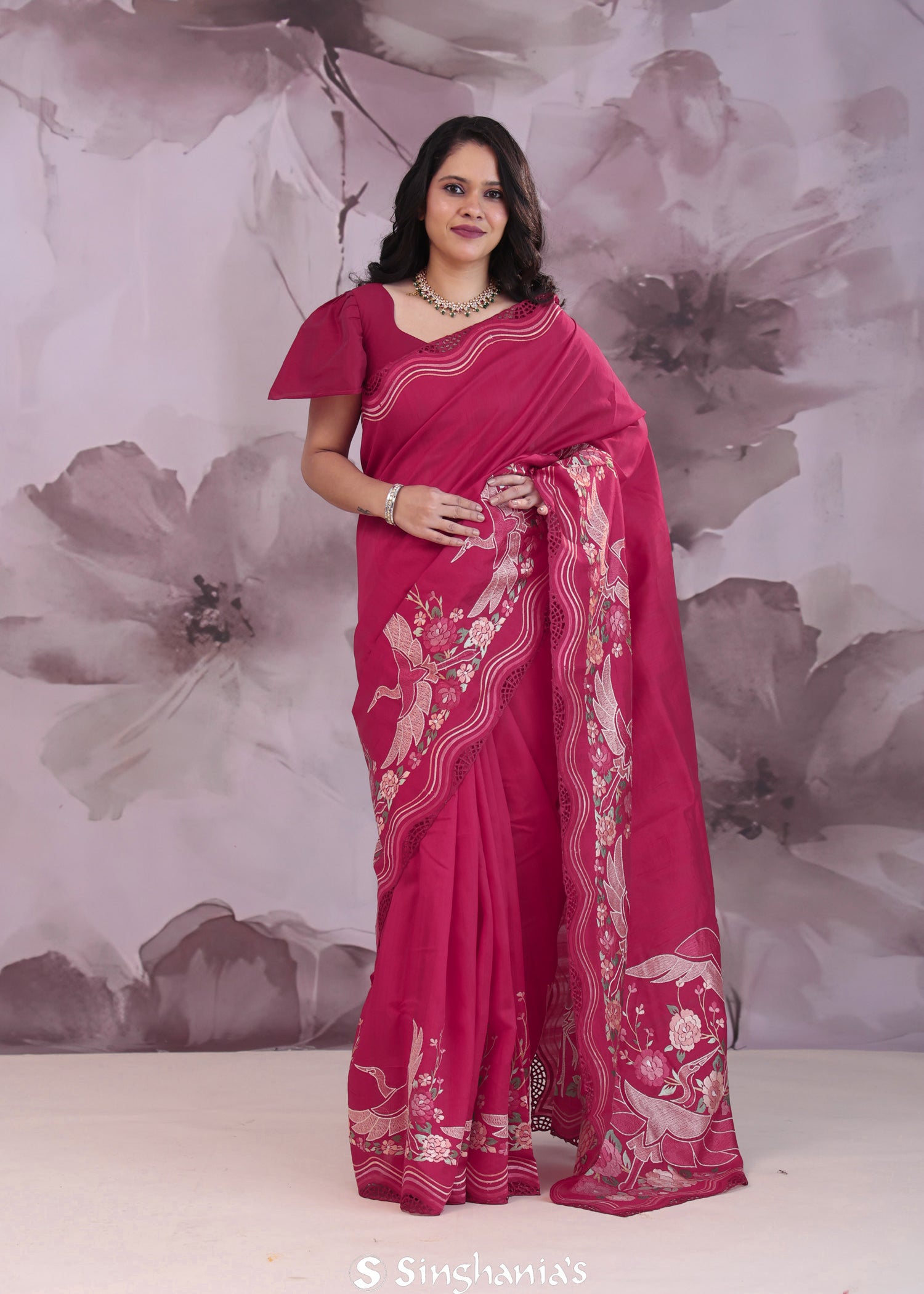 Spun Pearl Blue Soft Silk Saree With Petit Point Embroidery