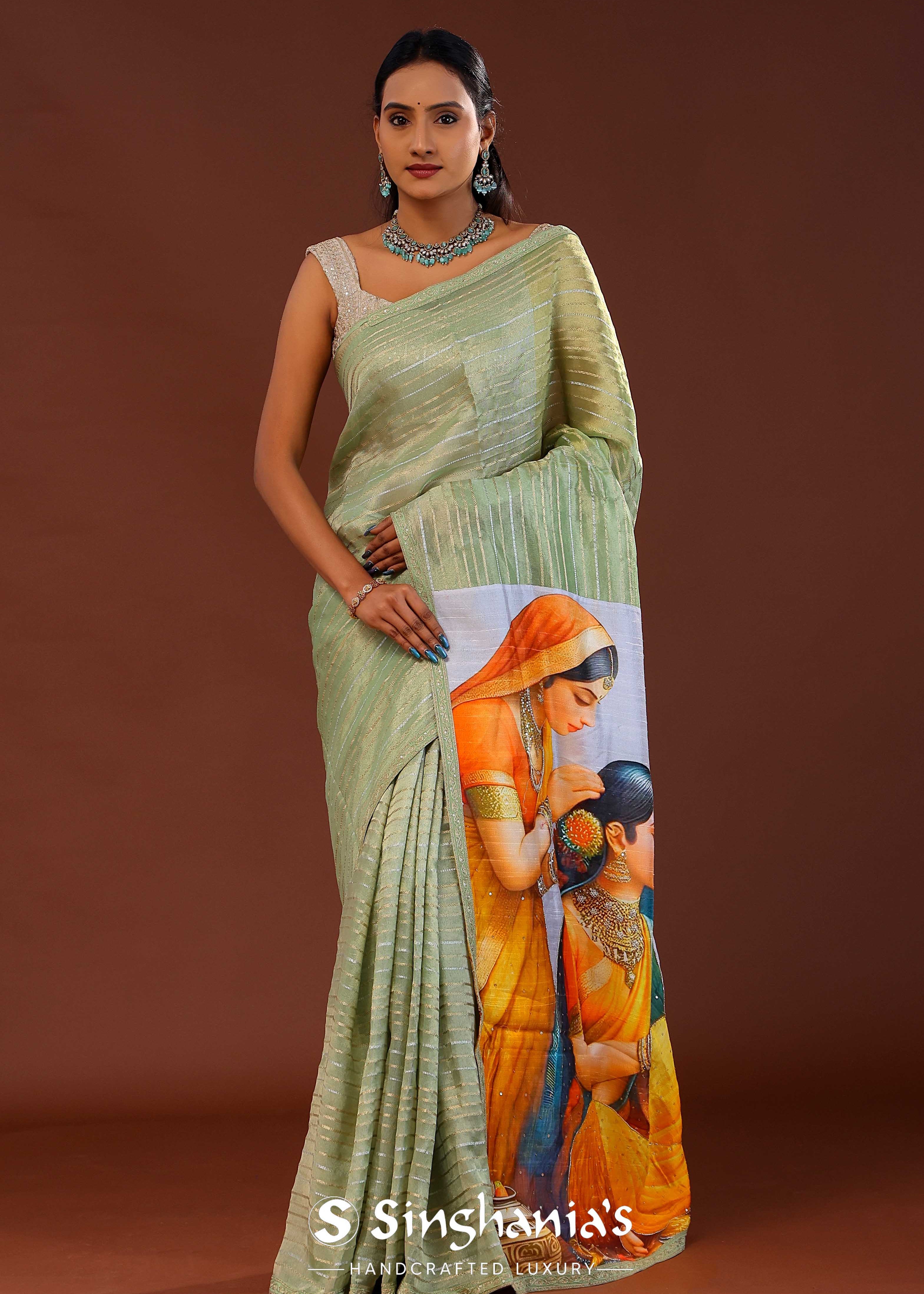 Pista Green Tissue Organza Saree