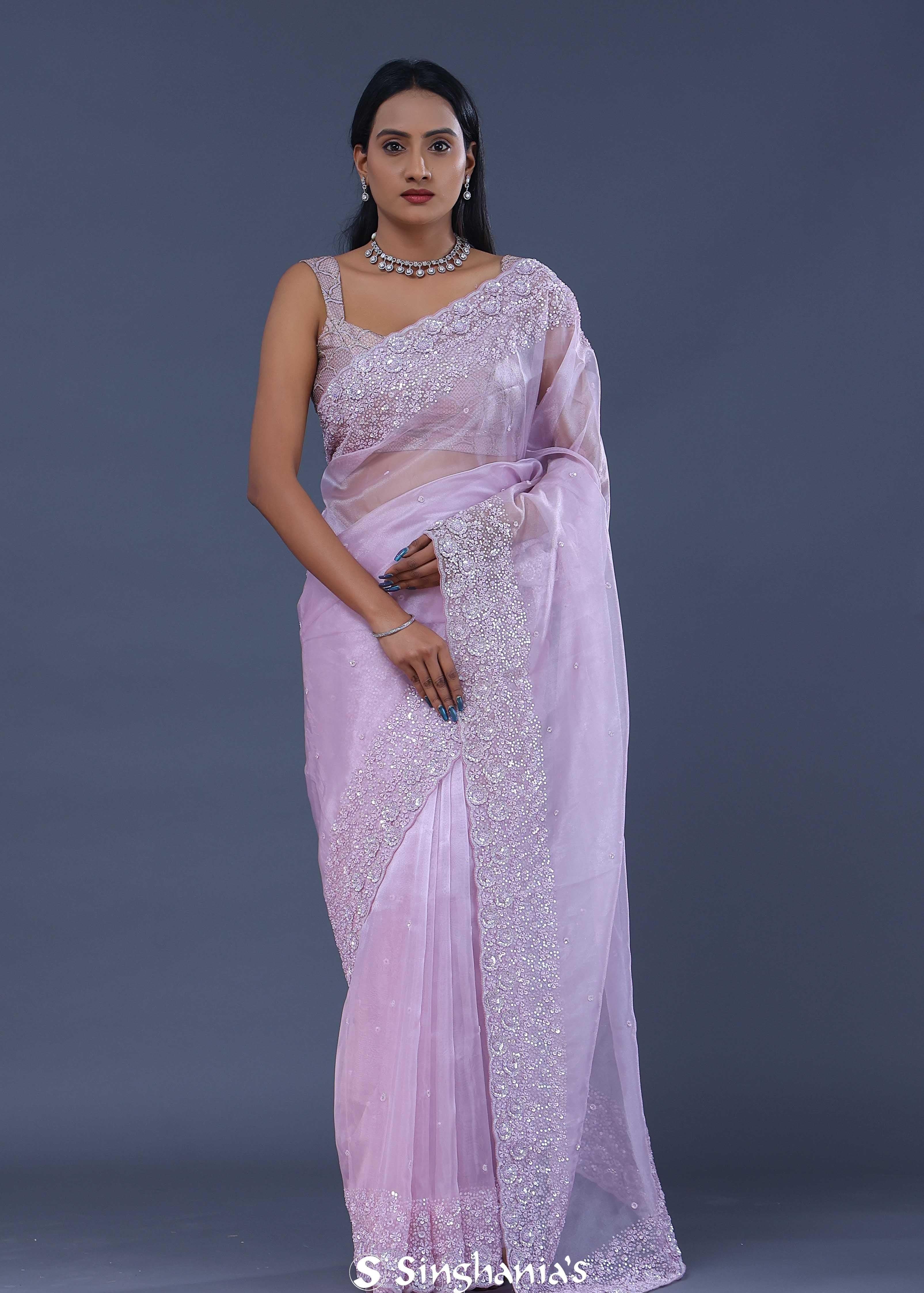 Lavender Pink Organza Saree With Petit Embroidery