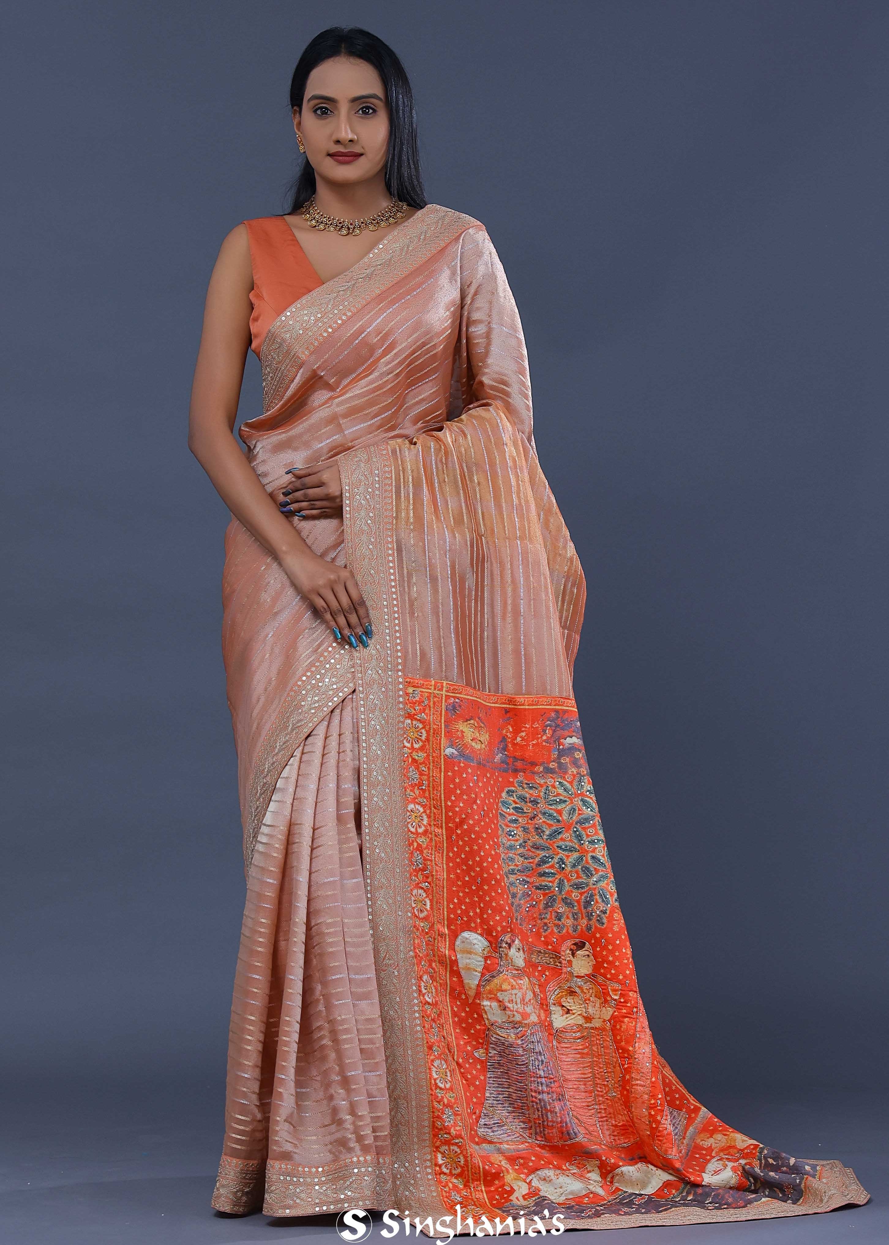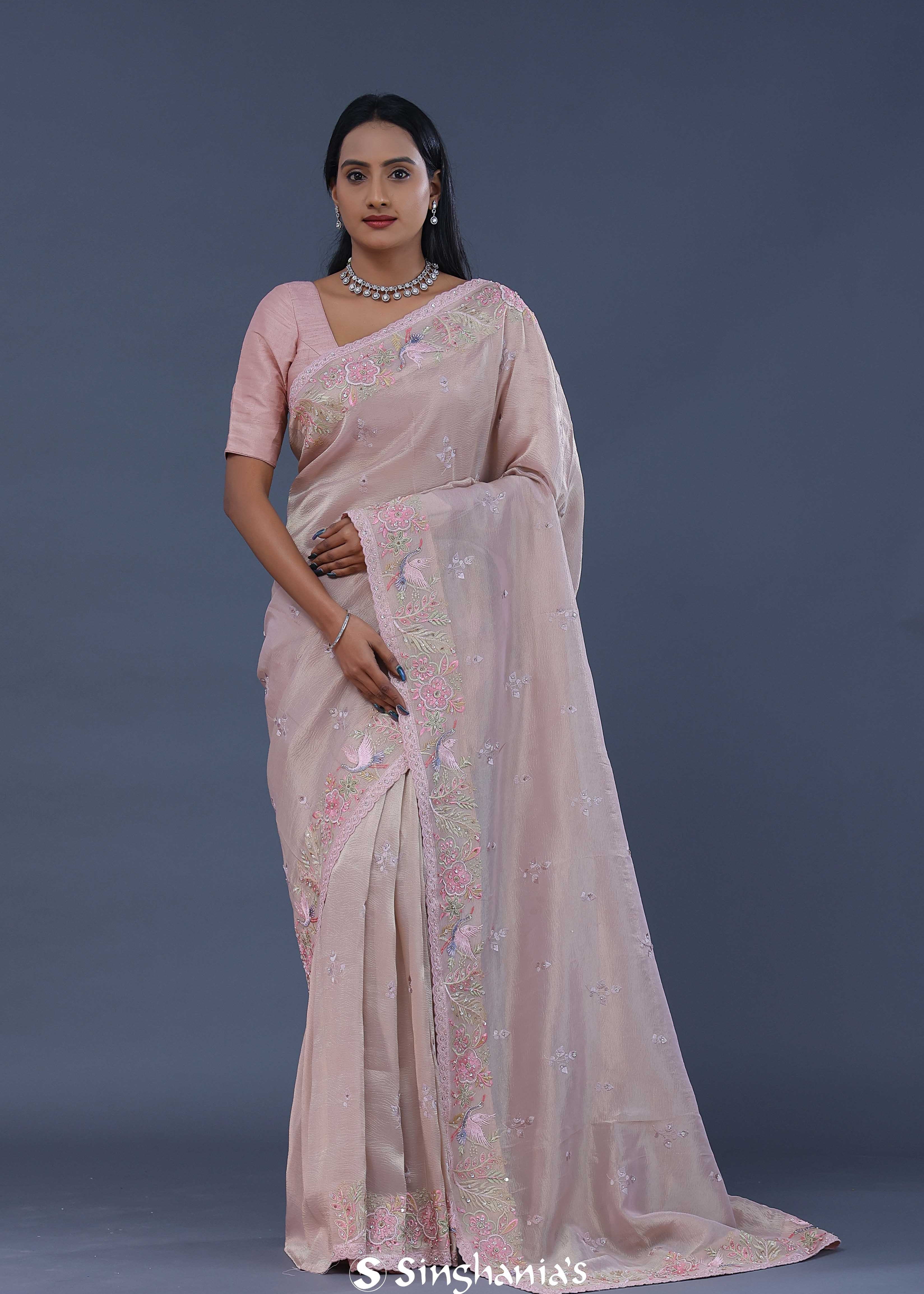Pinkish Brown Fancy Tissue Saree With Embroidery Border