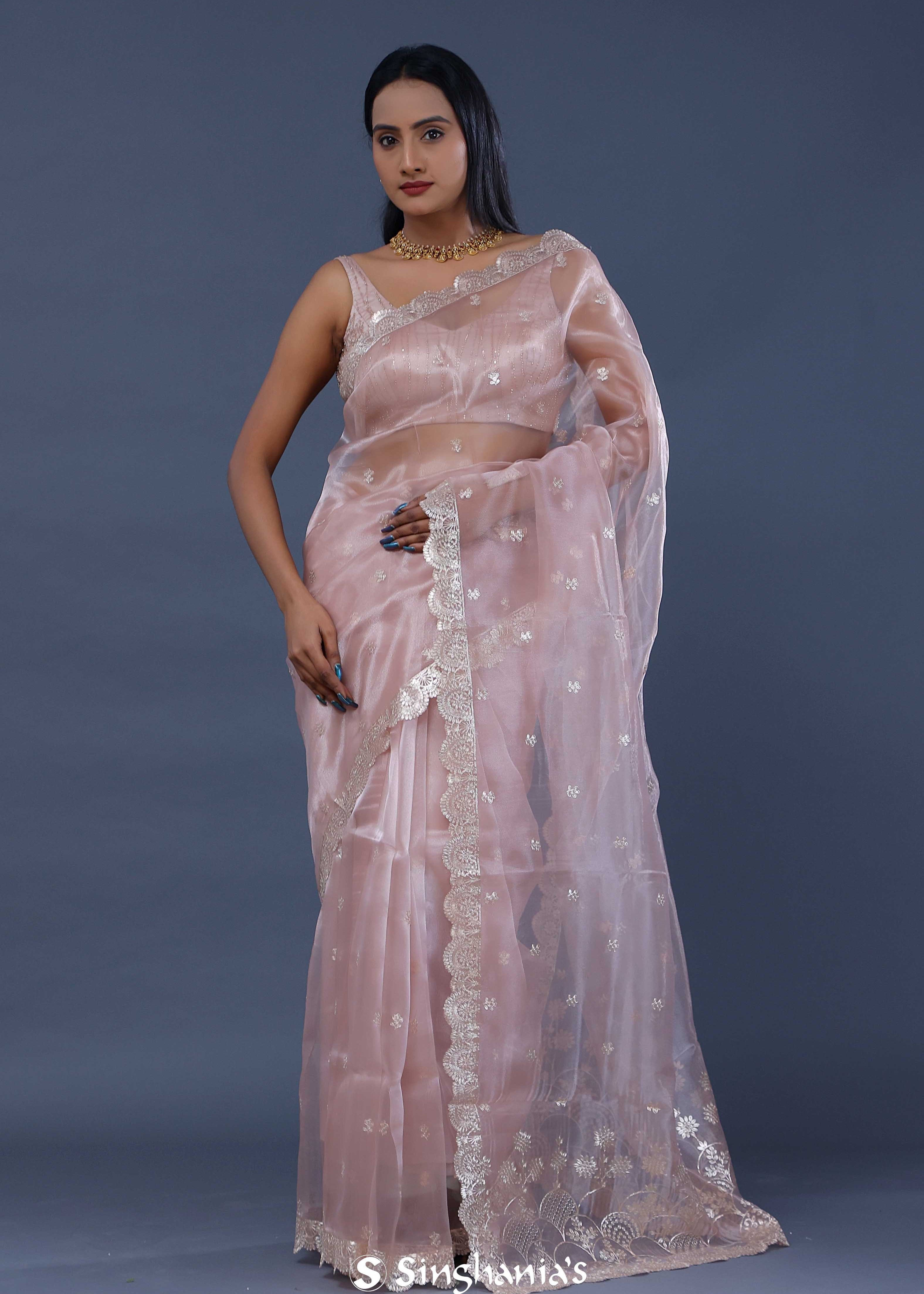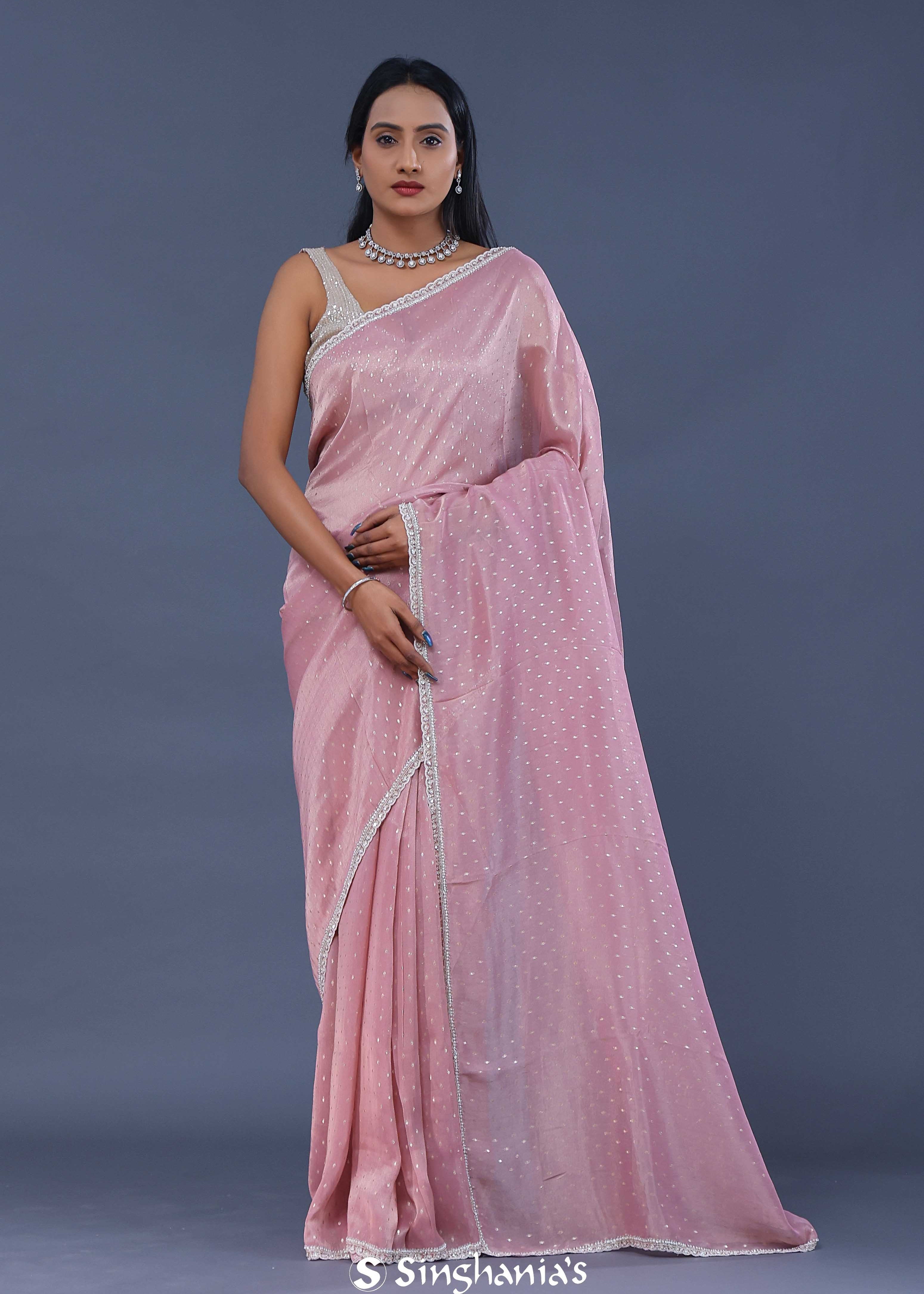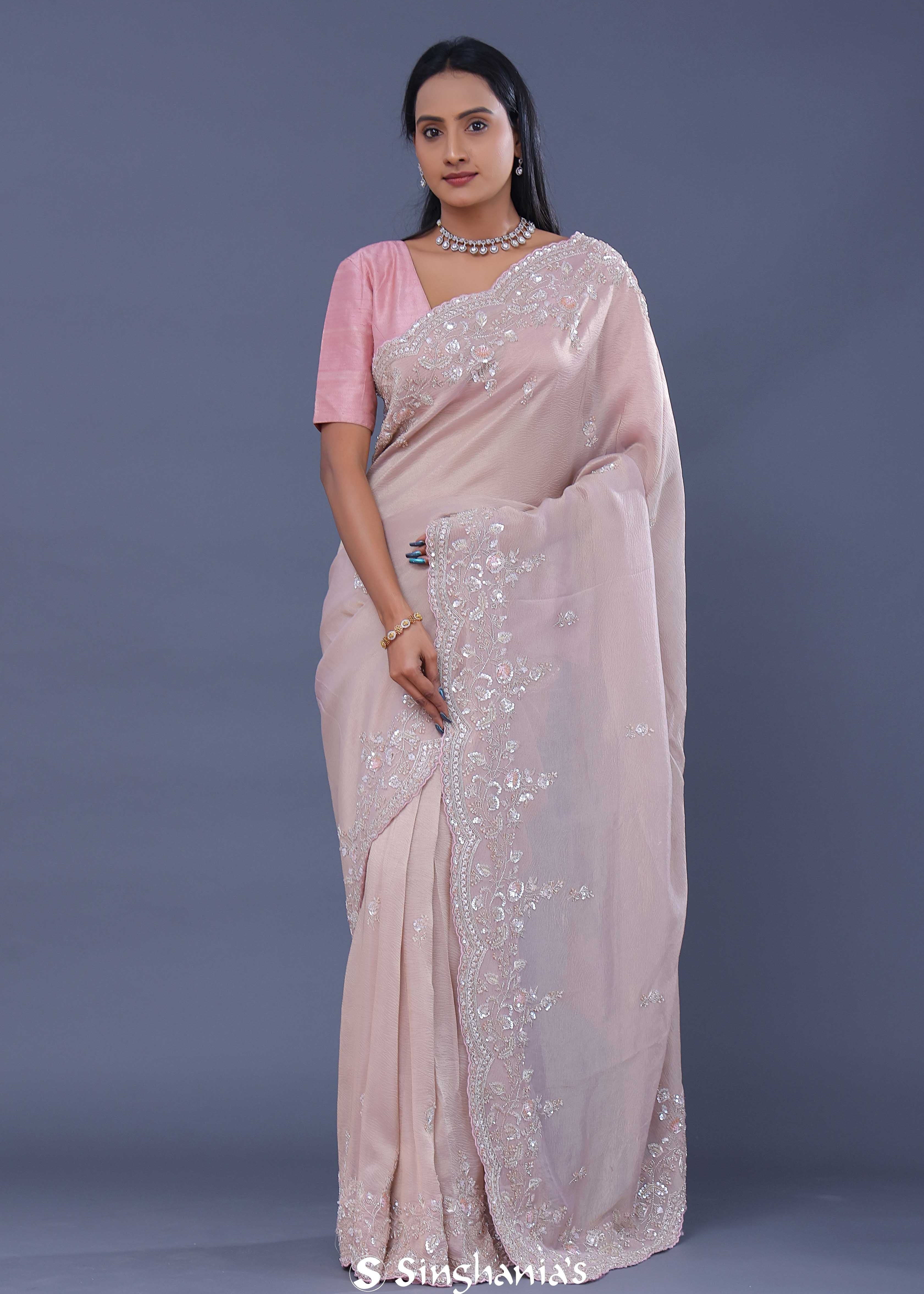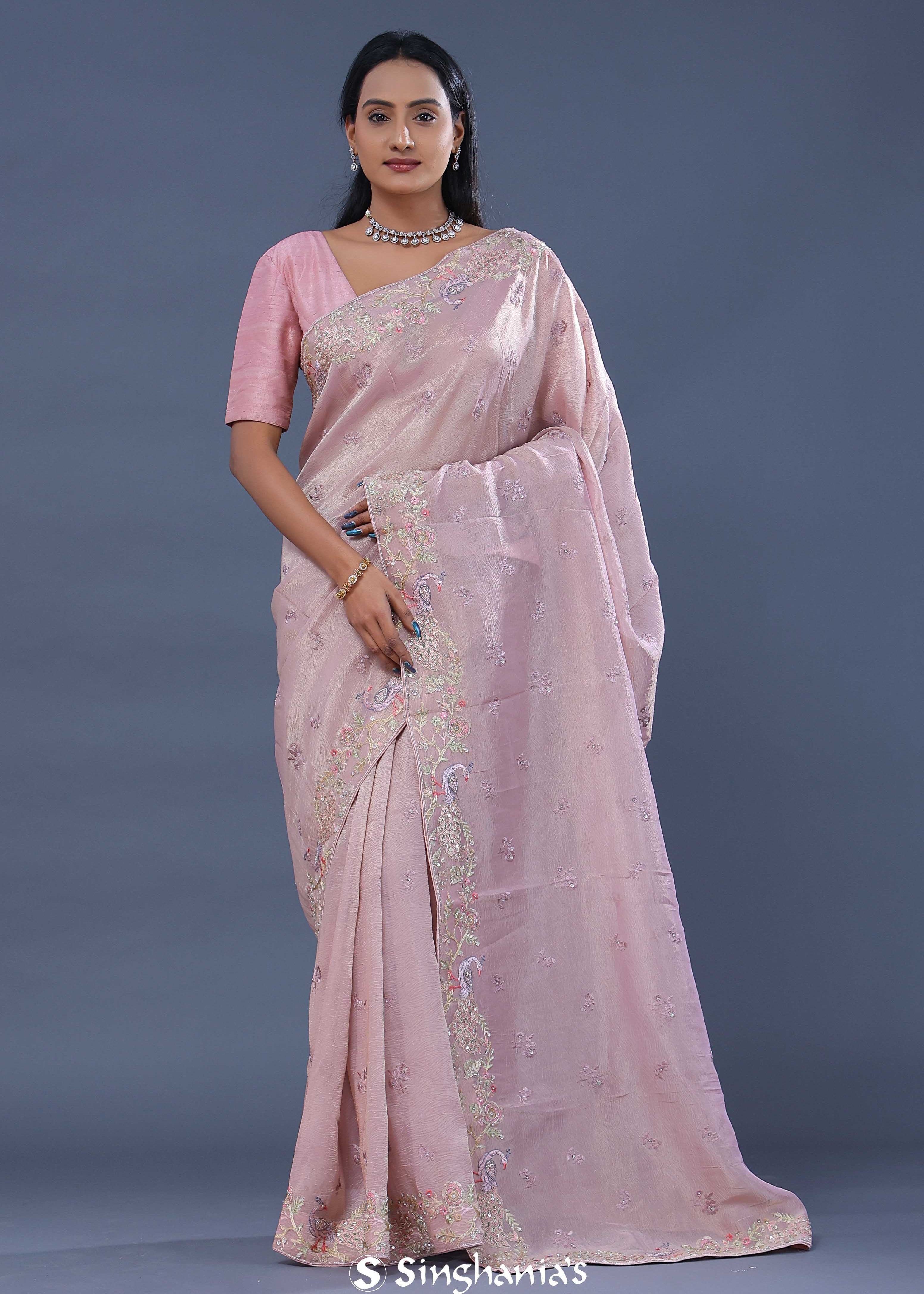 Pastel Pink Tissue Organza Saree With Scallop Border