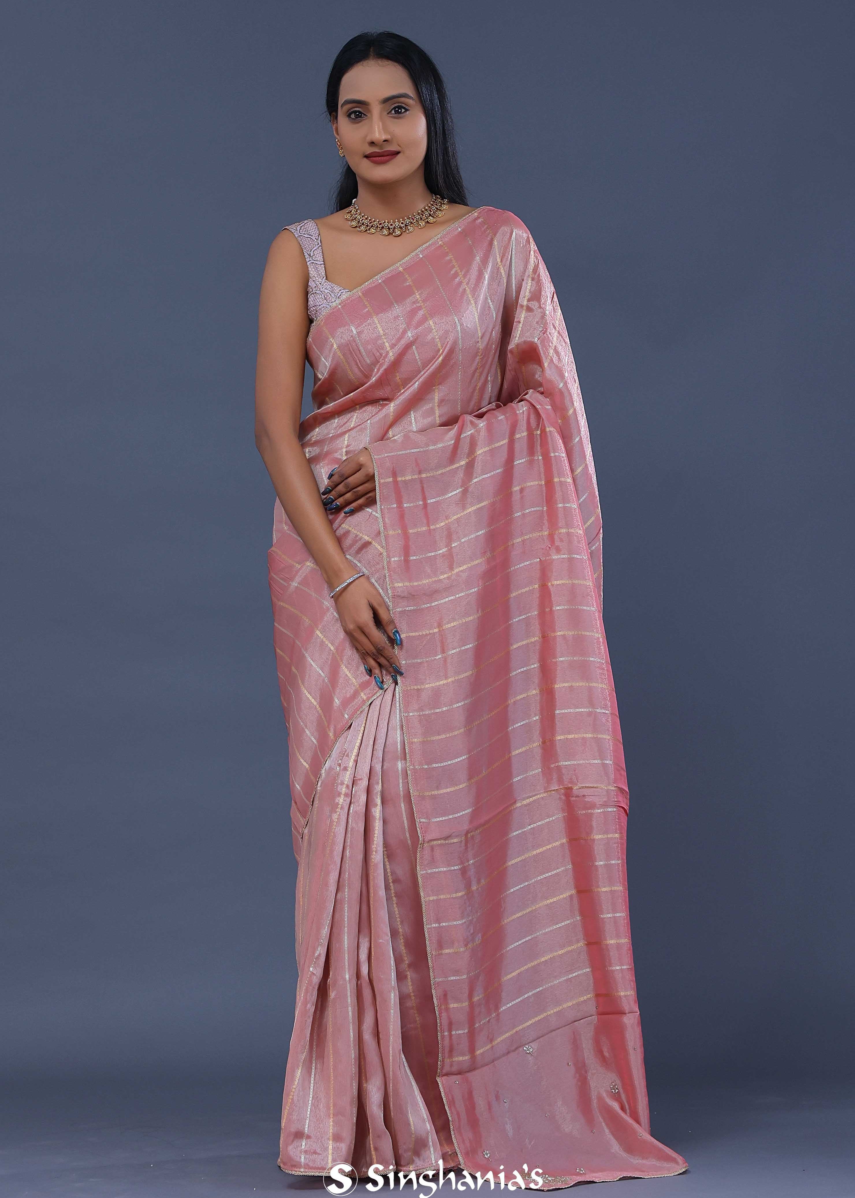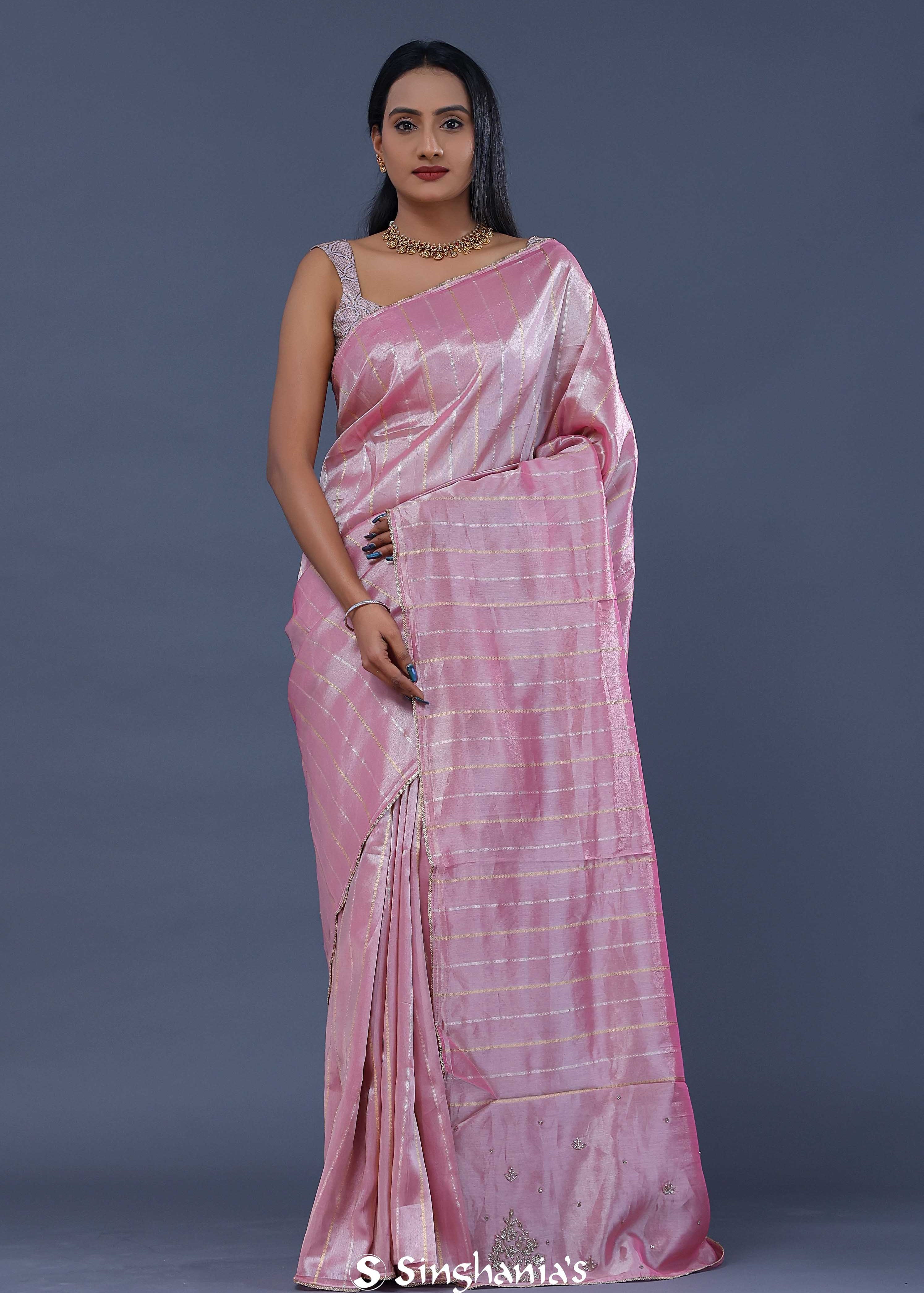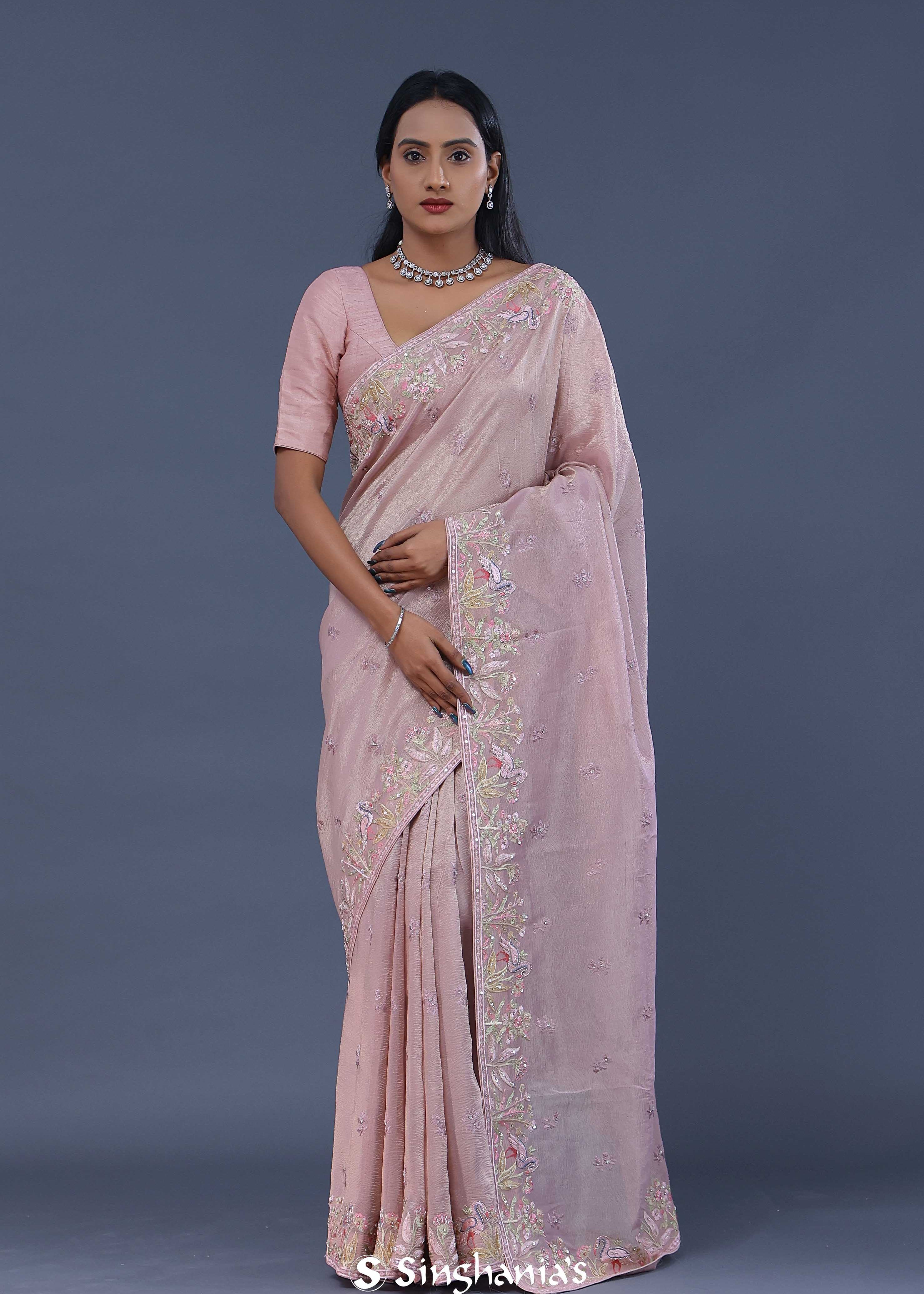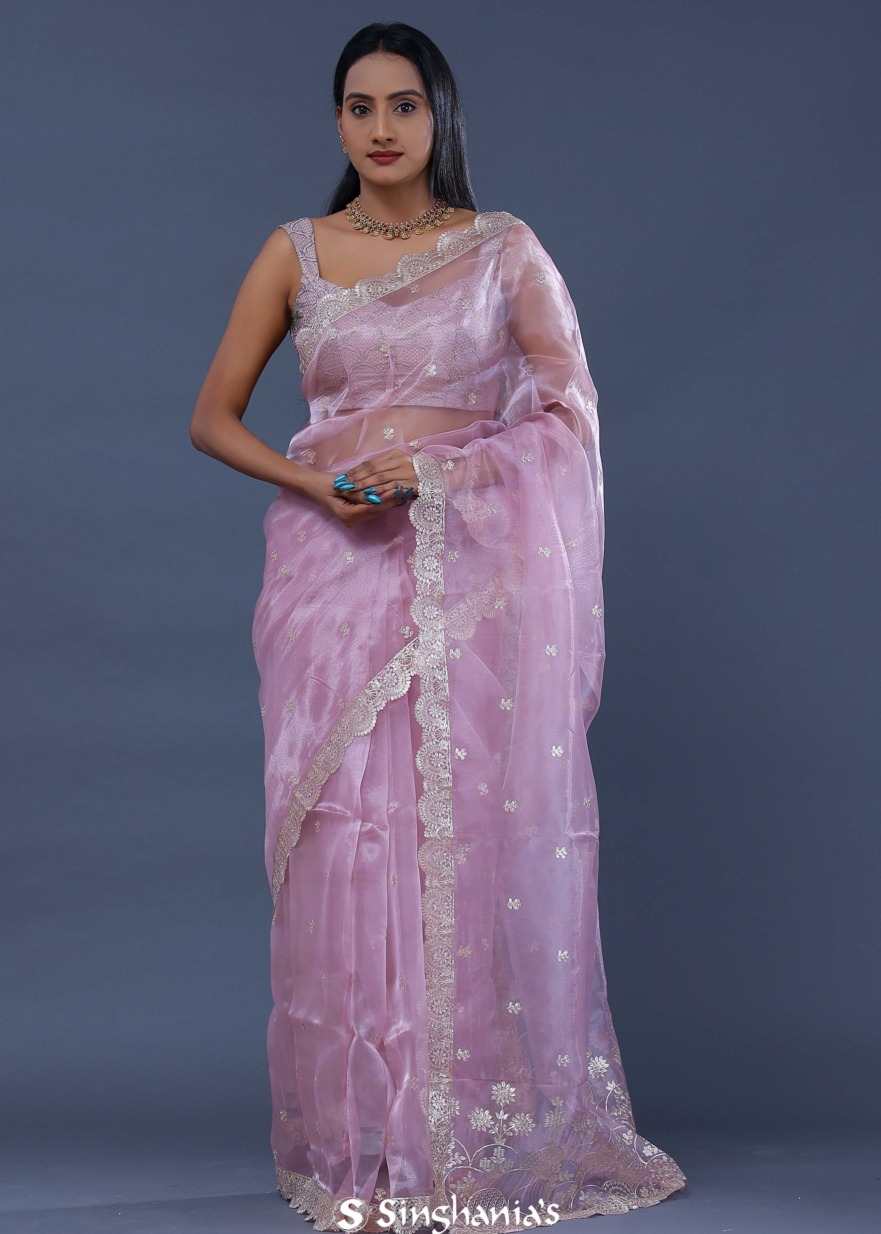 Pastel Pink Tissue Organza Saree With Scallop Border