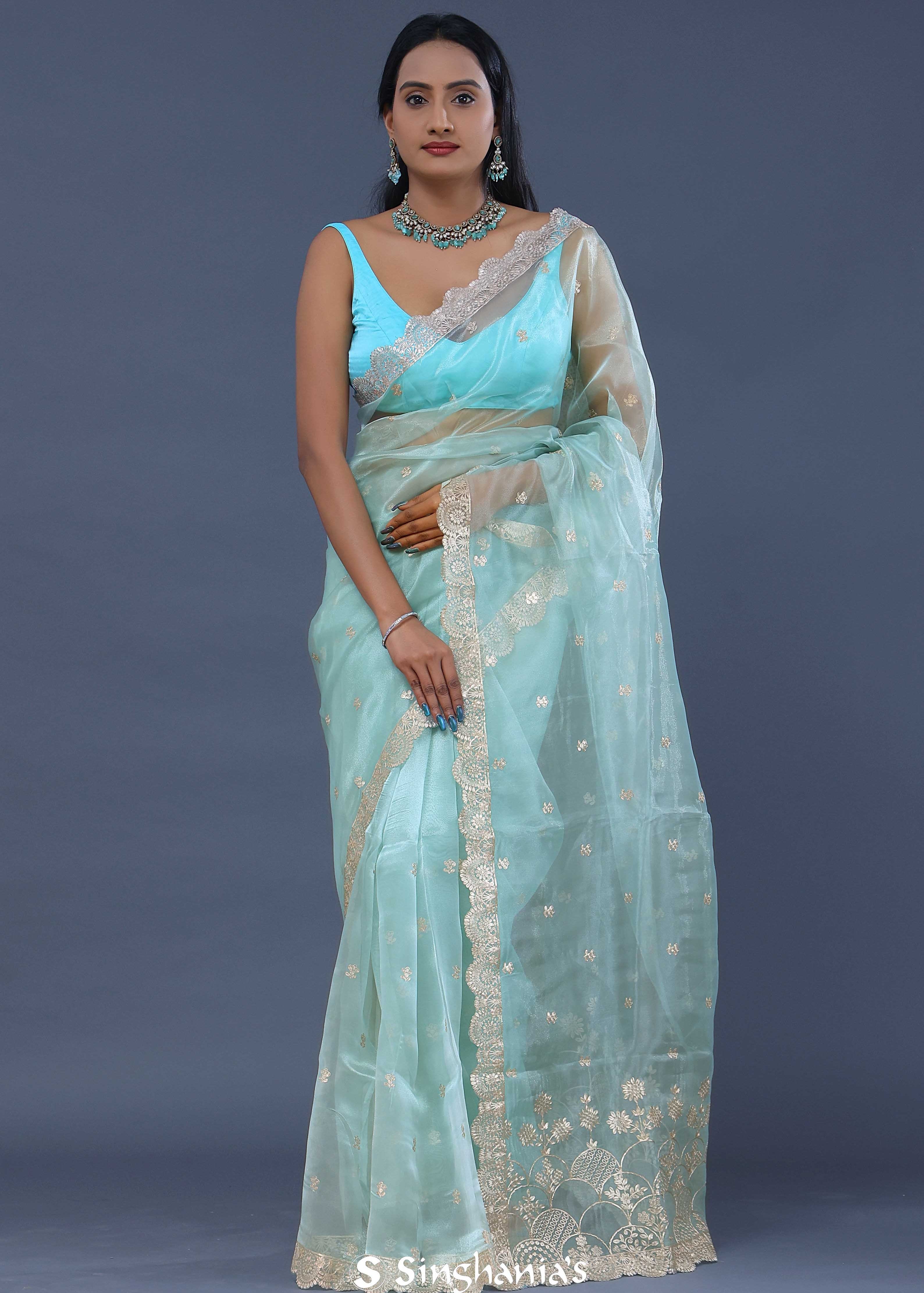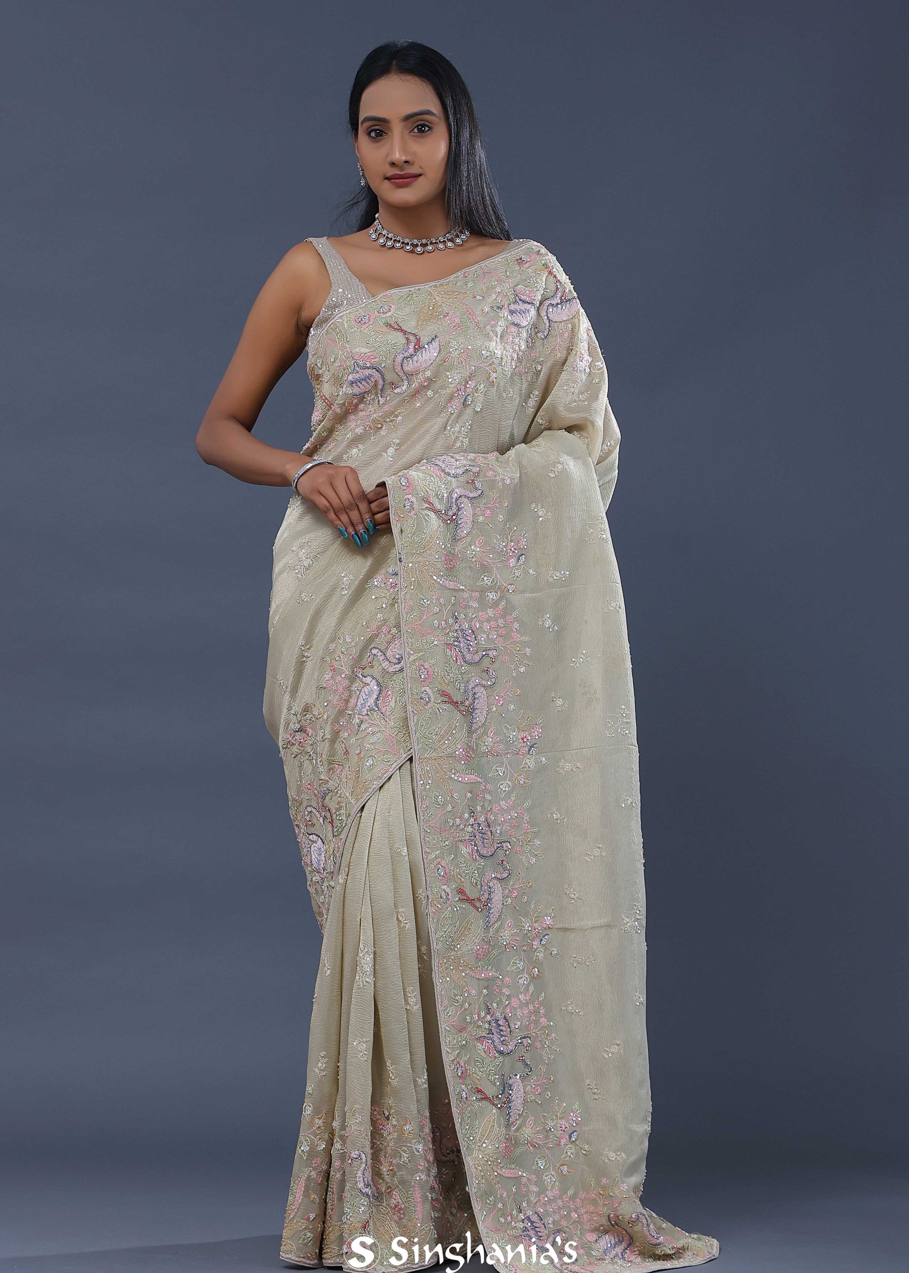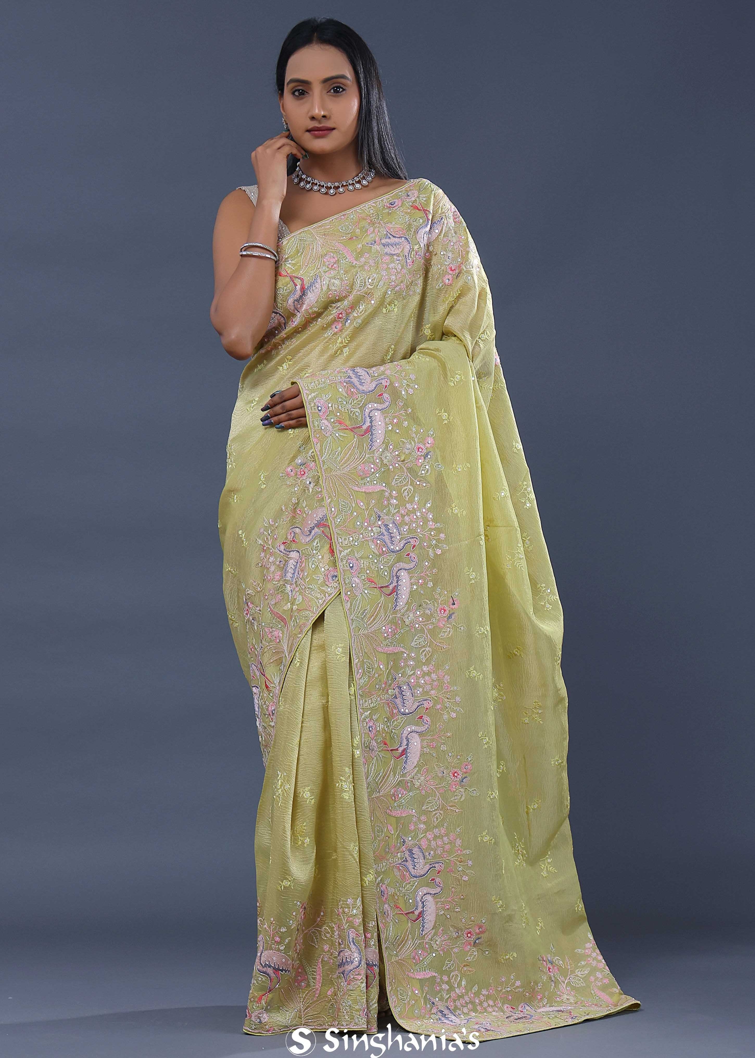 Gin Green Crushed Tissue Saree With Embroidery Work