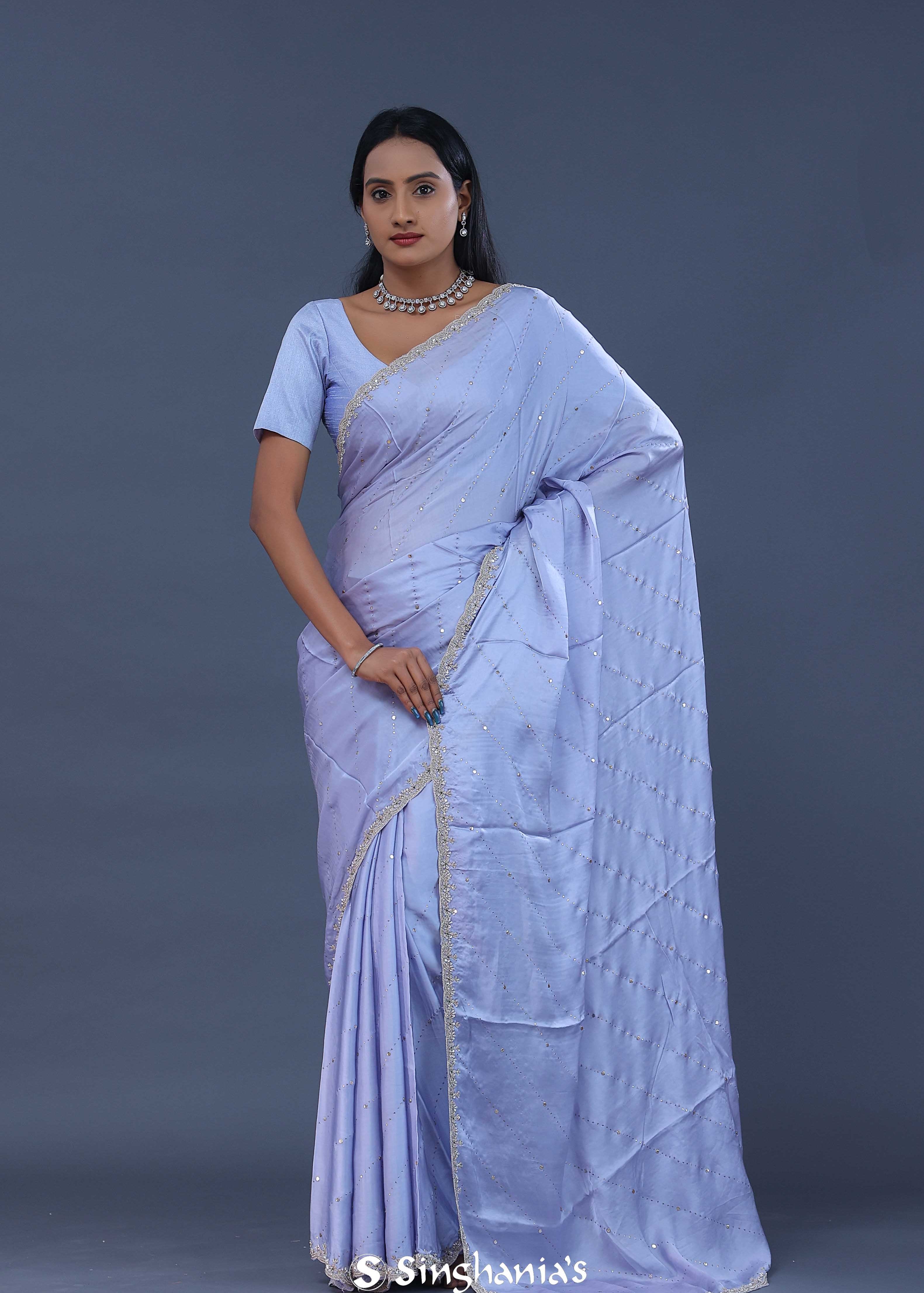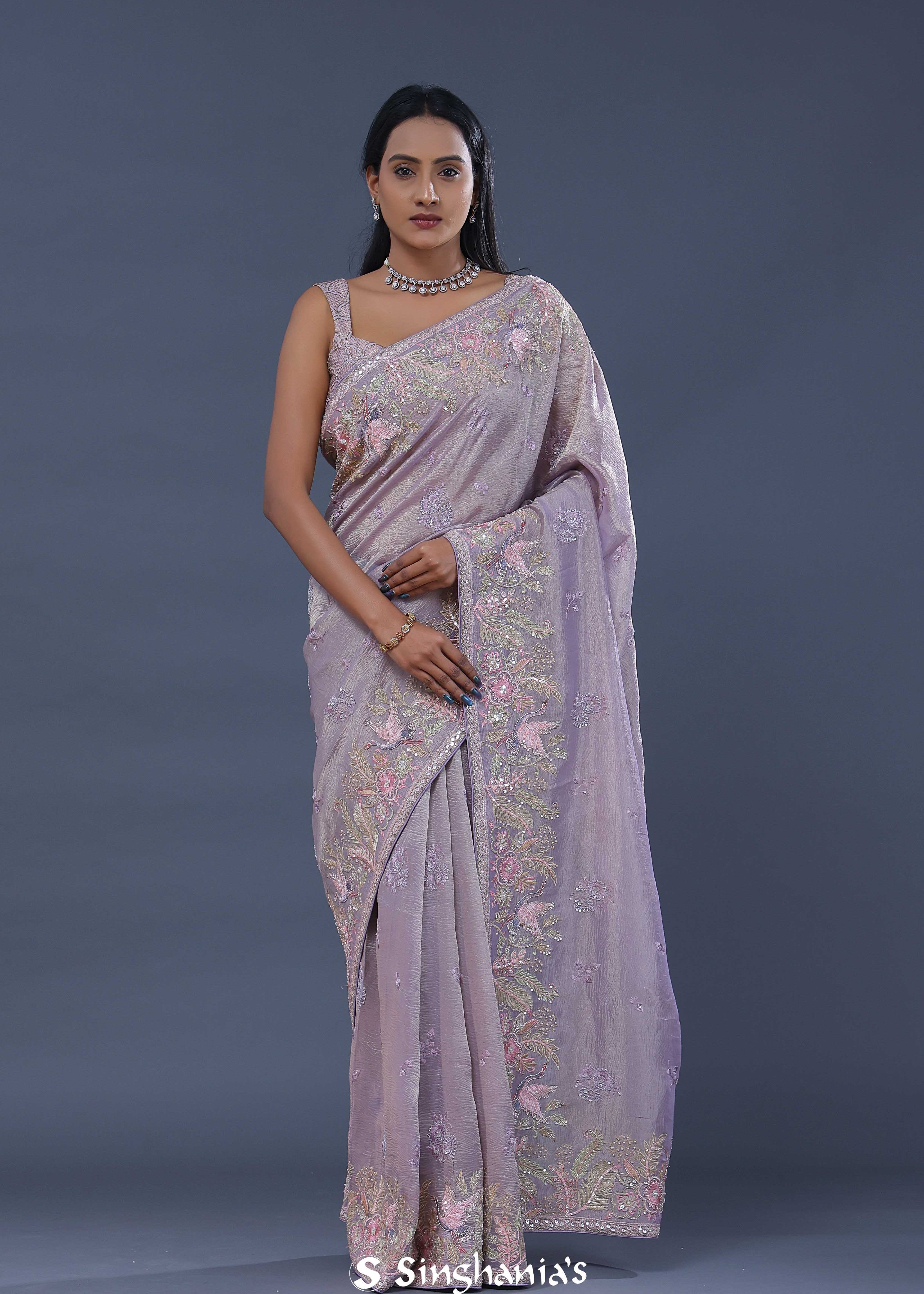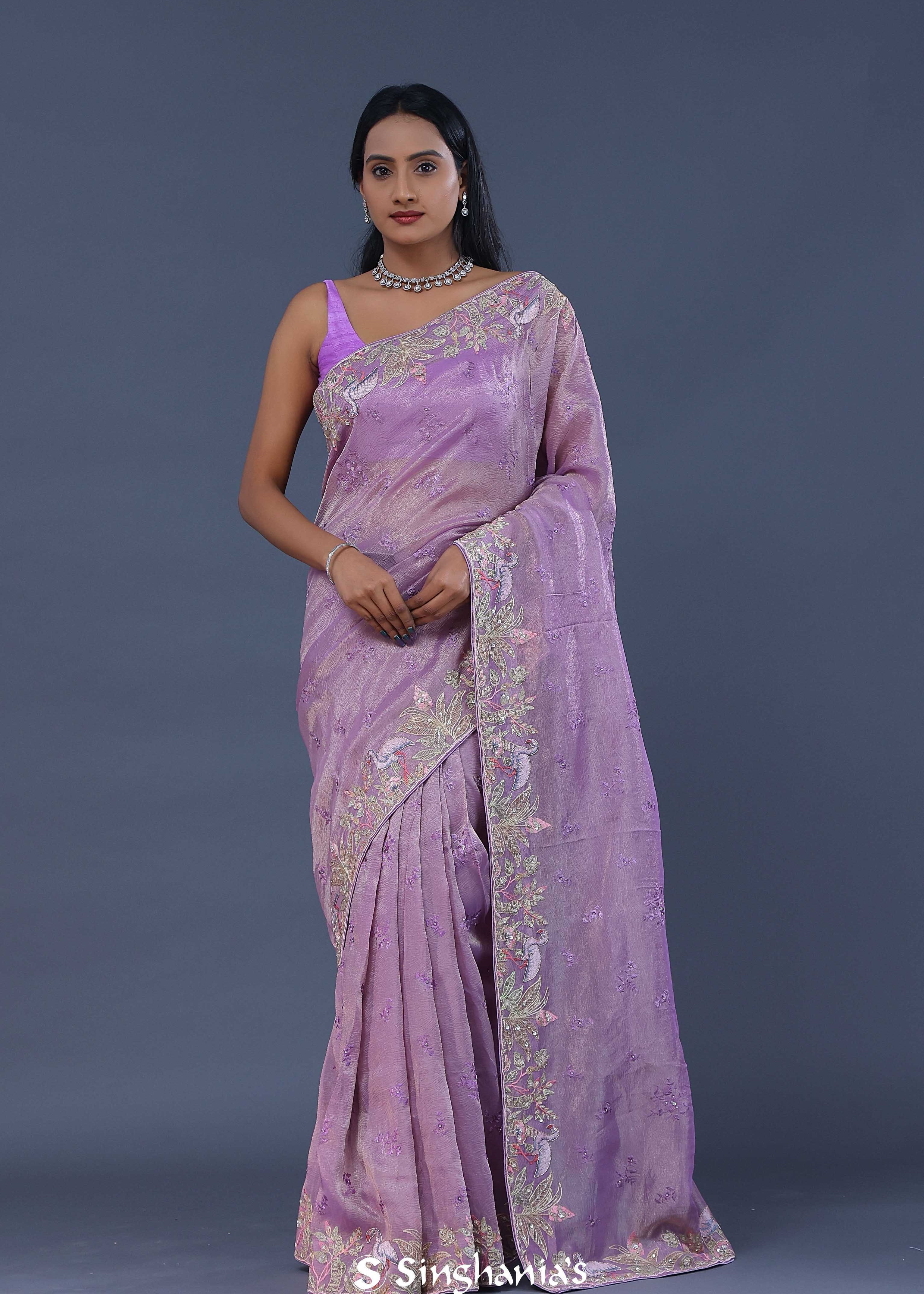 Bright Lilac Tissue Organza Saree With Scallop Border