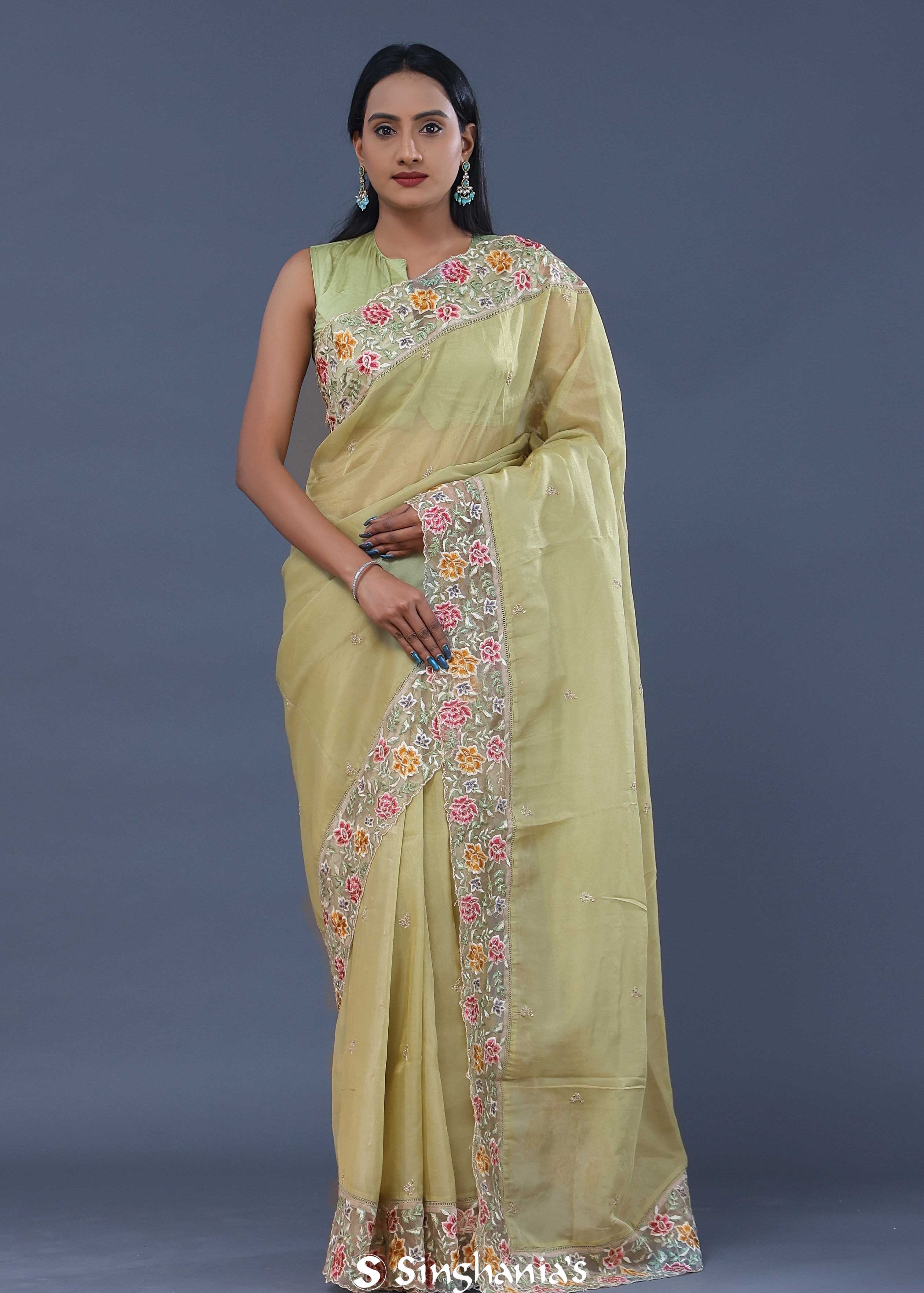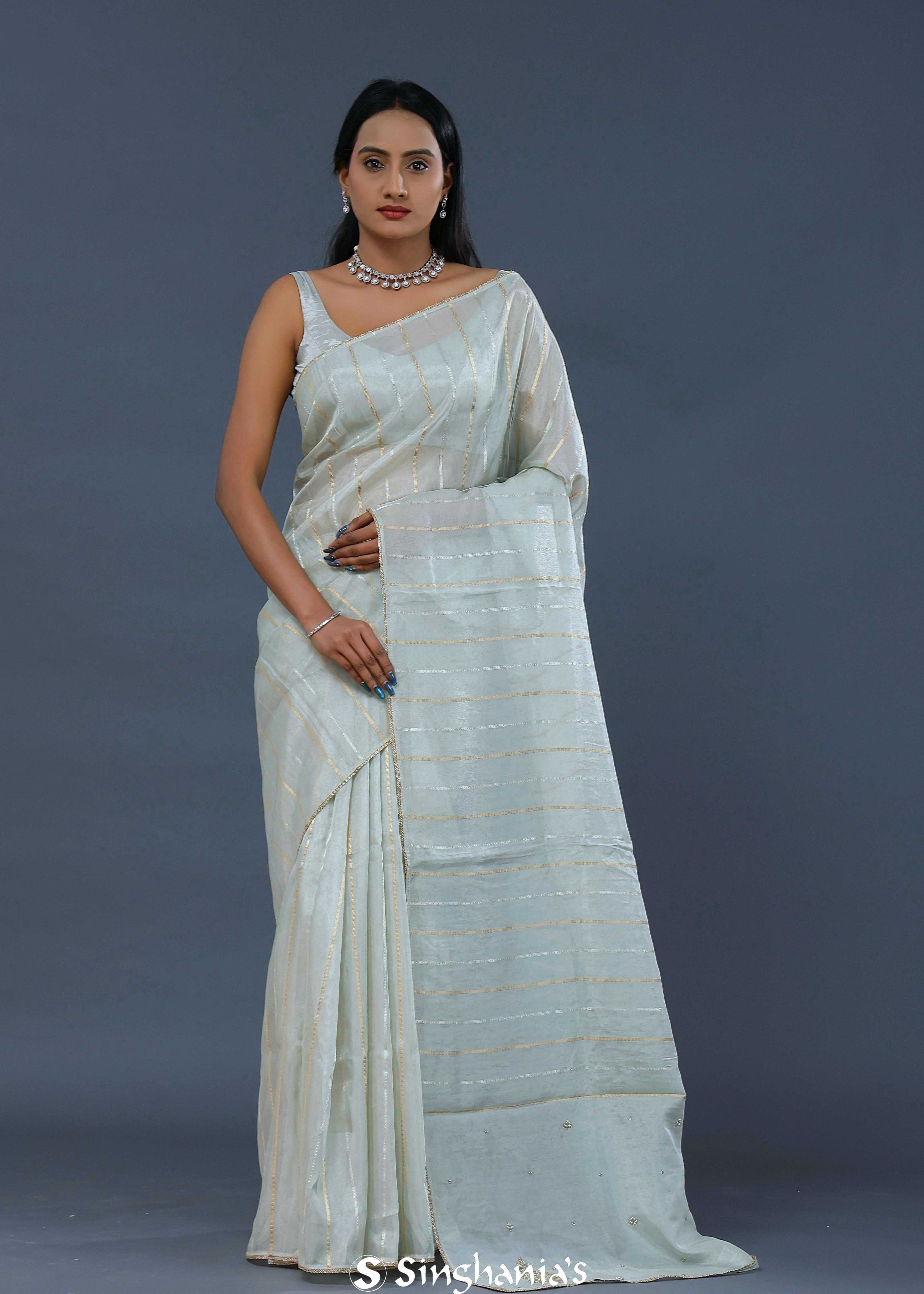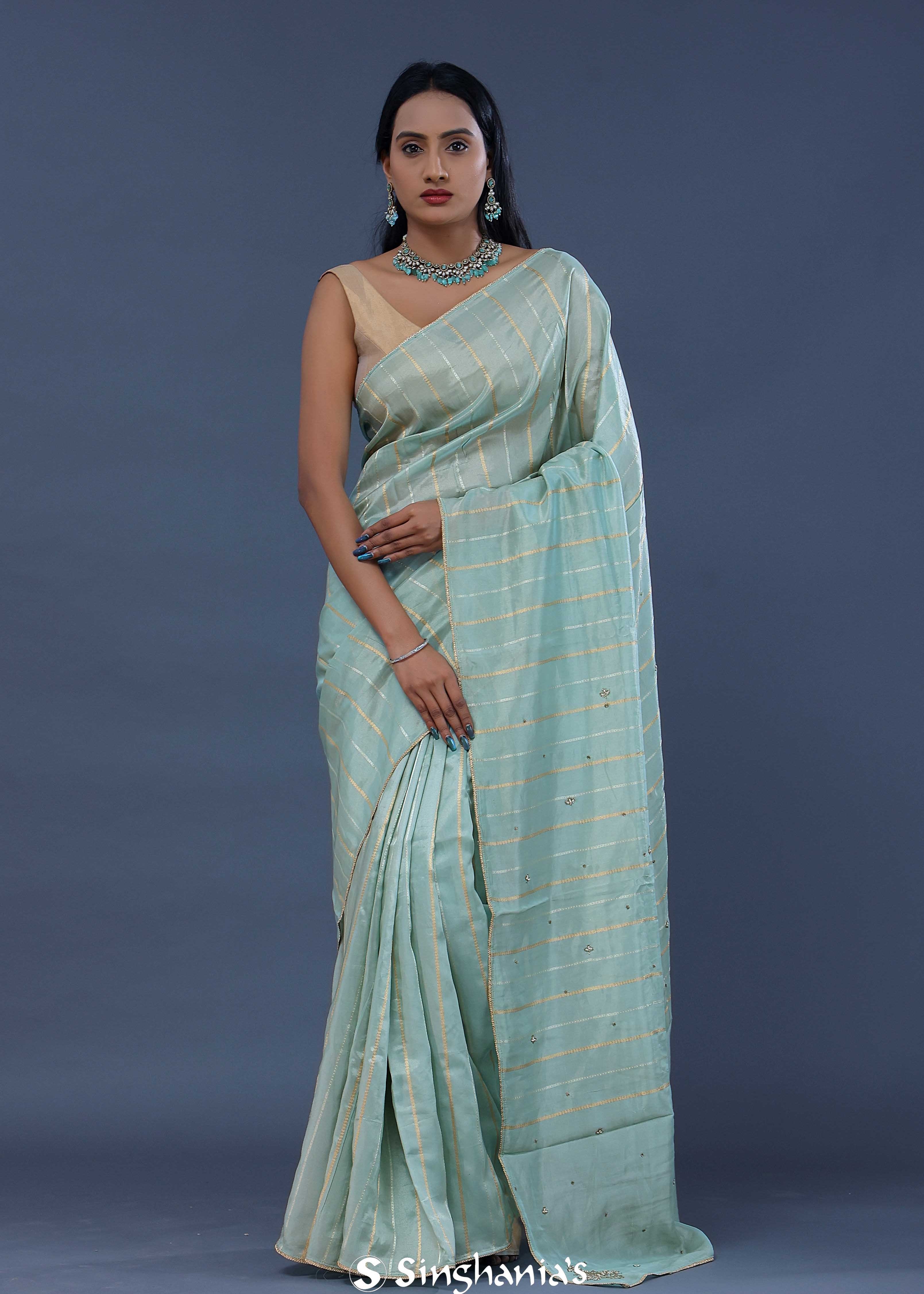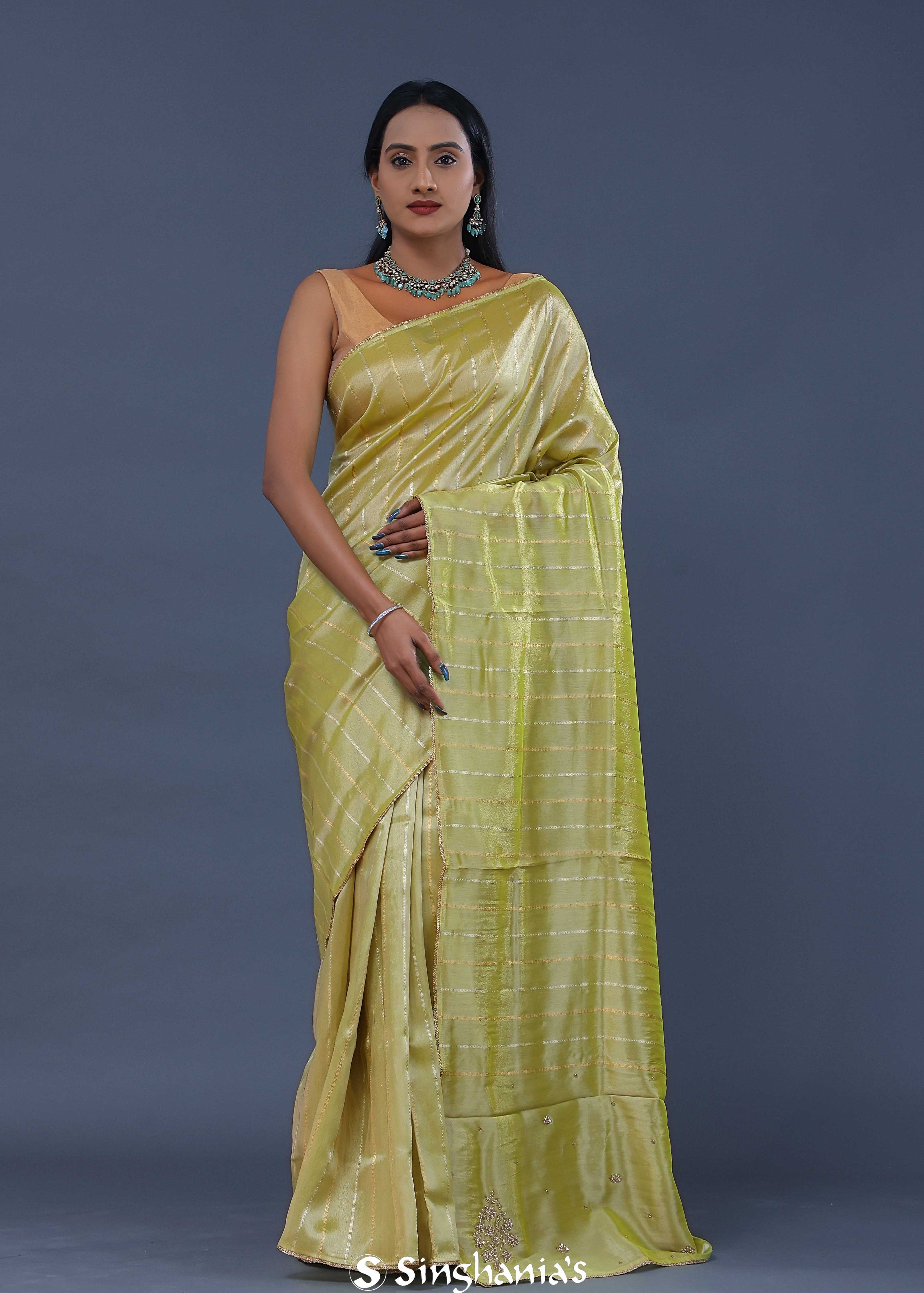 Soft Light Lime Green Organza Tissue Saree With Stripes