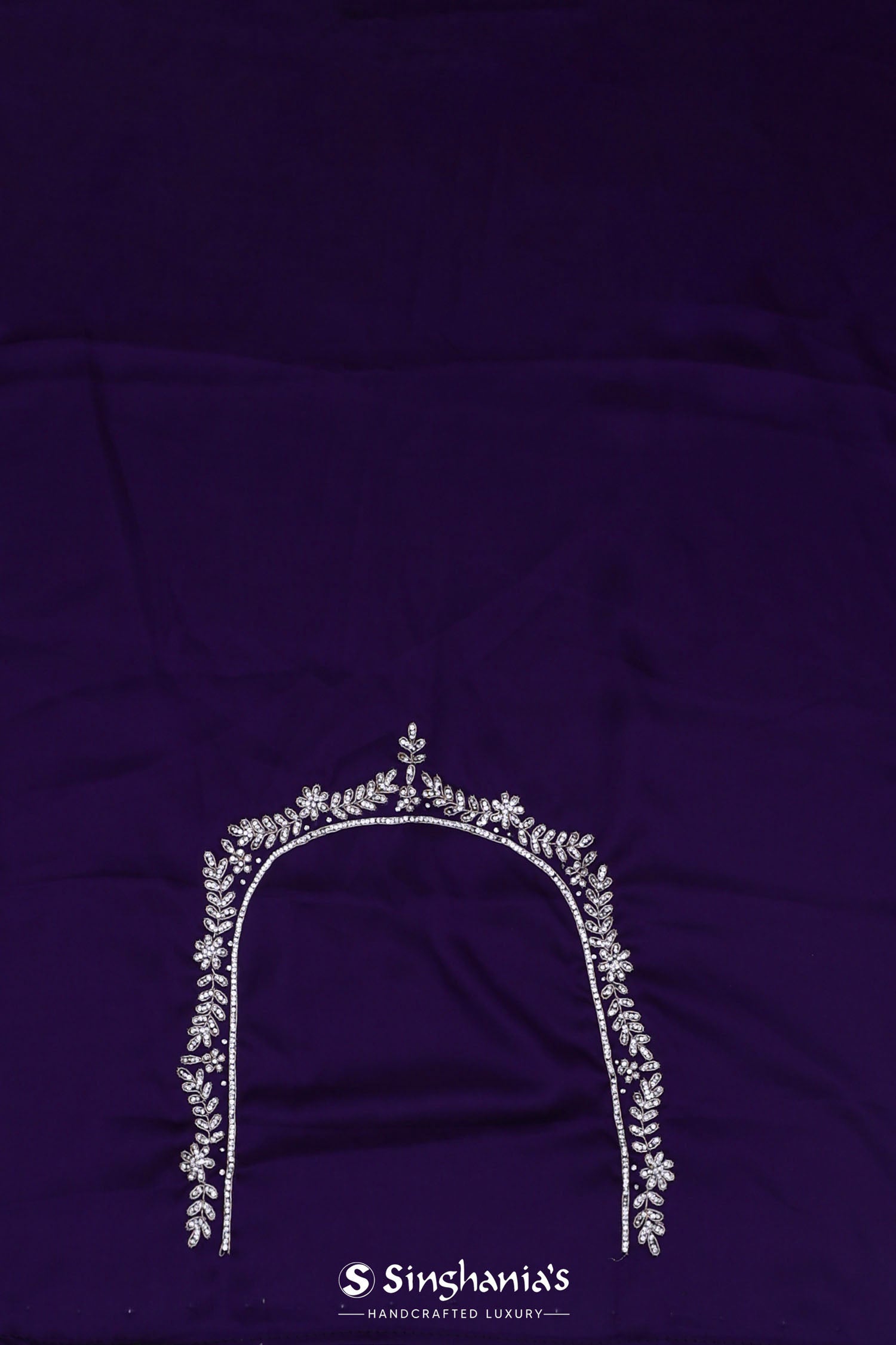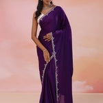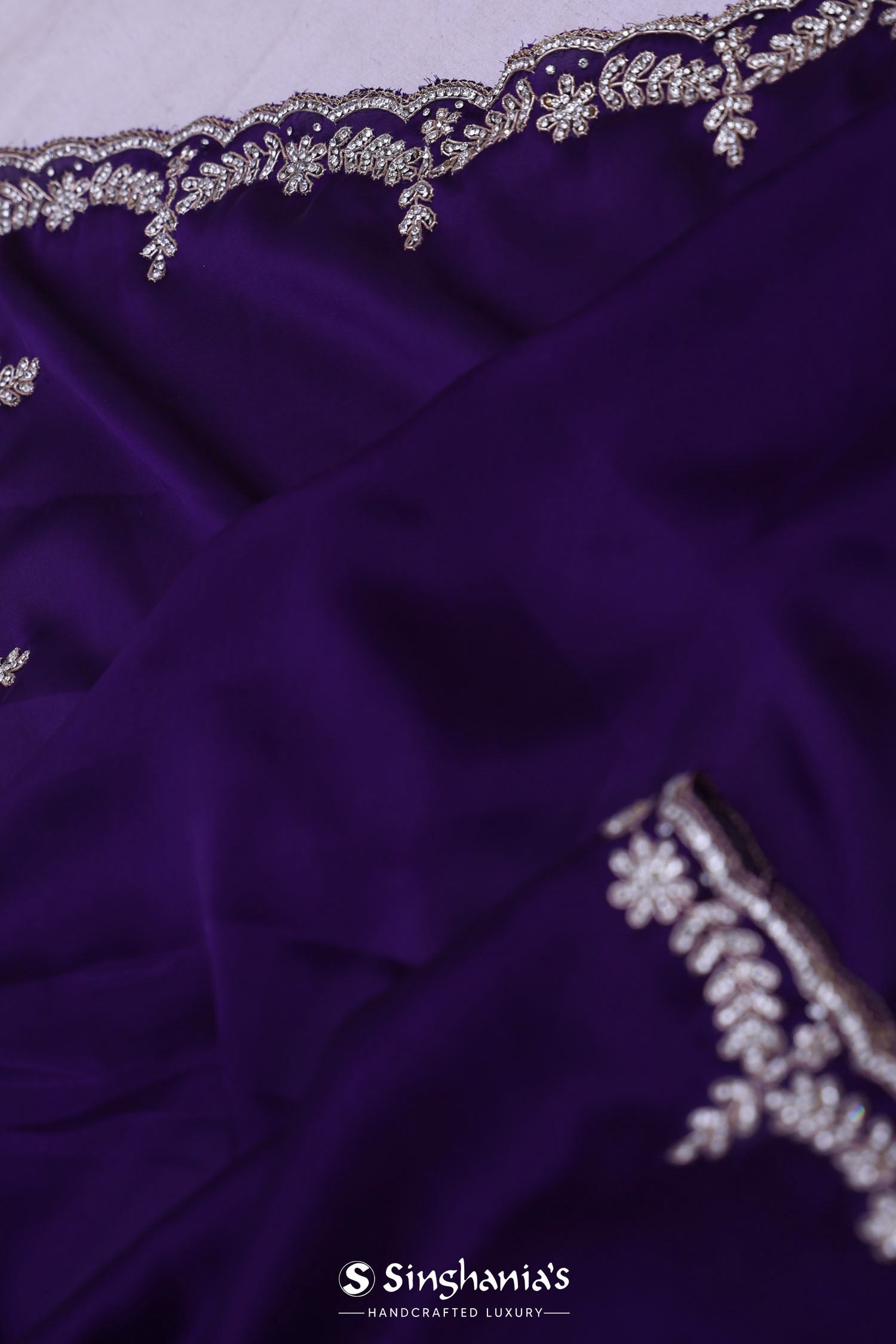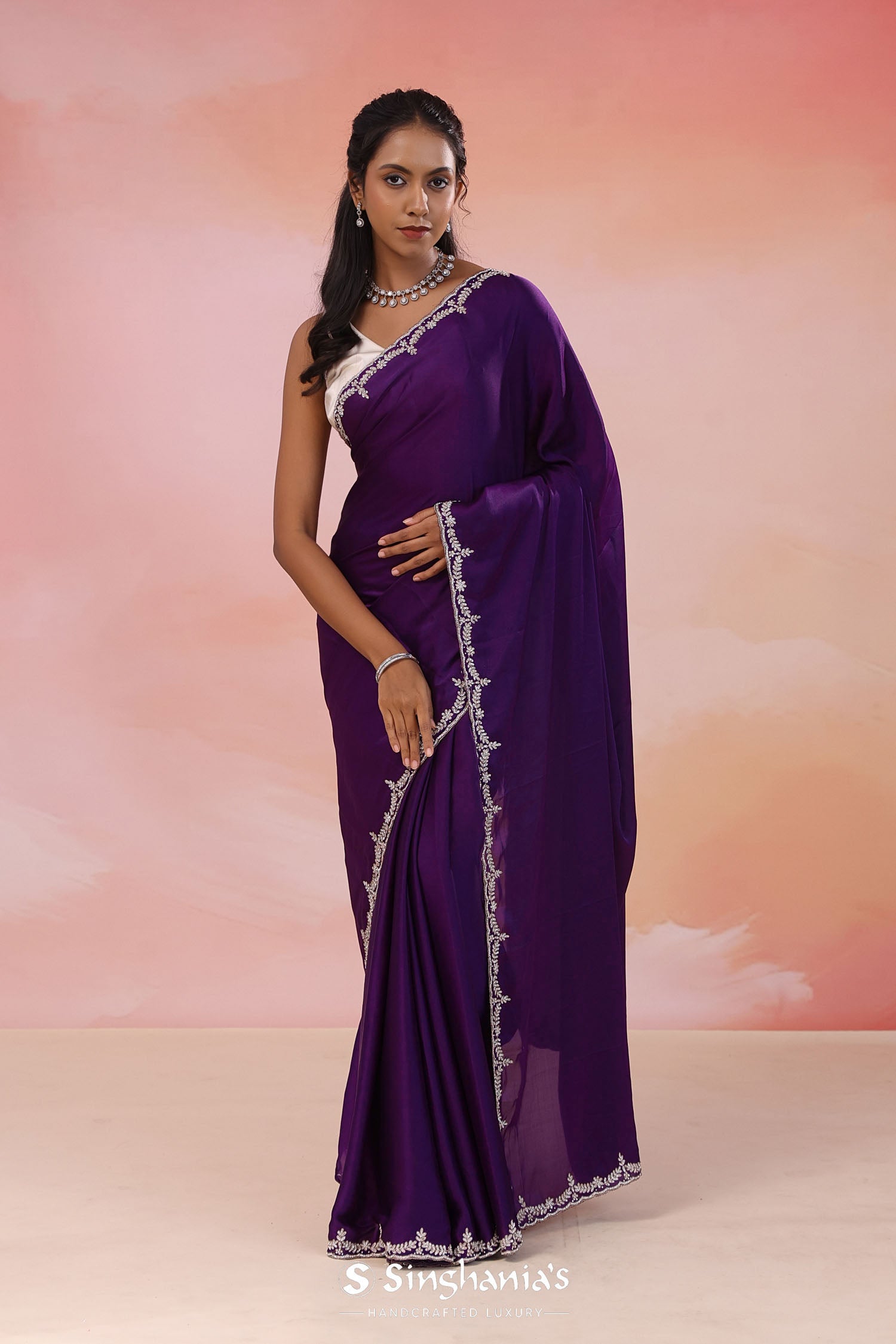The beautiful dark purple crepe saree with stone and work zardosi fancy border along with an unstitched self blouse for a decent and dignified look.