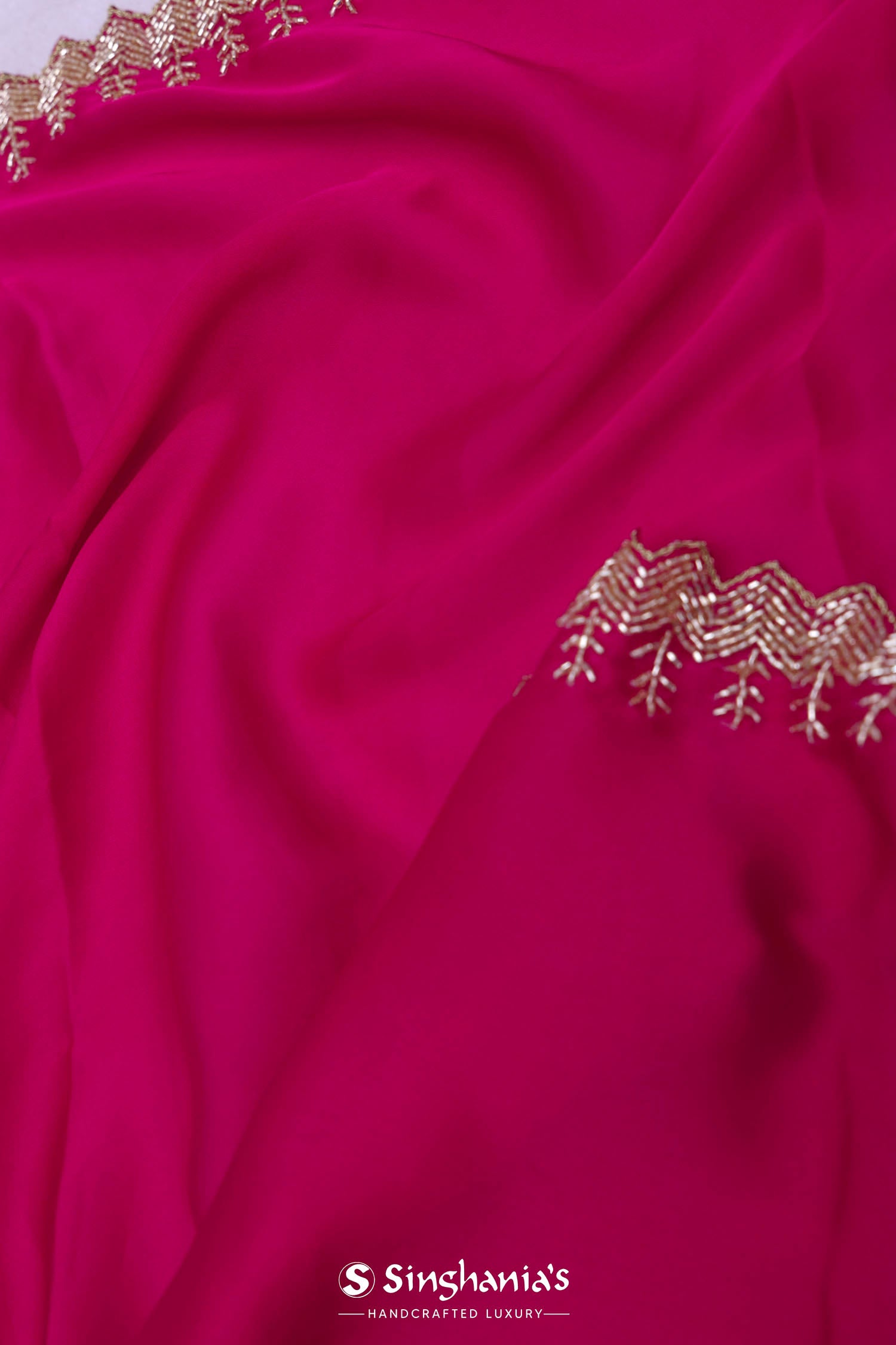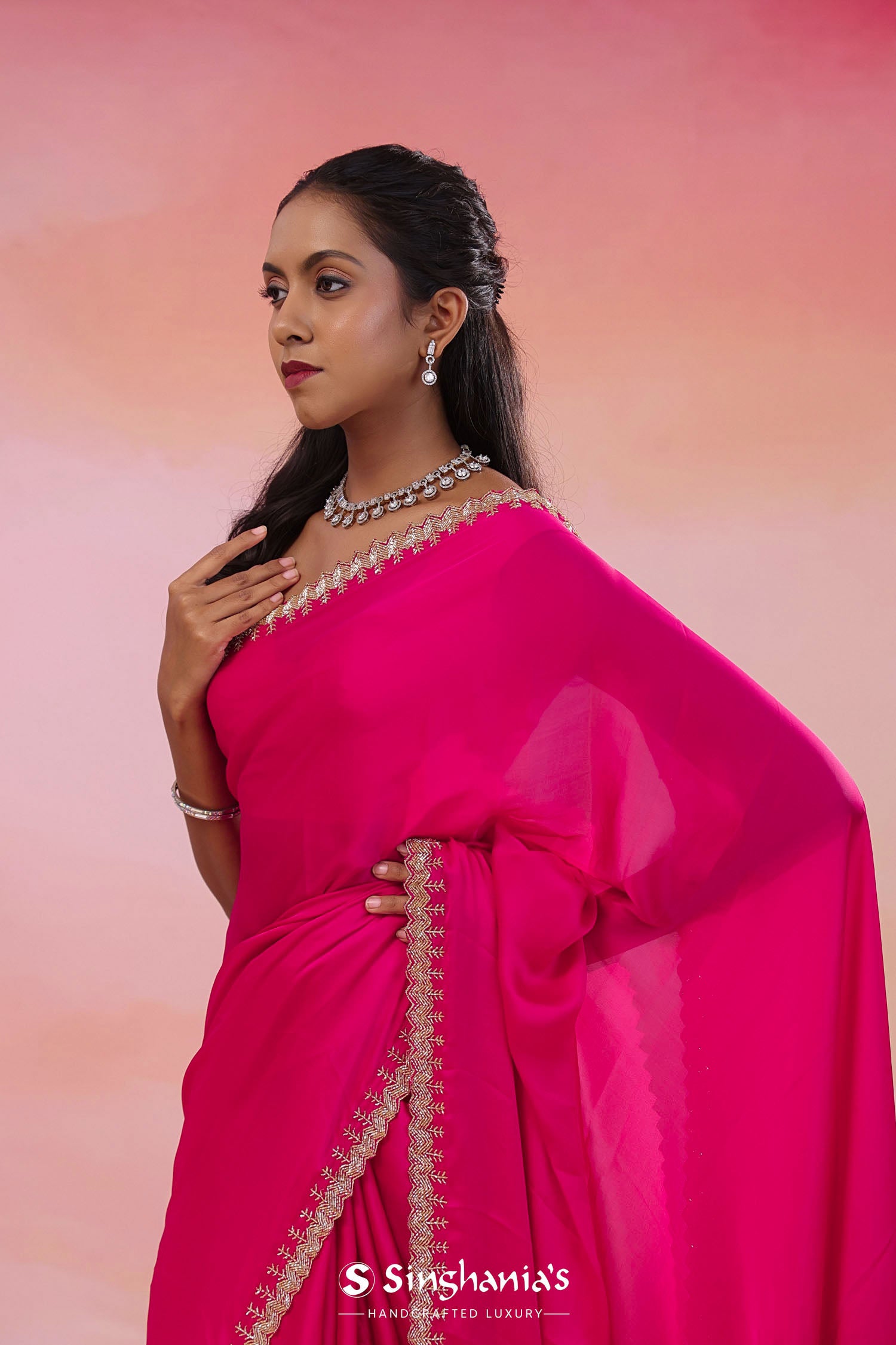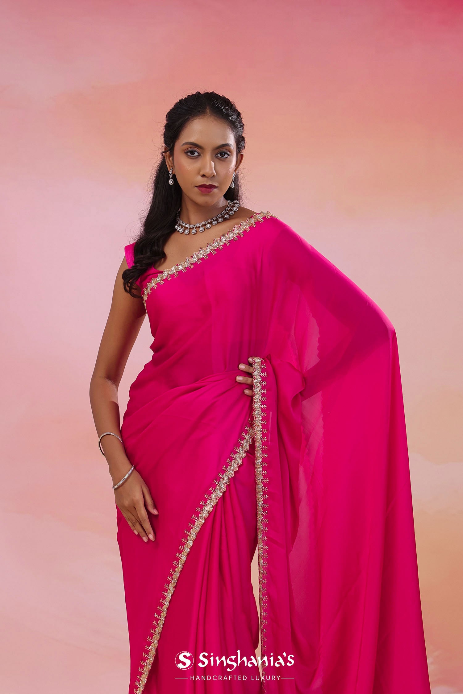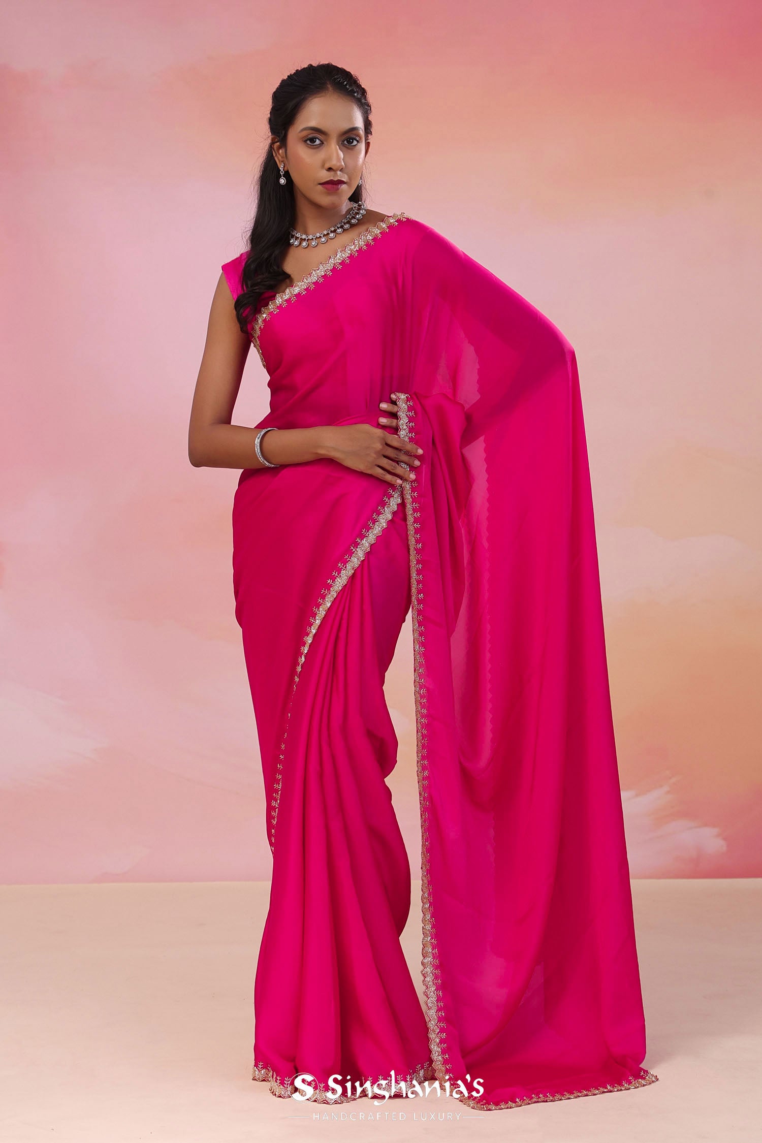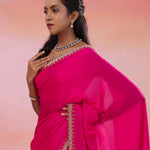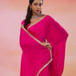 Hot Pink Crepe Saree With Scallop Border