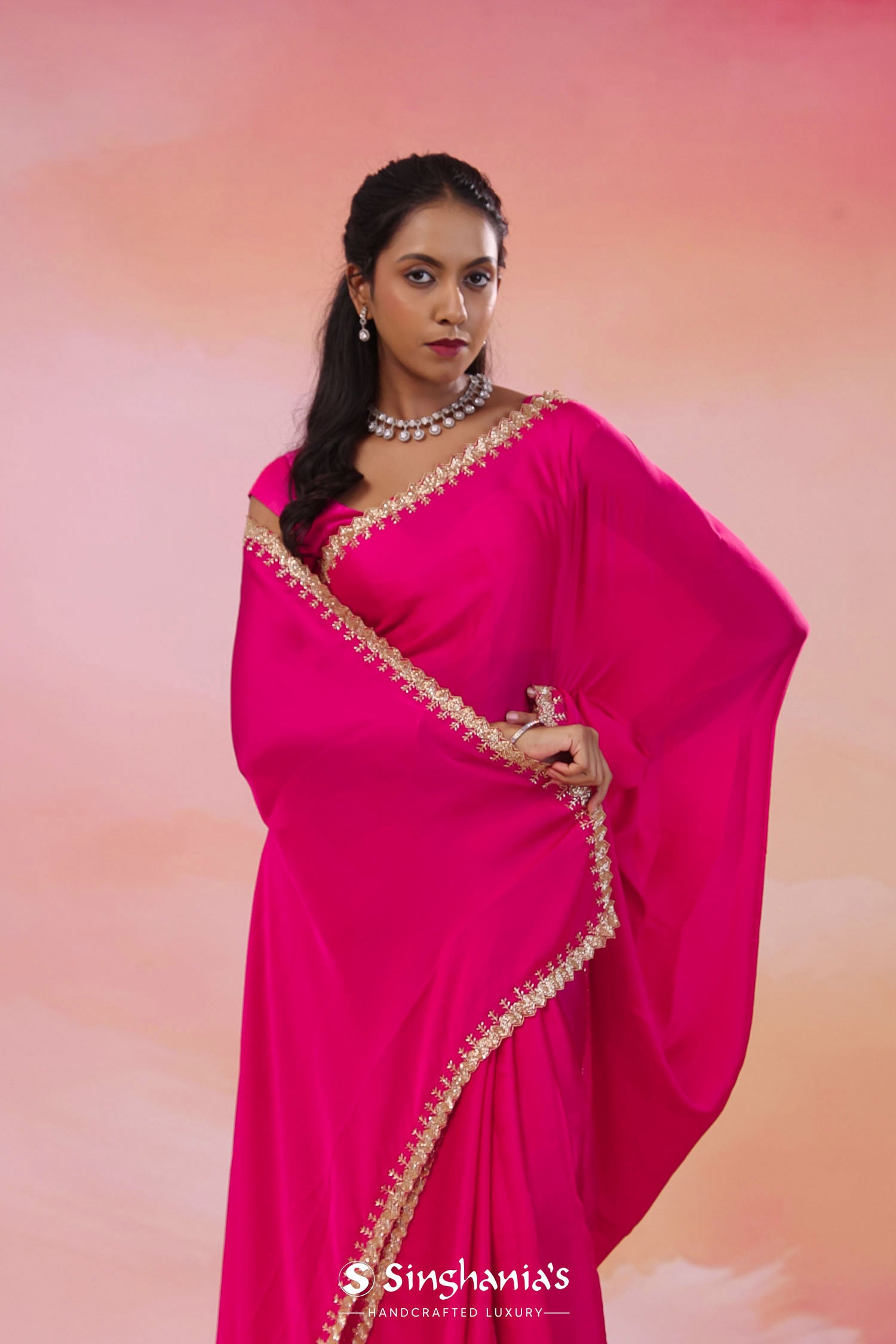 Pair with minimal jewellery and soft makeup to highlight the timeless elegance Singhaniaβs is known for.