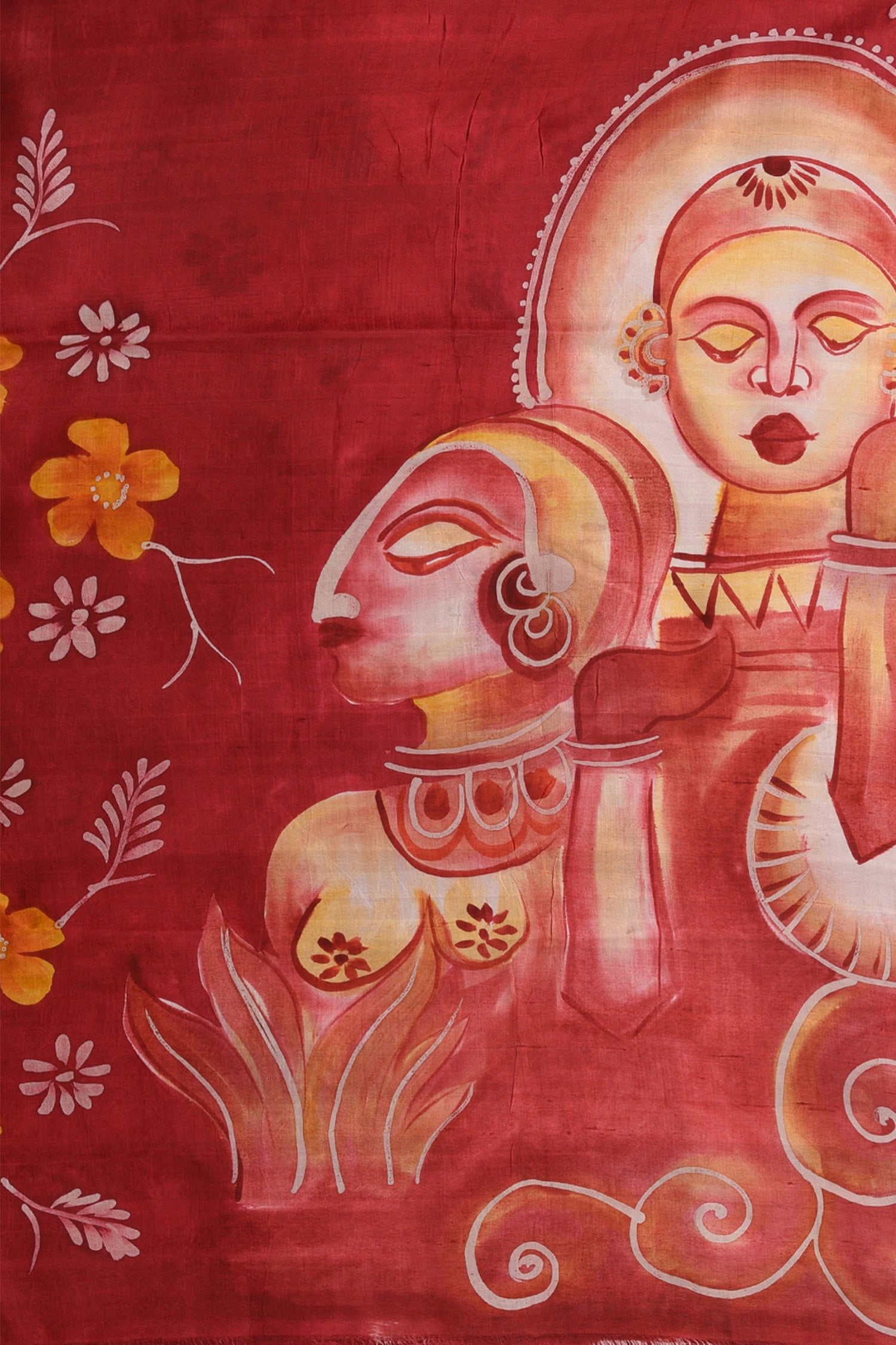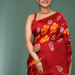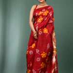 Maroon Pure Silk Saree With Floral Paint