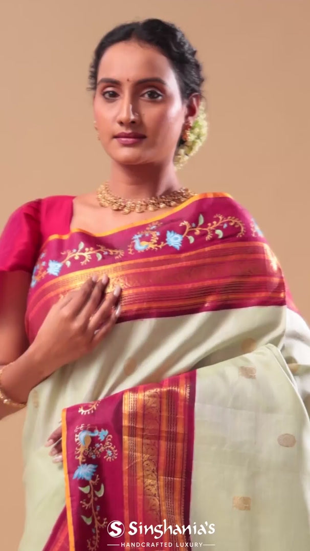Pale Green Kanjivaram Silk Saree With Contrast Border
