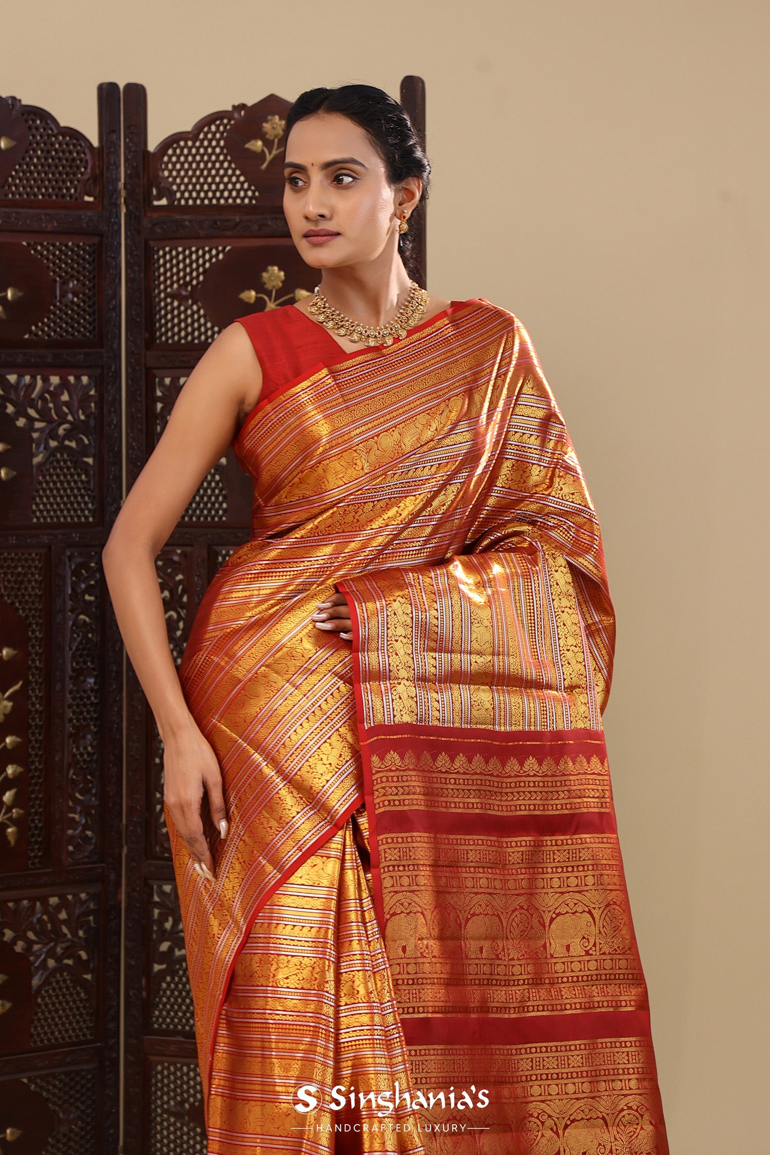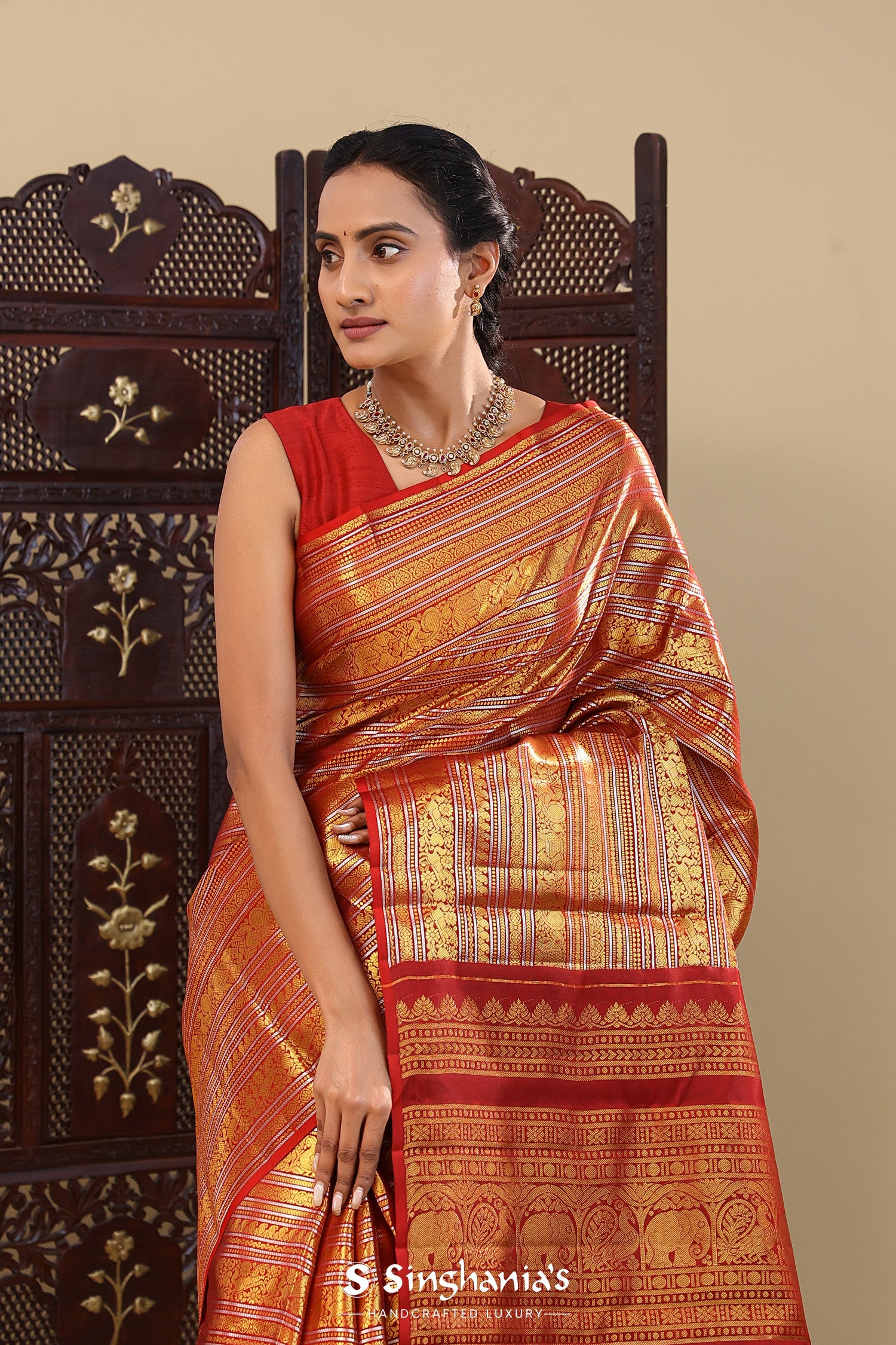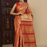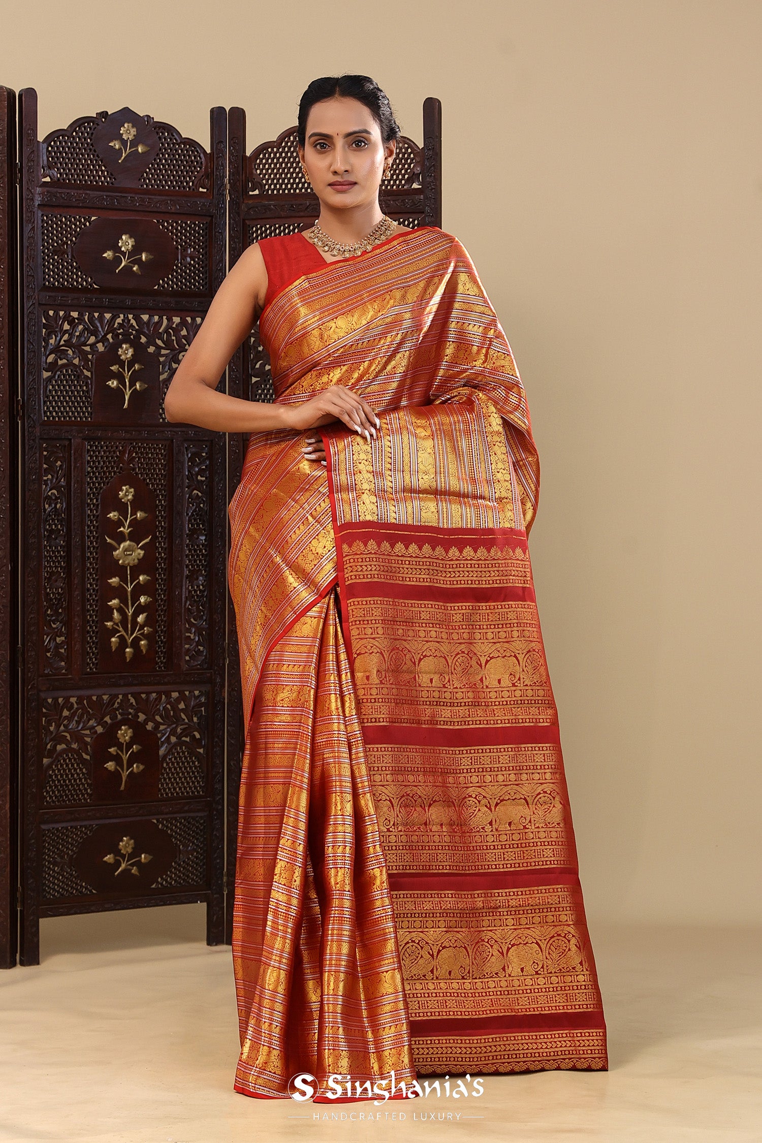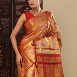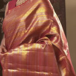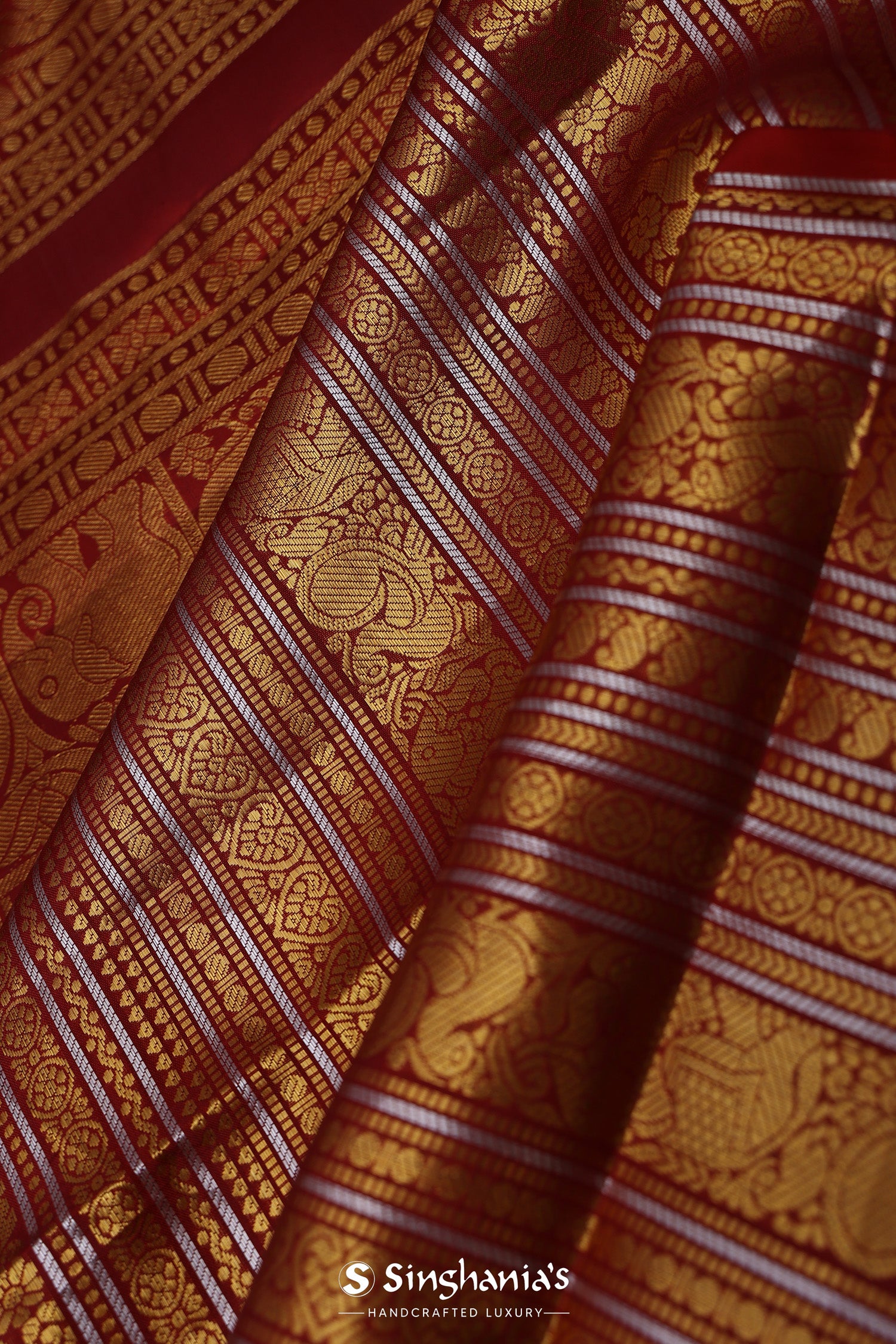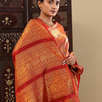 Red Kanjivaram Silk Saree With Horizontal Stripes