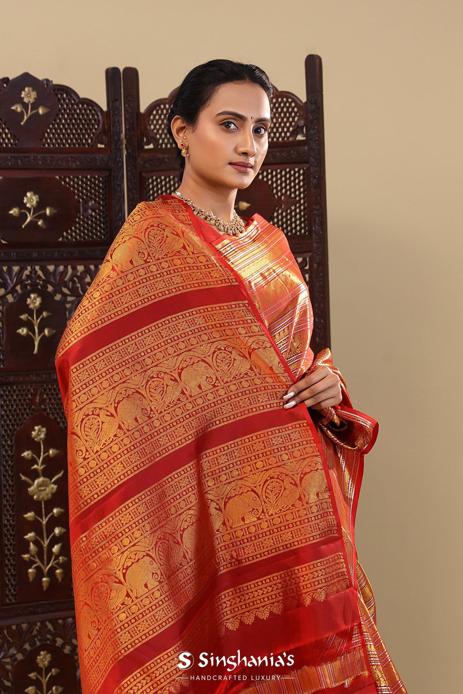 Pair with minimal jewellery and soft makeup to highlight the timeless elegance Singhaniaβs is known for.