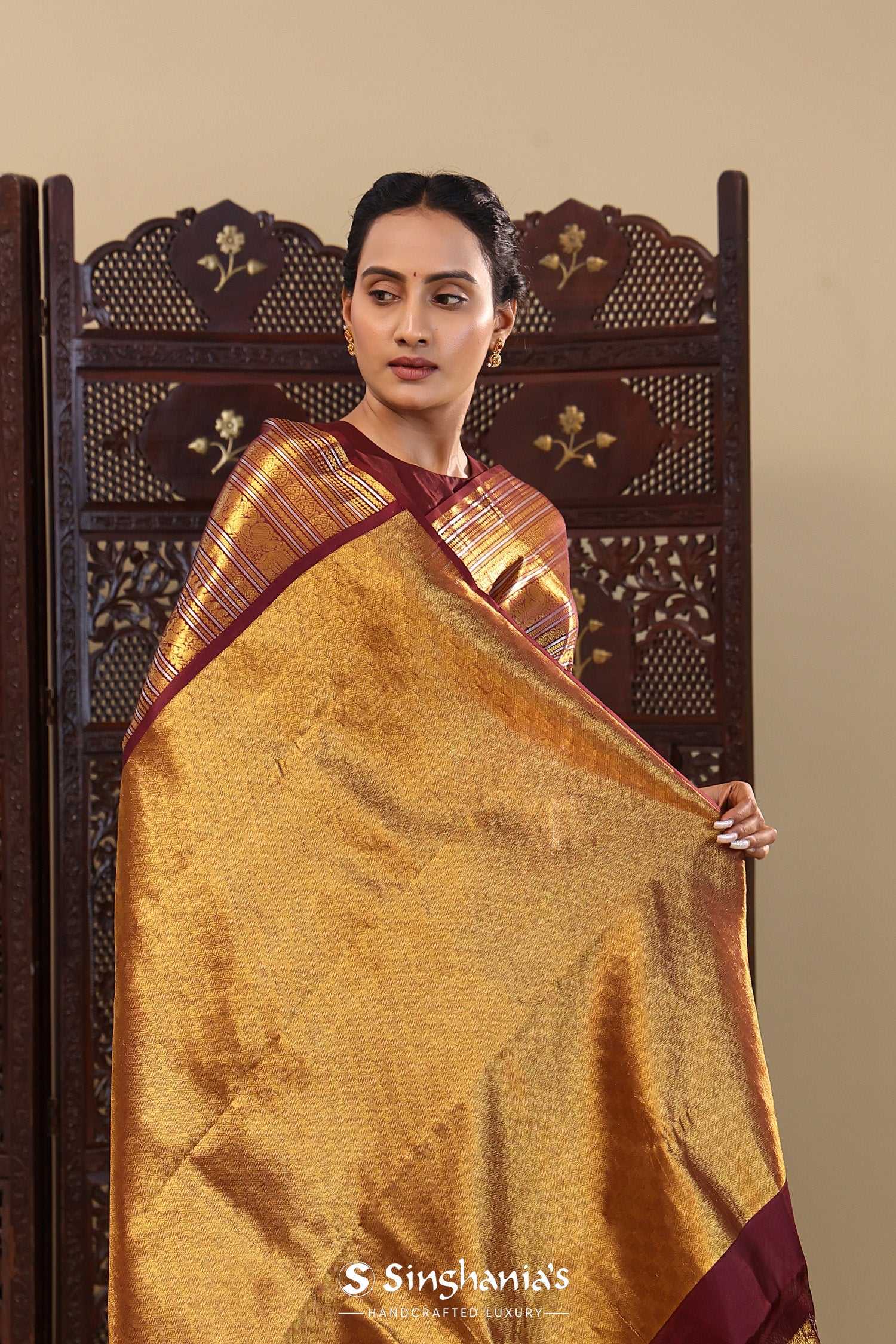 Pair with minimal jewellery and soft makeup to highlight the timeless elegance Singhaniaβs is known for.