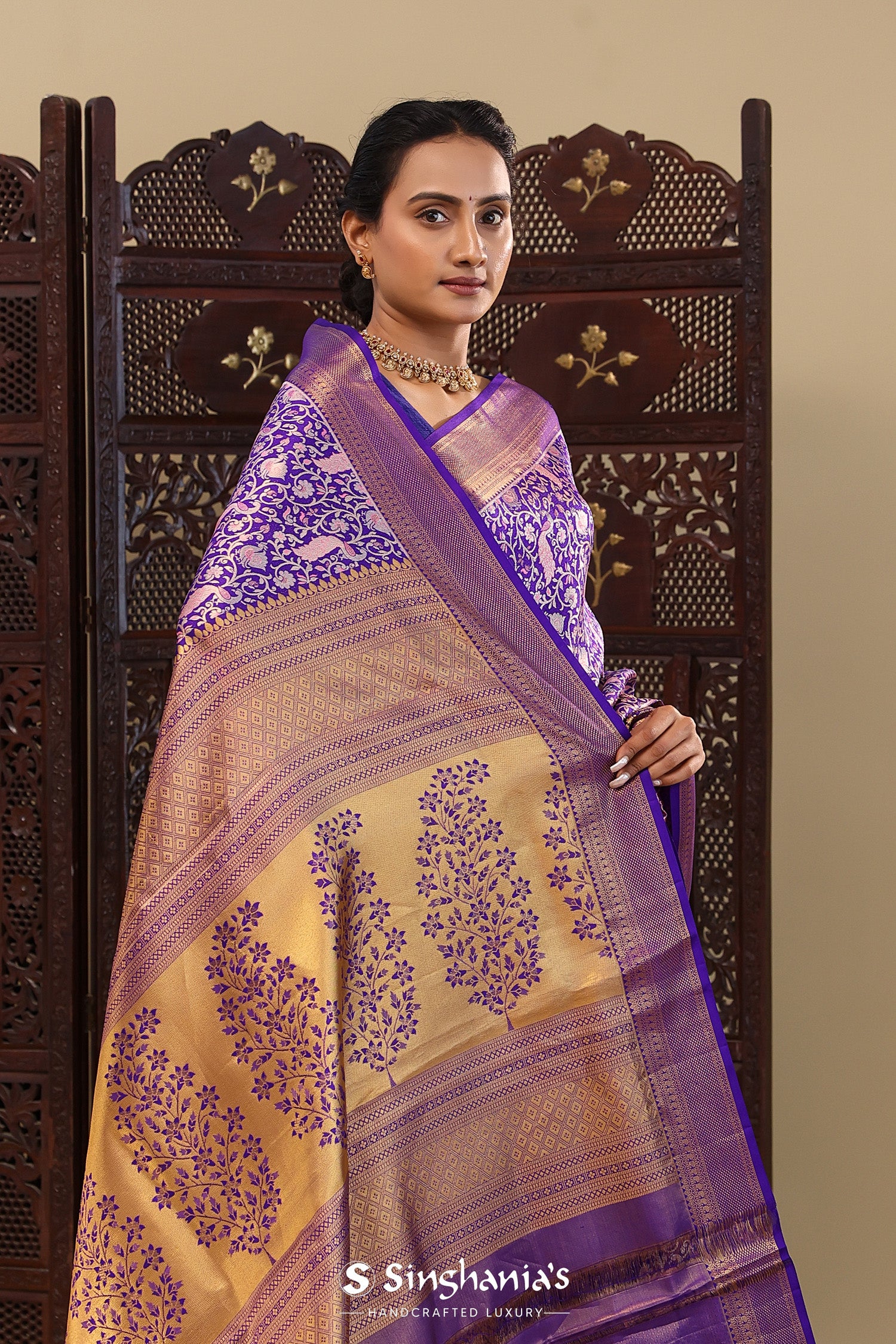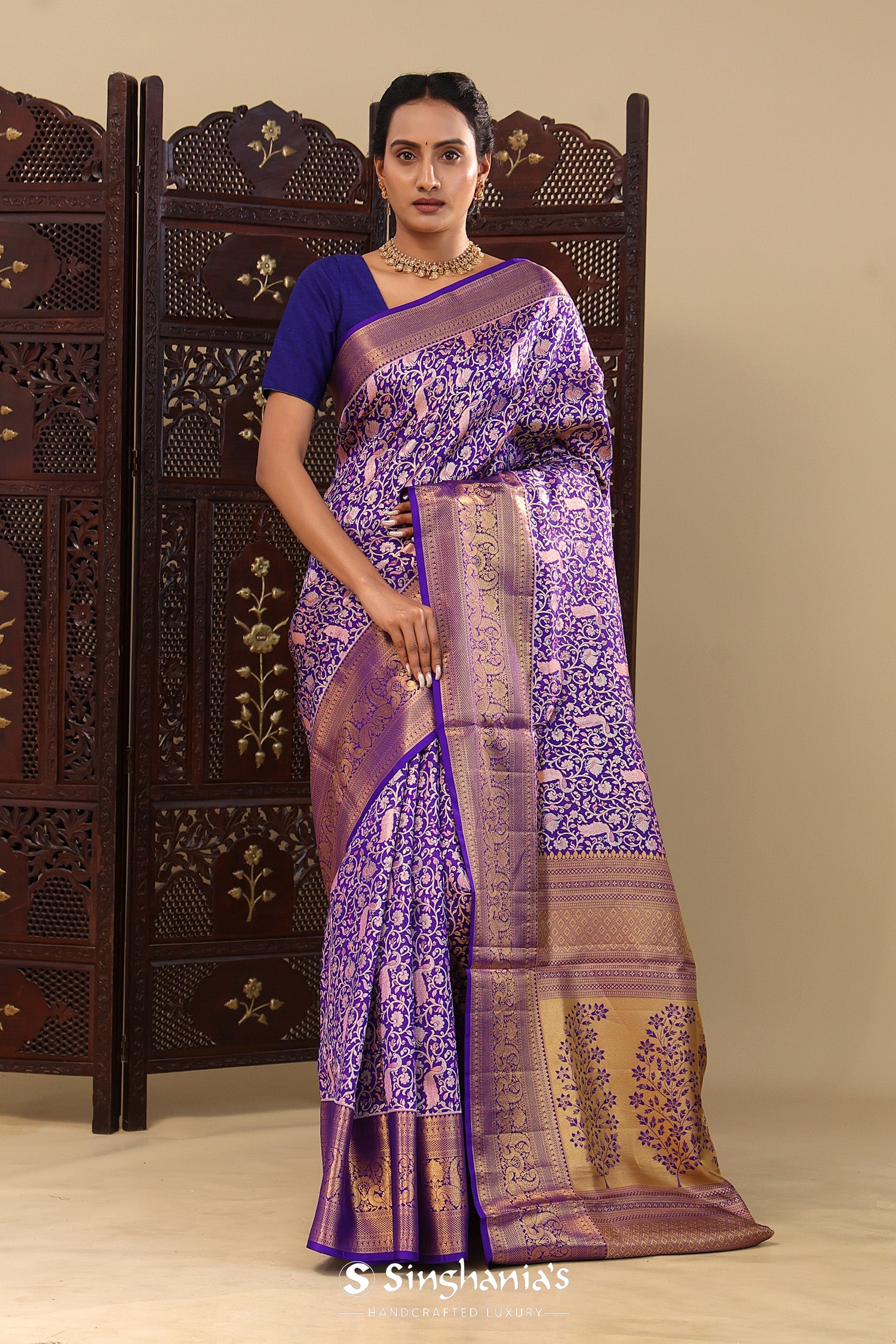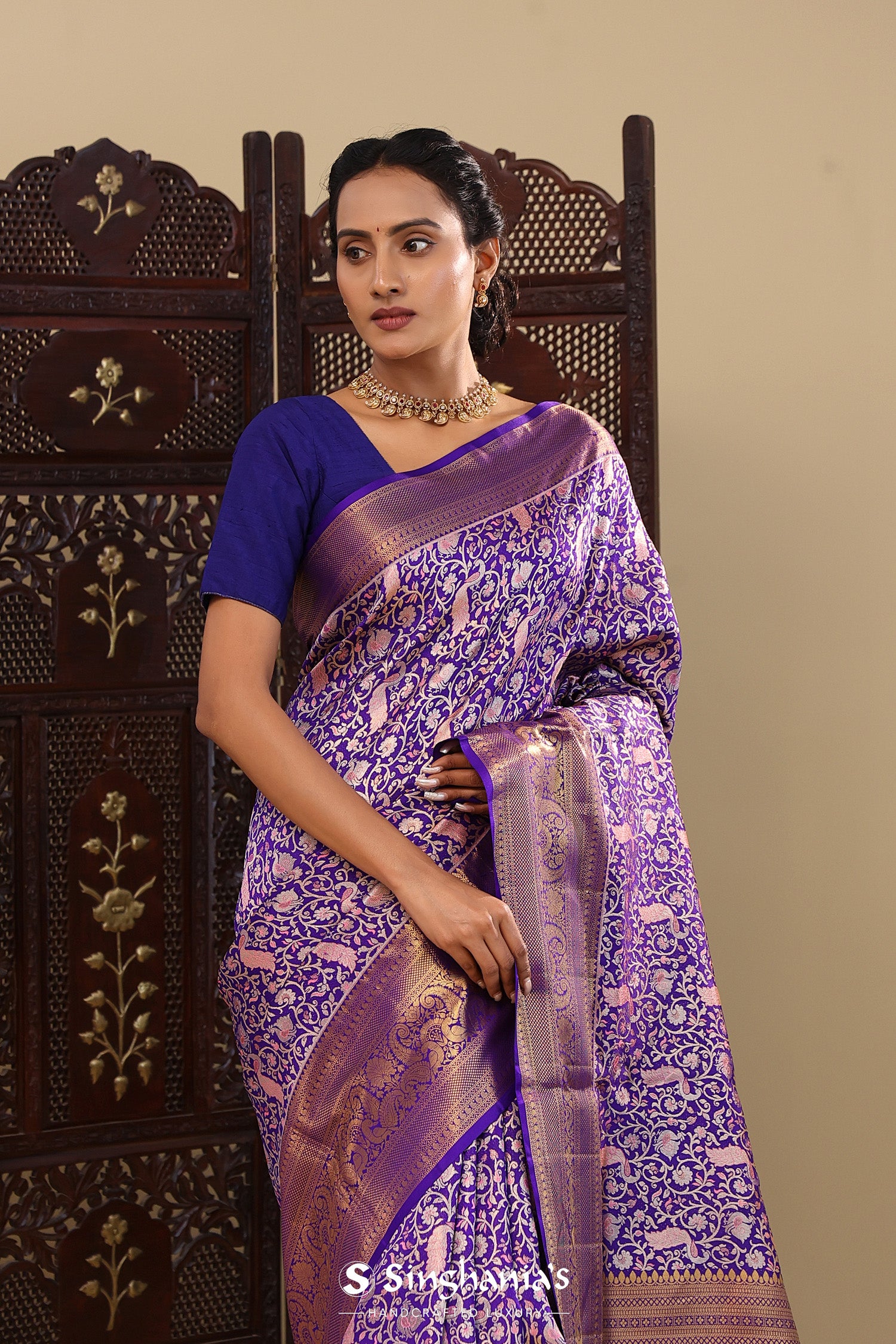 Pair with minimal jewellery and soft makeup to highlight the timeless elegance Singhaniaβs is known for.