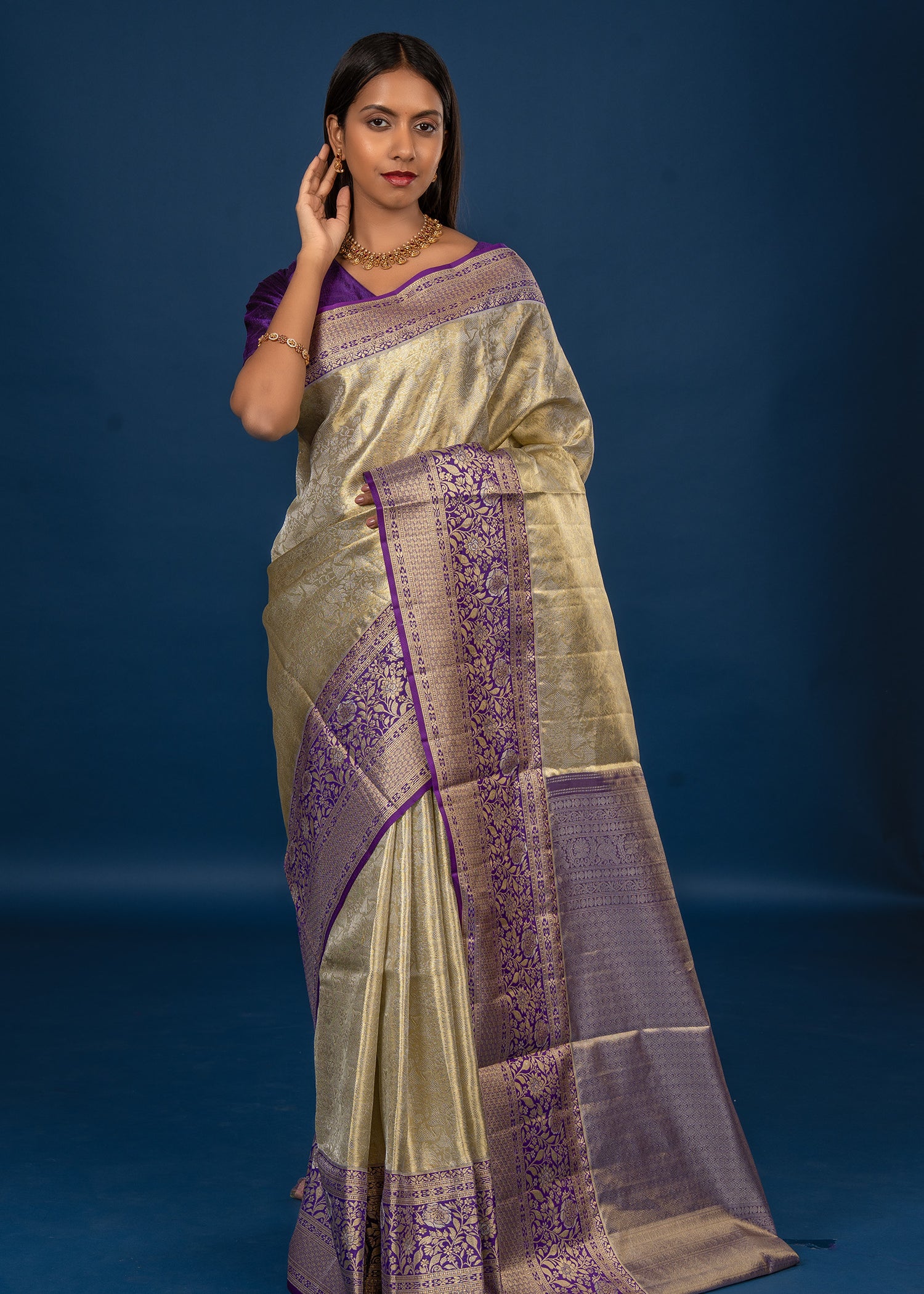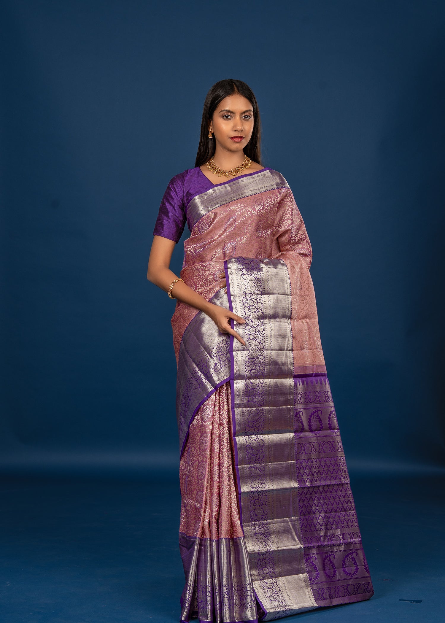Dark Purple Floral Kanjivaram Silk Saree