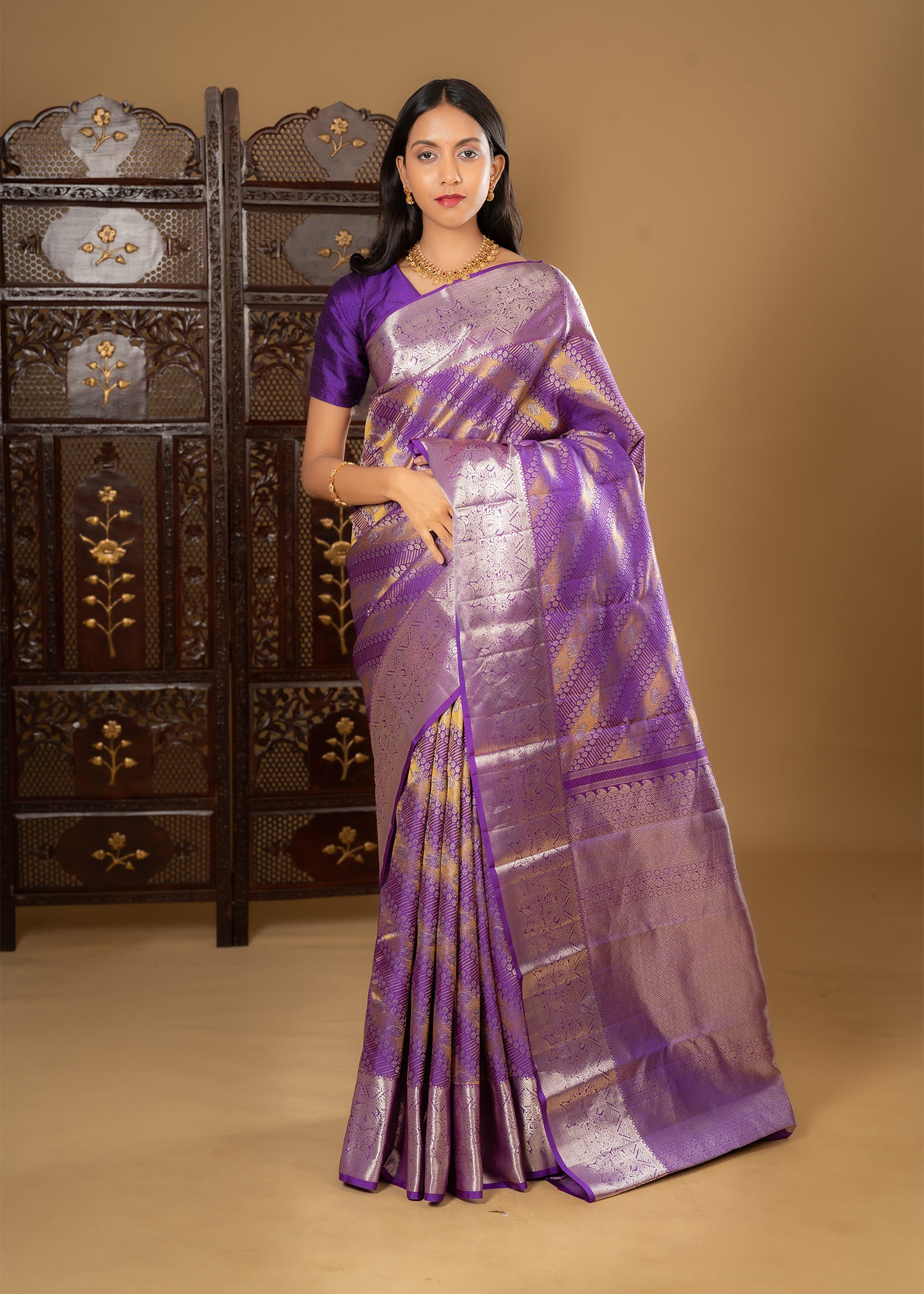 Purple Floral Kanjivaram Silk Saree