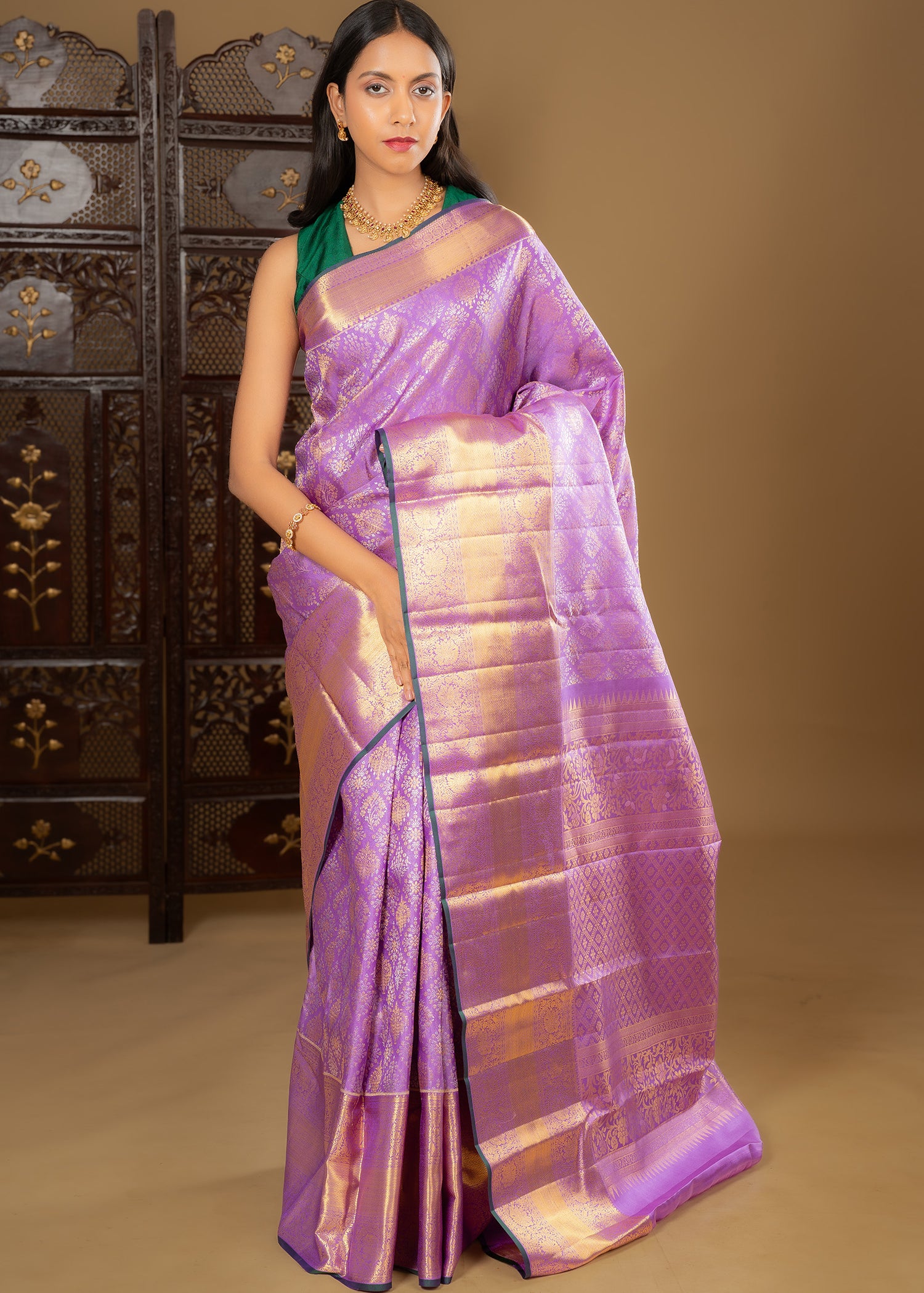 Light Purple Floral Kanjivaram Silk Saree