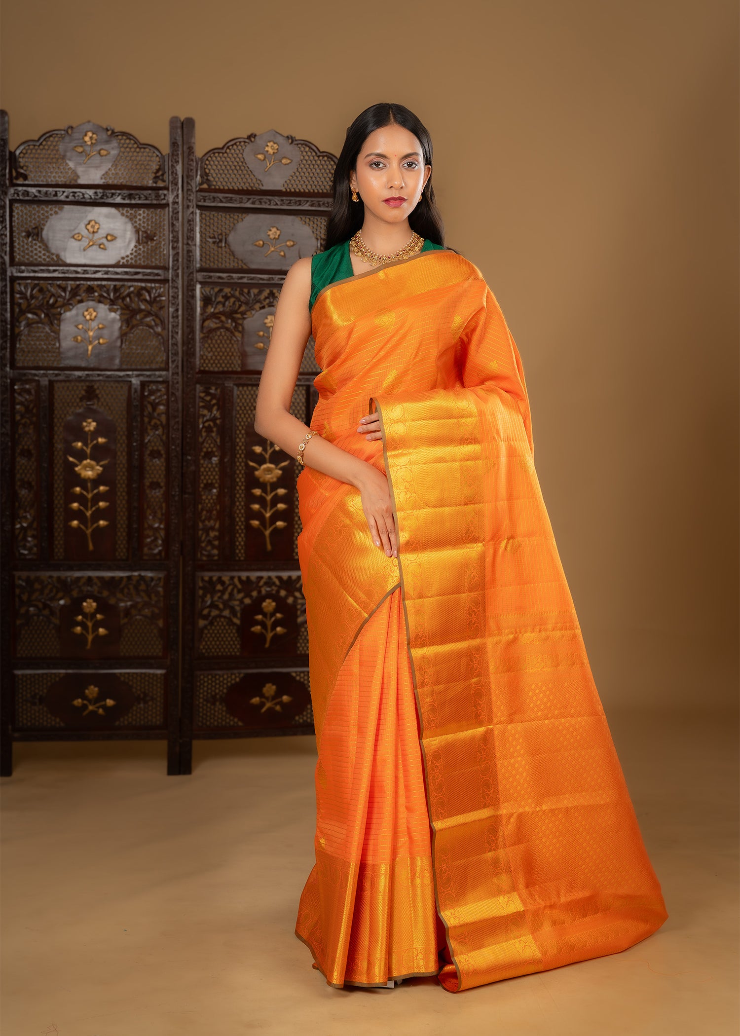 Classic Bright Orange Kanjivaram Silk Saree