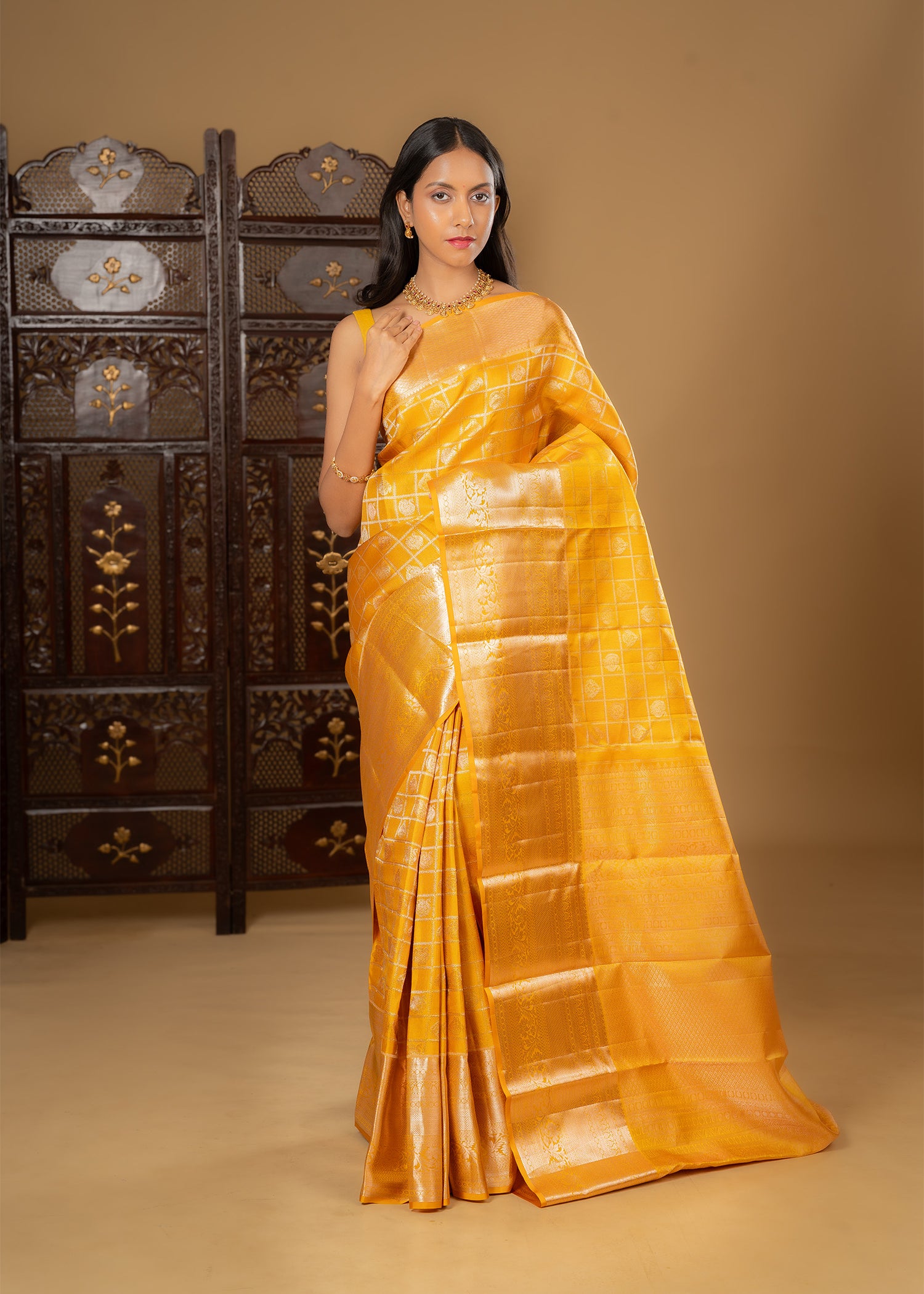 Bright Turmeric Yellow Kanjivaram Silk Saree