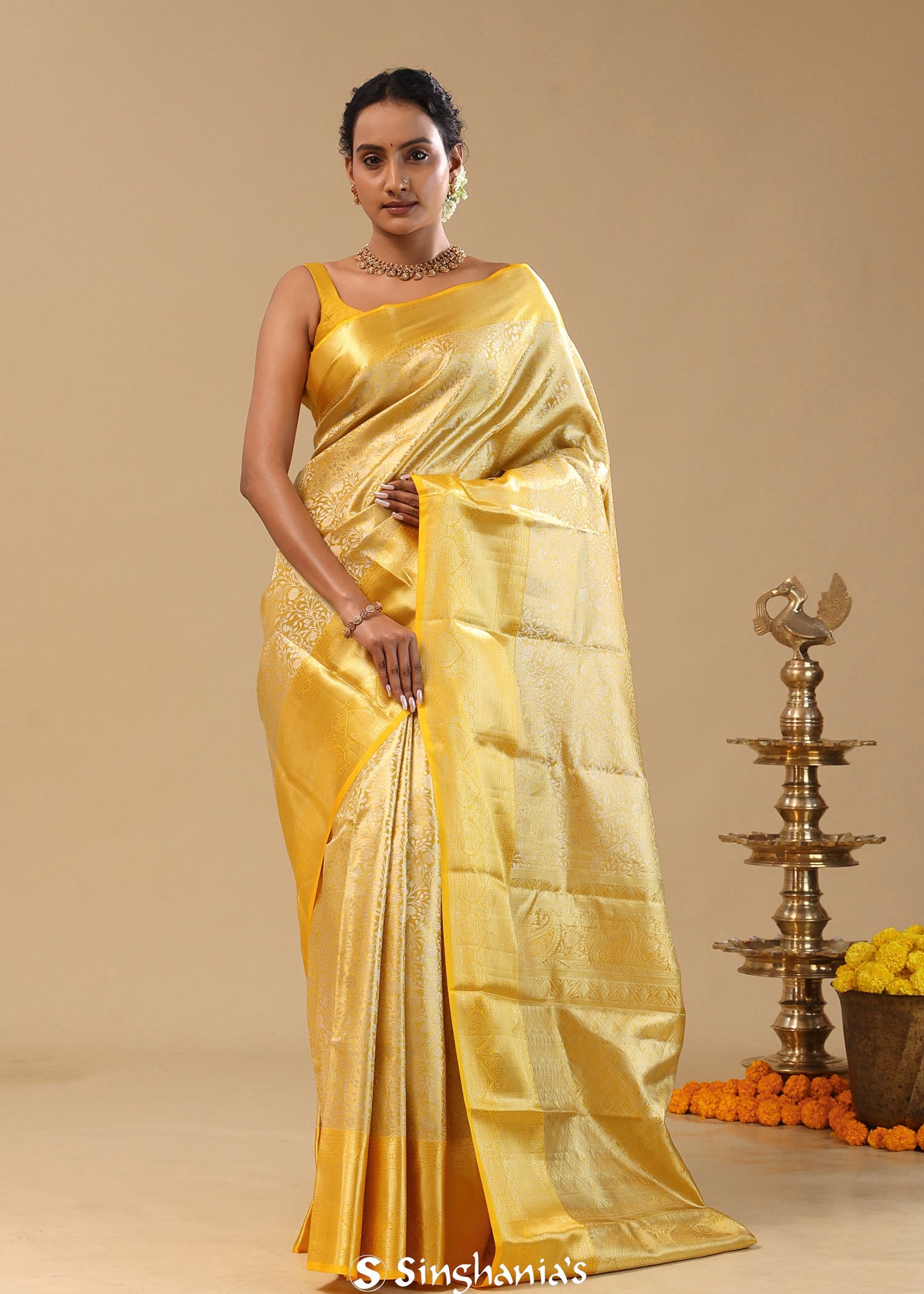 Golden Kanjivaram Tissue Saree With Designer Border
