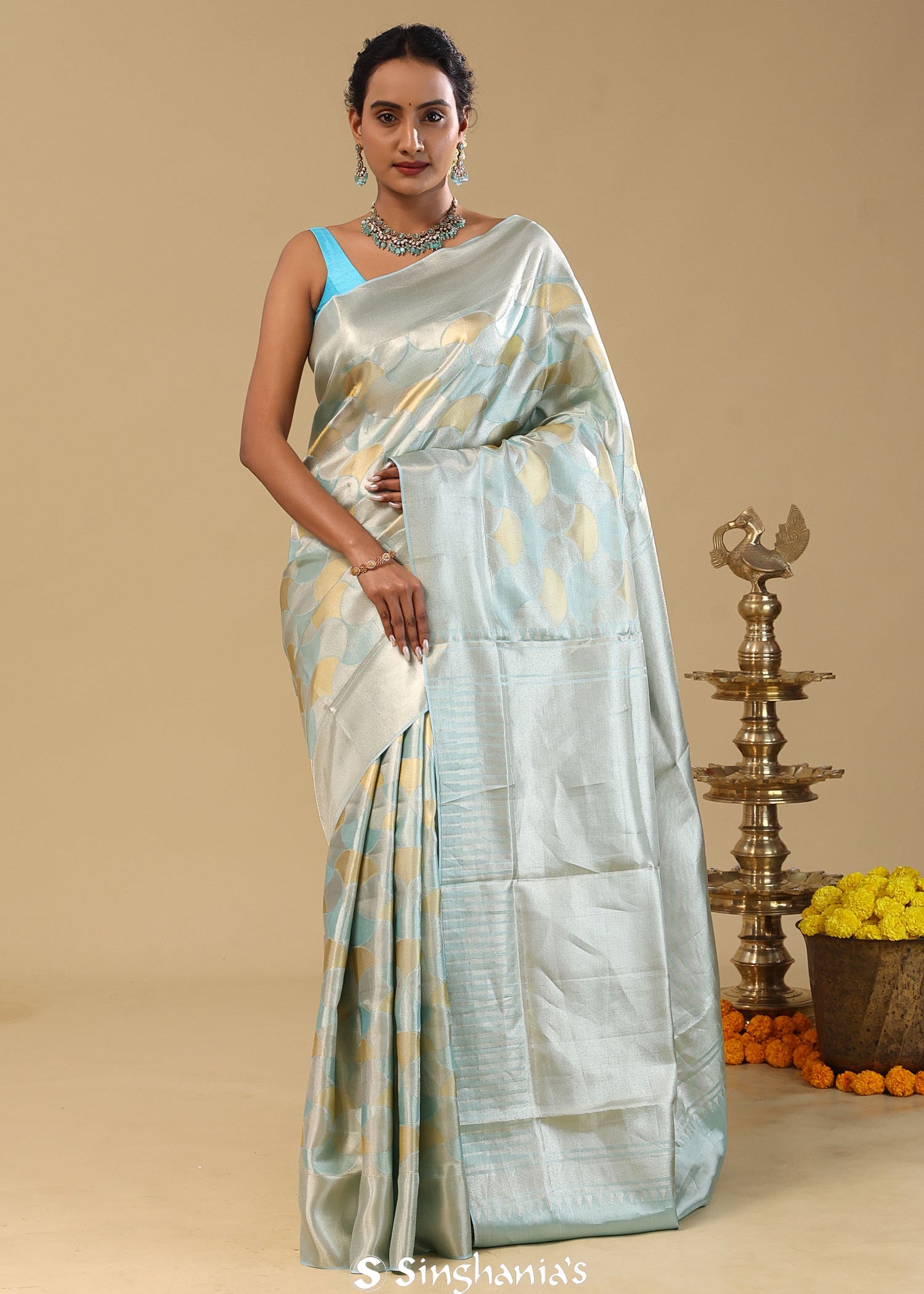 Sky Blue Kanjivaram Tissue Saree With Meenakari Design