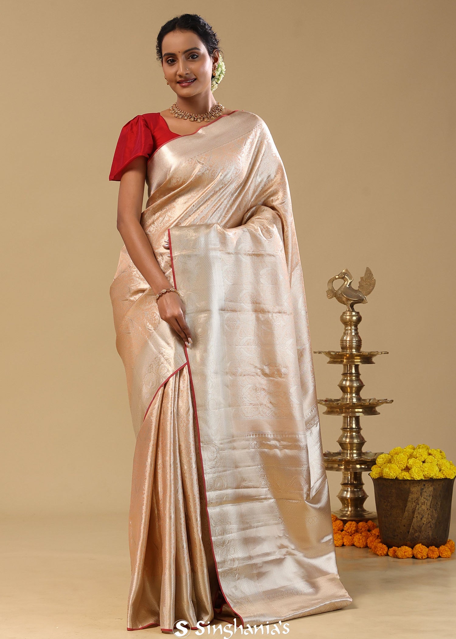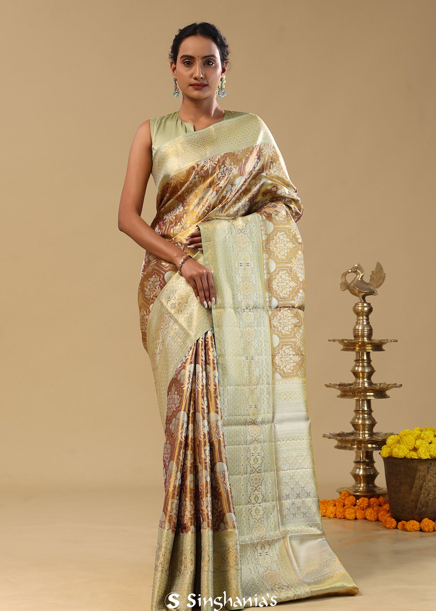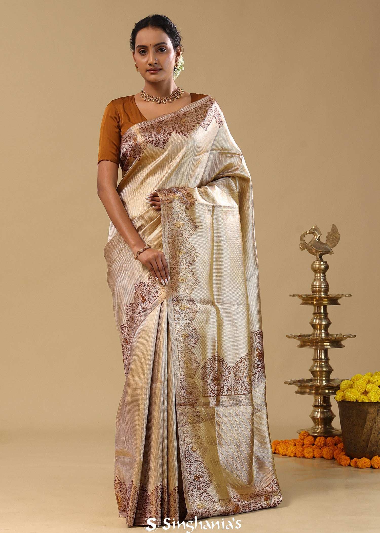 Light Brown Kanjivaram Tissue Saree