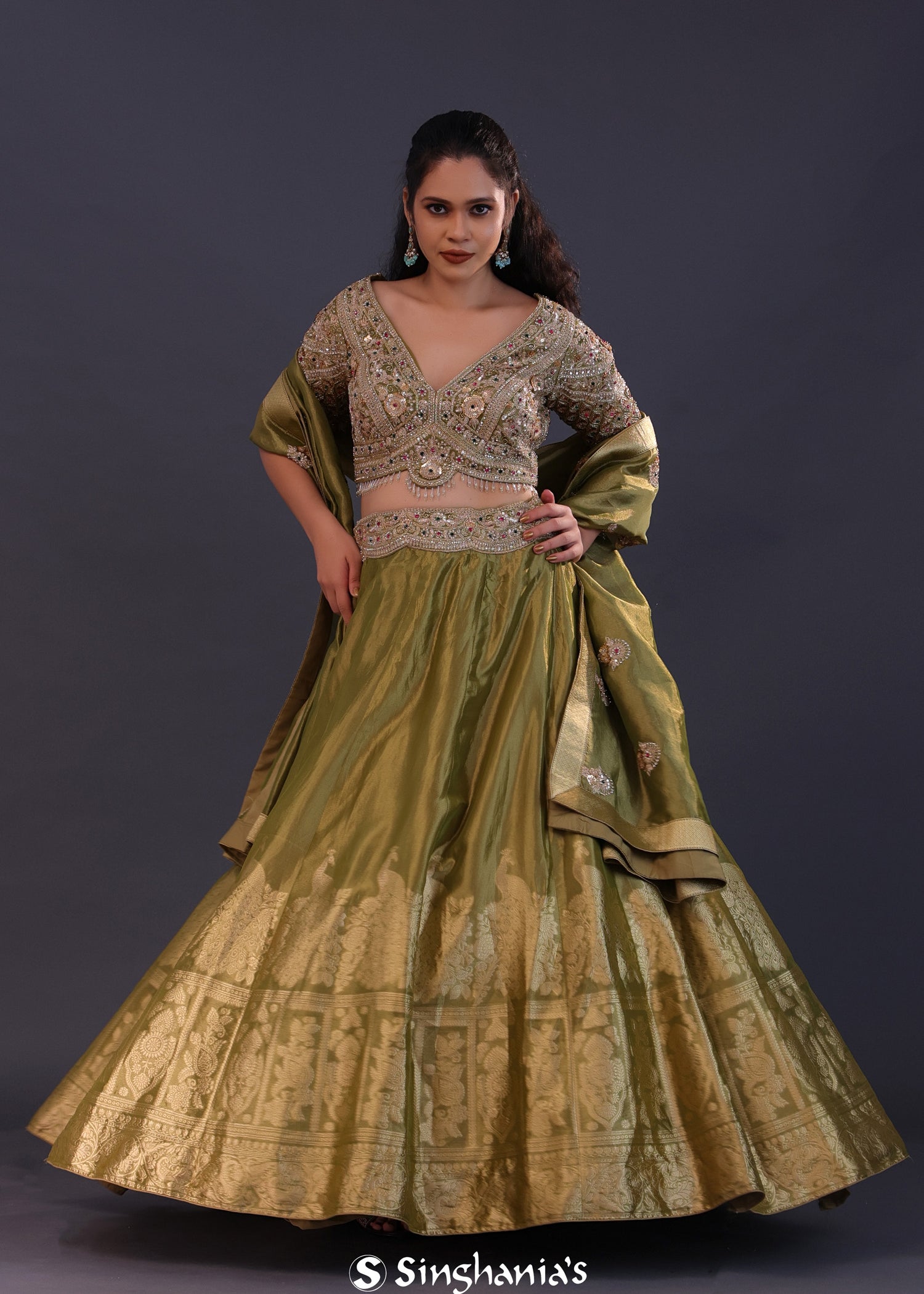 Mehendi Green Tissue Banarasi Embroidered Lehenga Set
