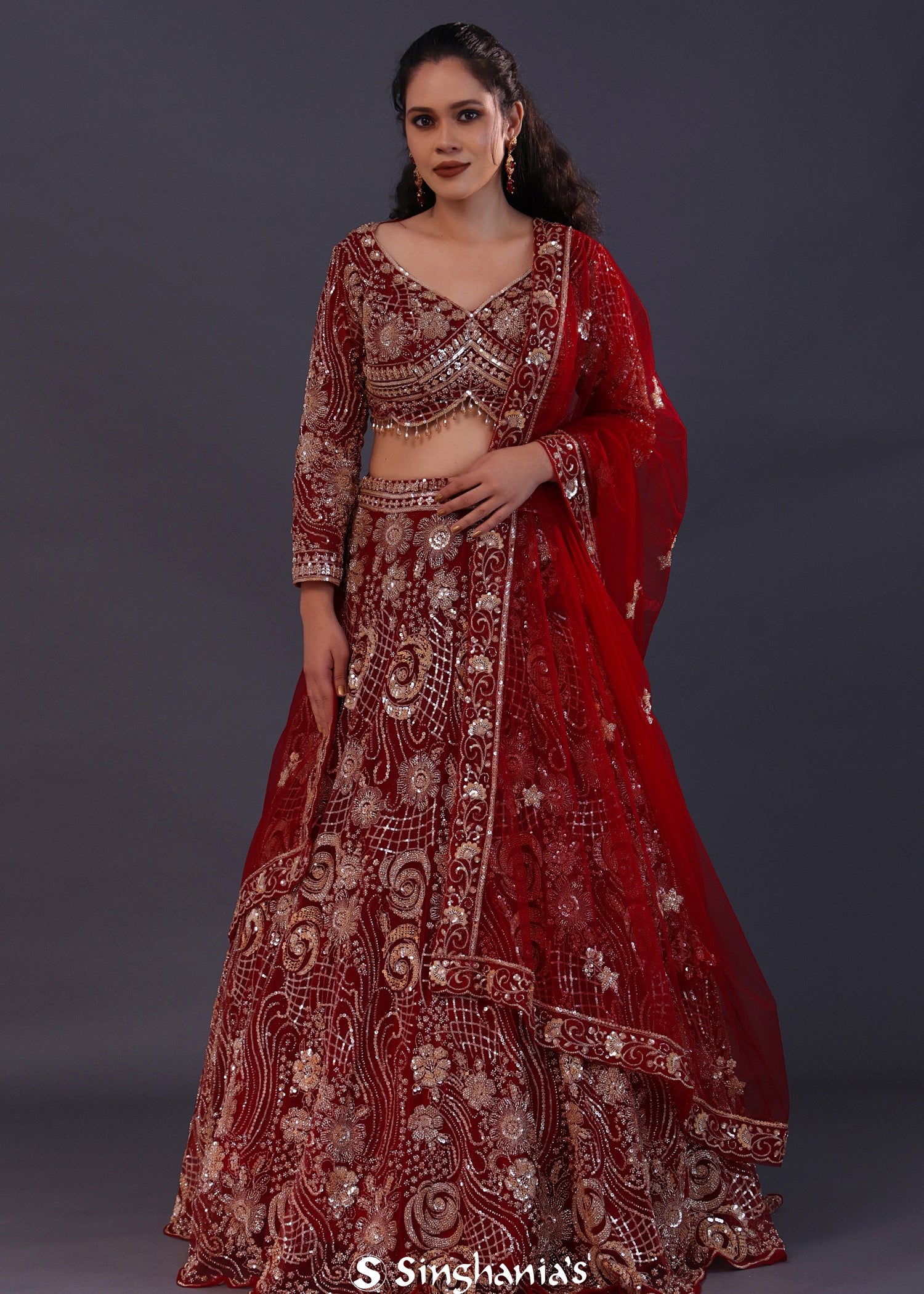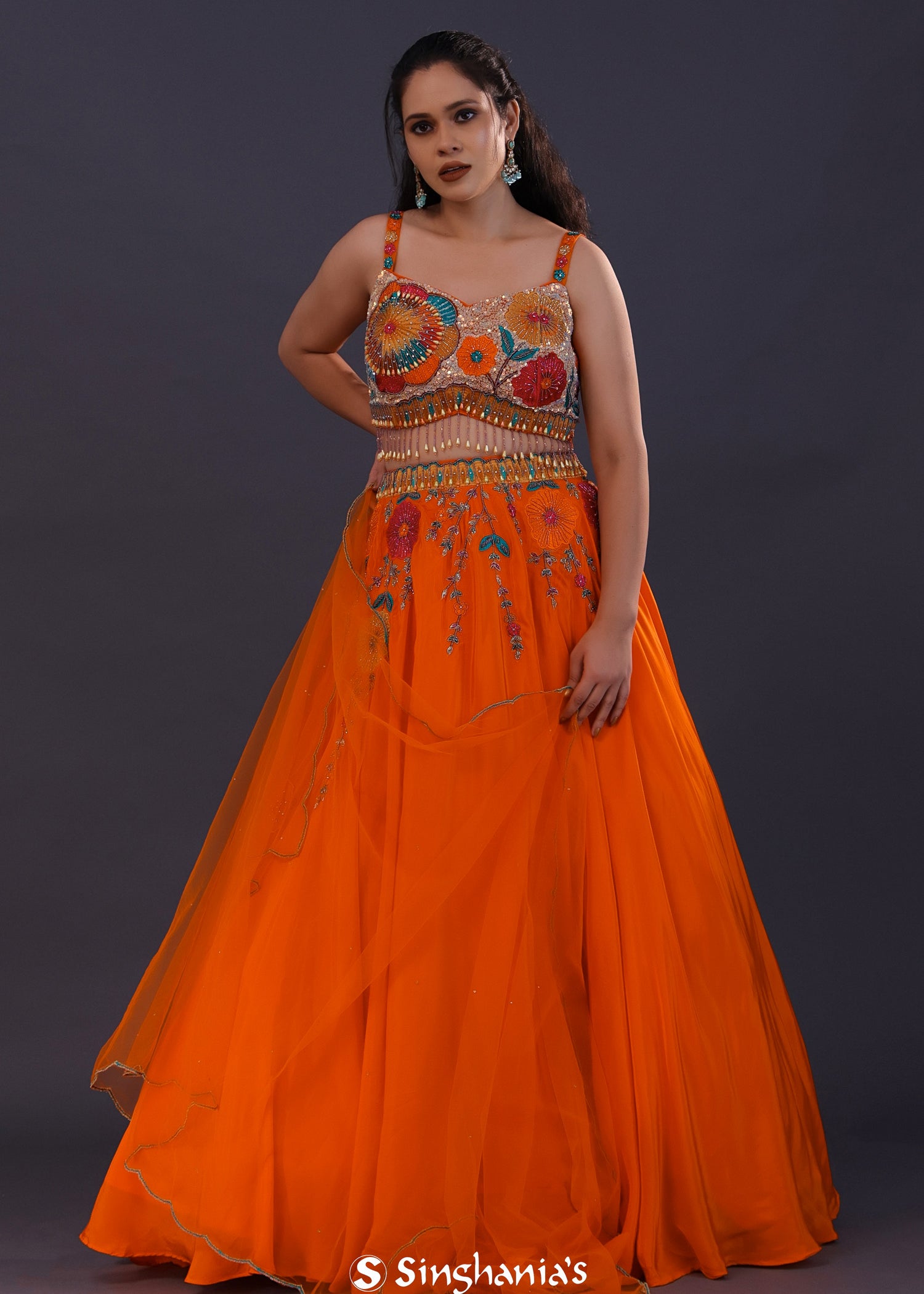 Bright Orange Tissue Organza Embroidered Lehenga Set