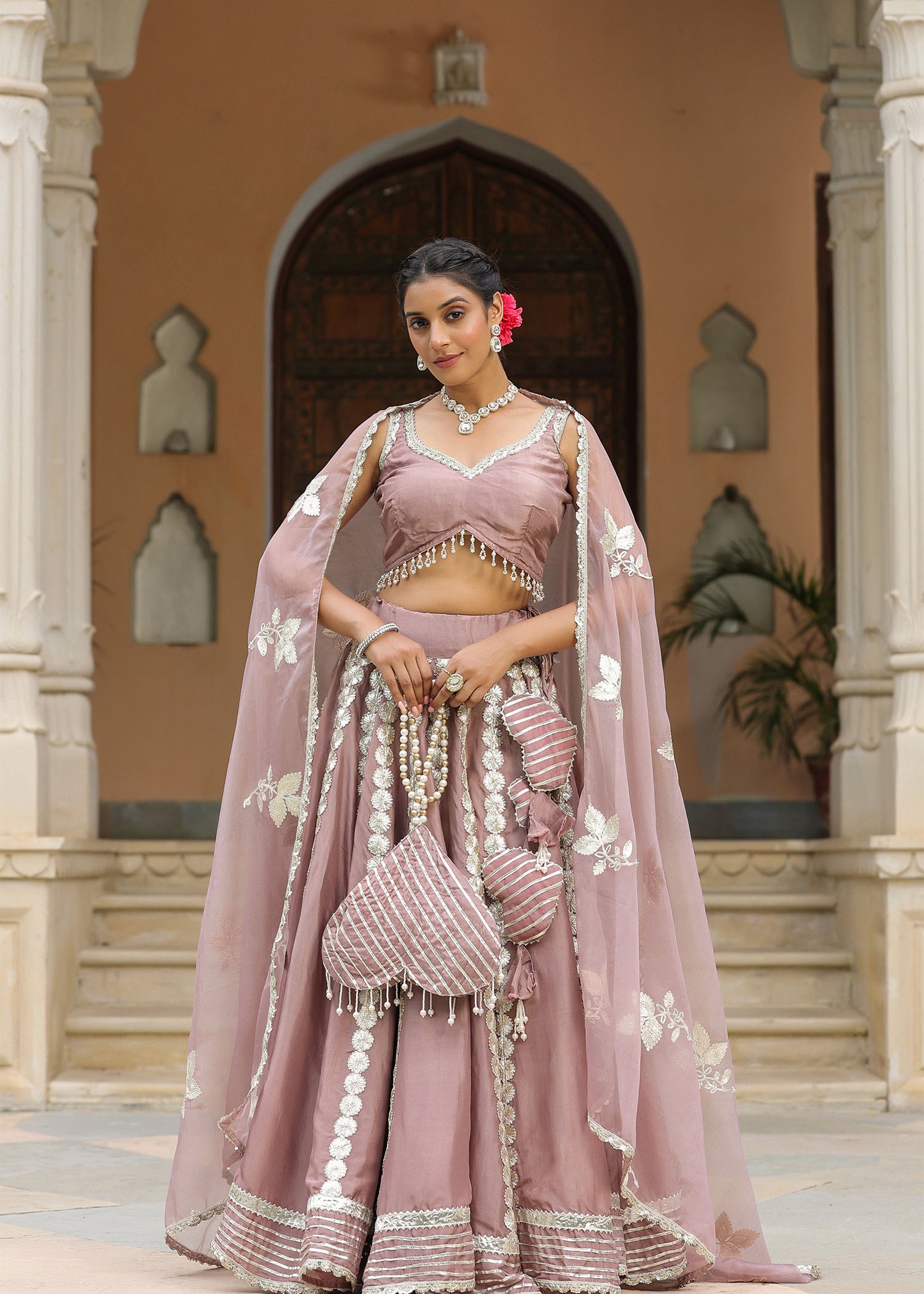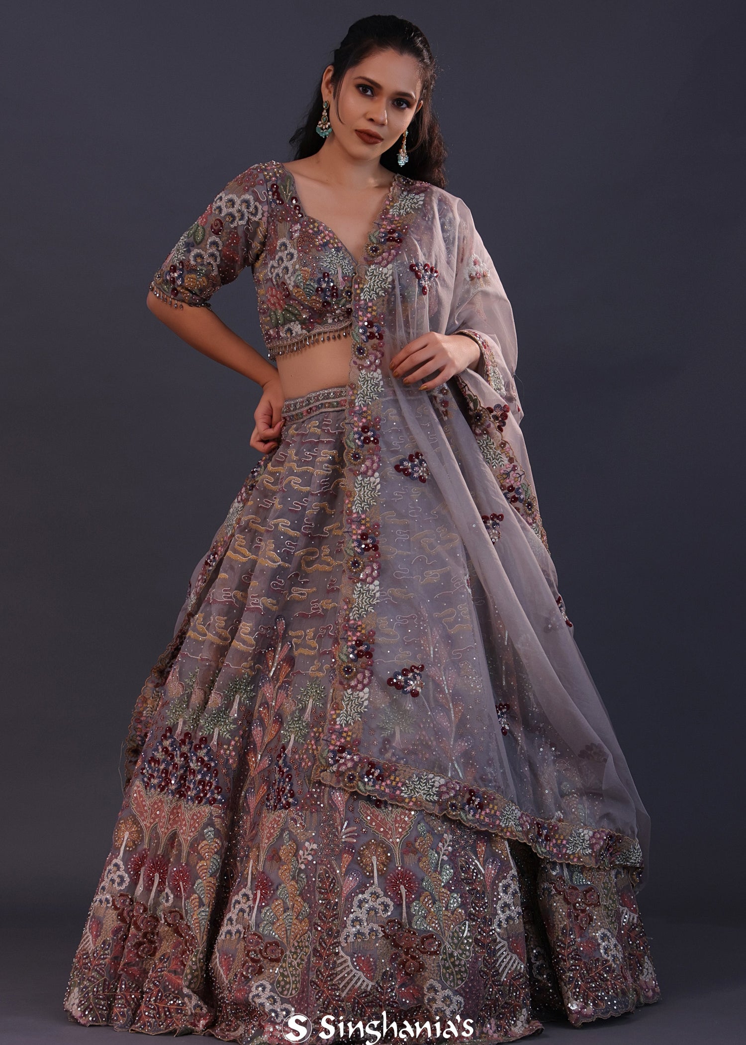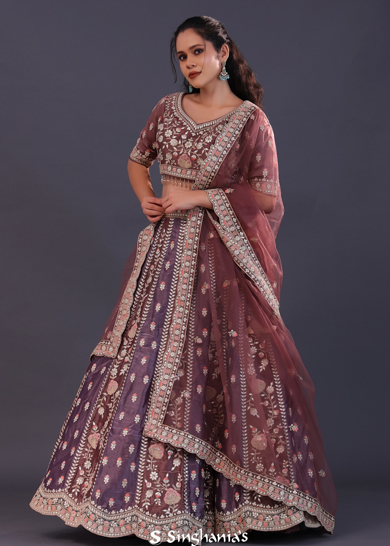Dusty Lavender Tissue Silk Embroidered Lehenga Set
