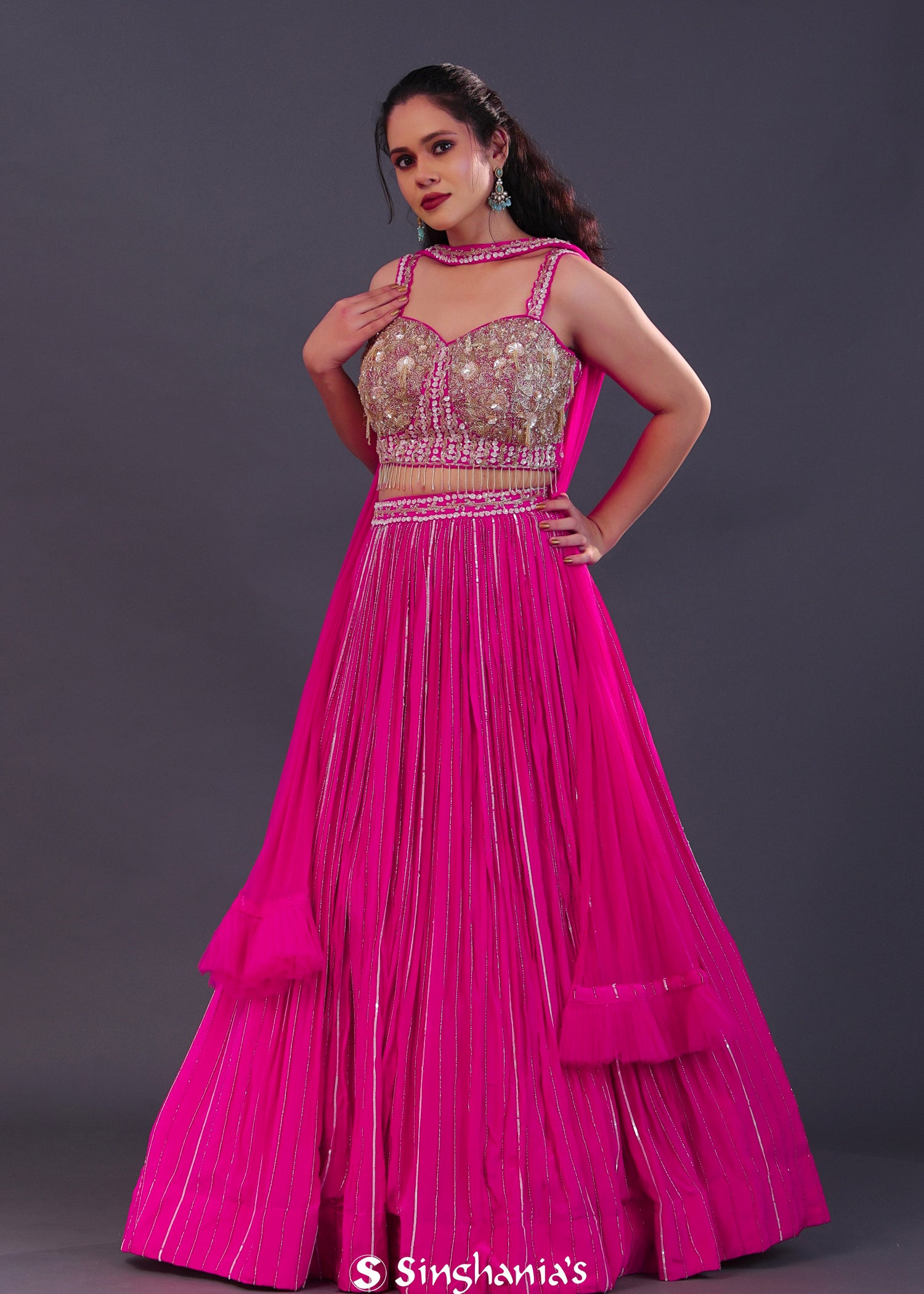 Fuchsia Pink Chinon Georgette Embroidered Lehenga Set