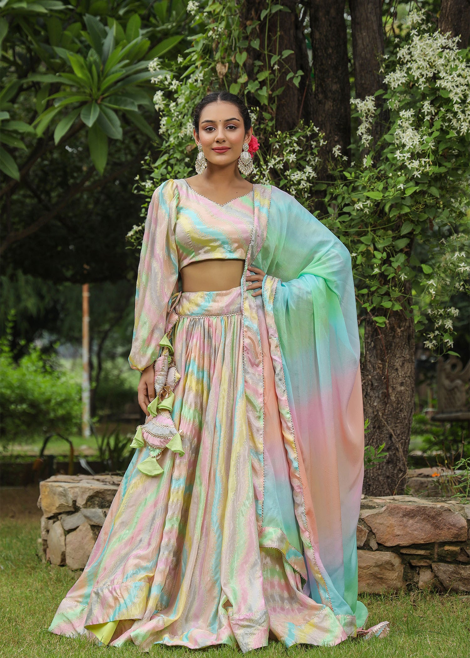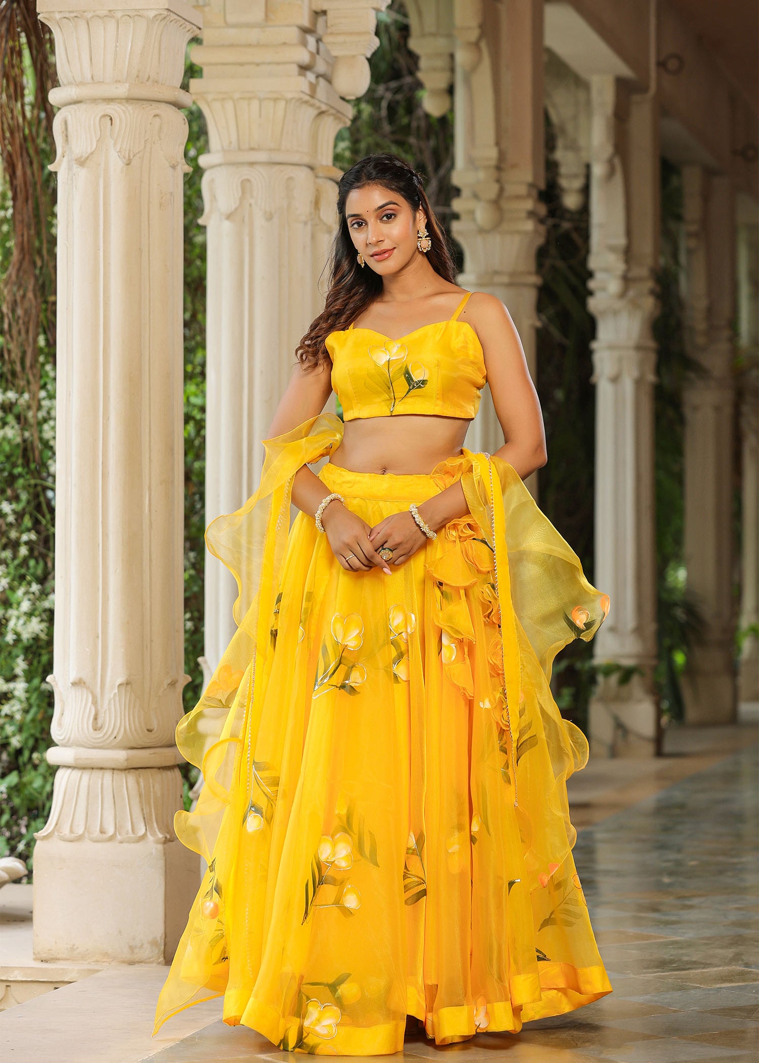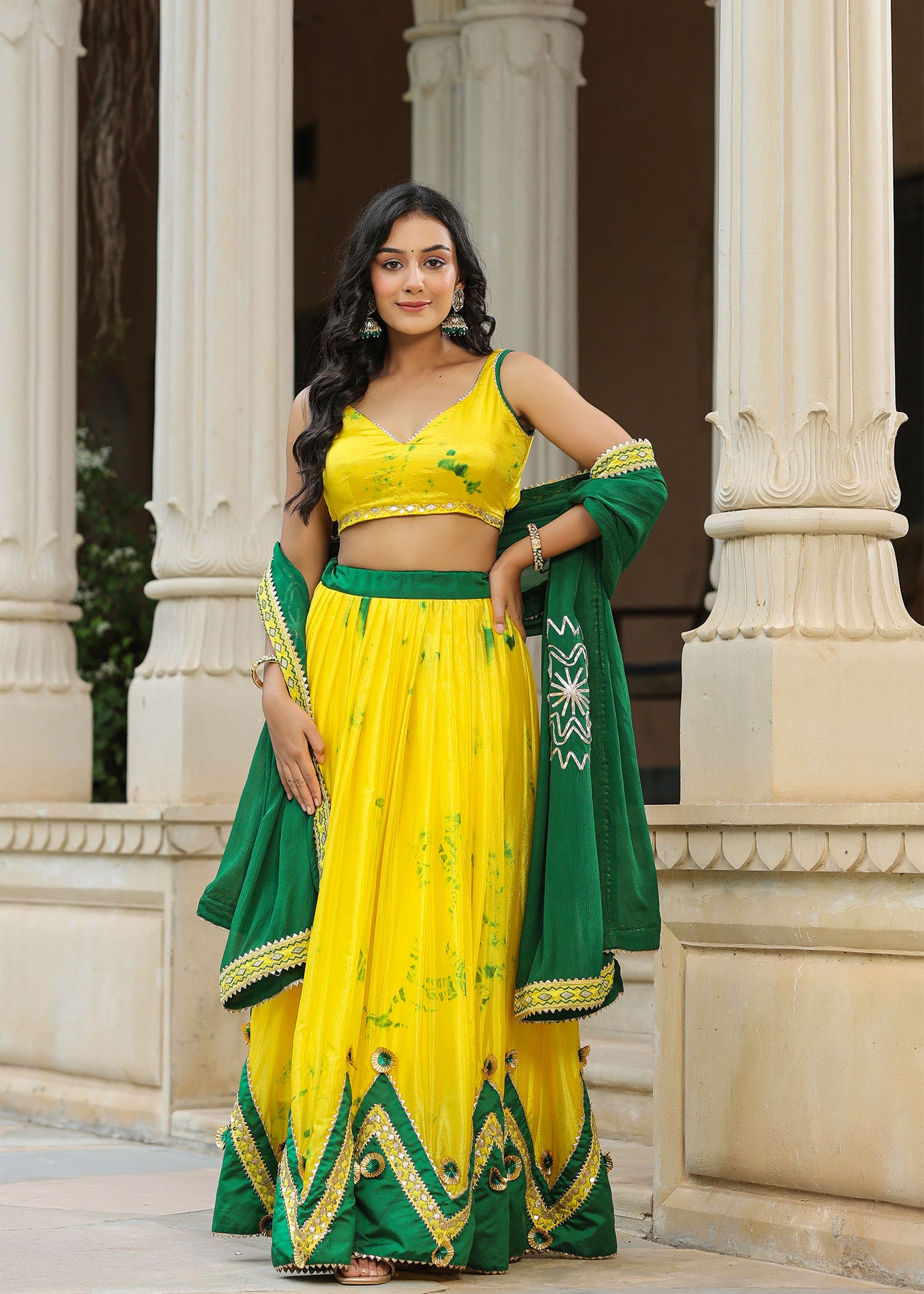 Golden Fizz Yellow Chinon Shibori Lehenga Set